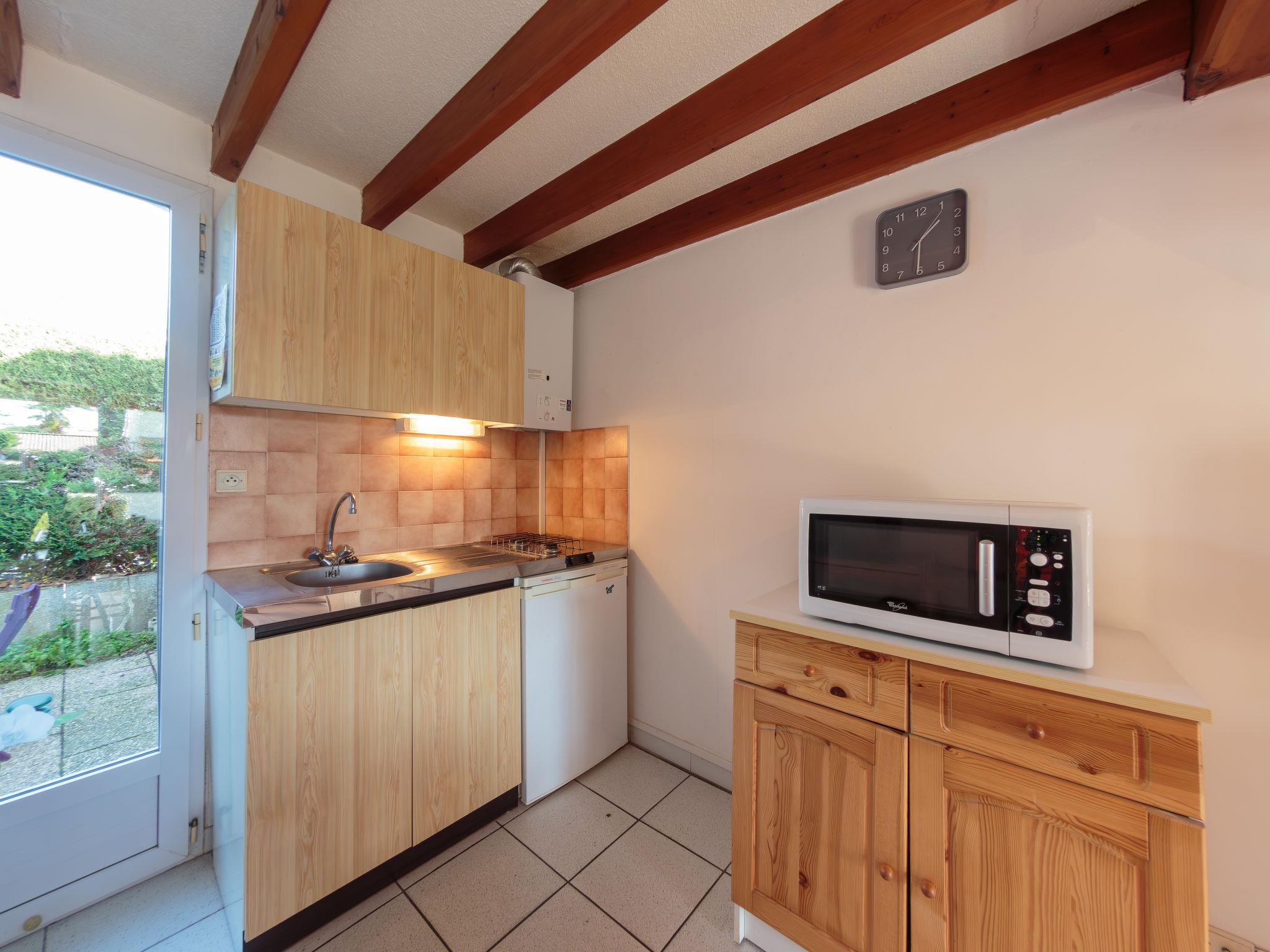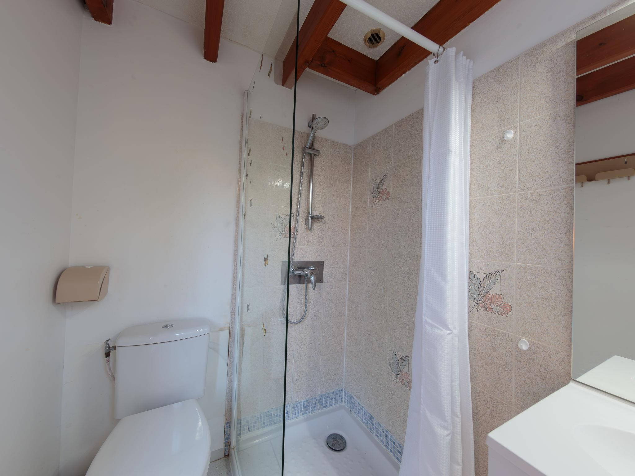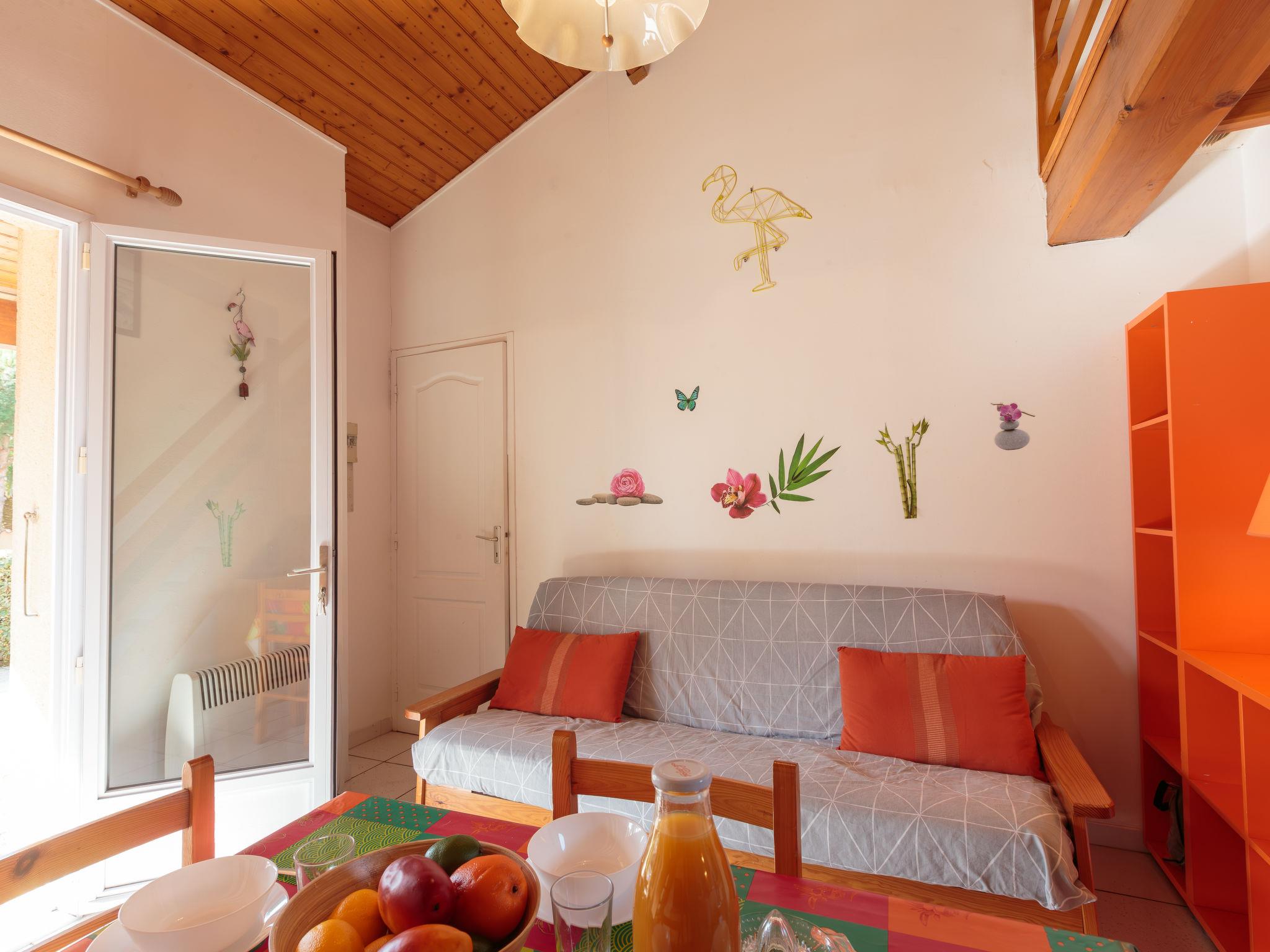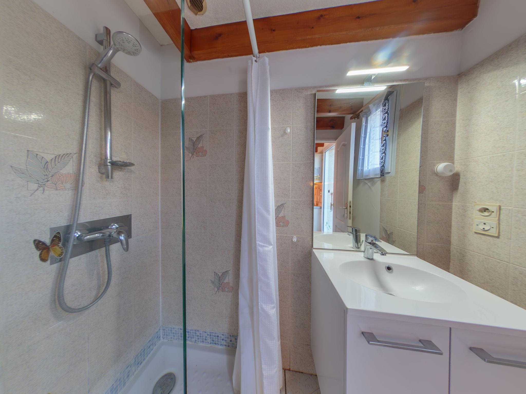 2-room house 33 m2 on 2 levels. Living/dining room with TV. Alcove with 1 x 2 bunk beds (90 cm, length 190 cm). Kitchenette (2 hot plates, mini-oven, microwave). Shower/WC. Electric heating. Upper floor: gallery with 1 french bed (1 x 140 cm, length 190 cm). 2 small terraces. Terrace furniture. Facilities: Internet (WiFi, extra). Parking at the house. Please note: maximum 1 pet/ dog allowed. Smoke alarm. The house is higher than the road level. Access to the house is via a few steps. Instead of an enclosed bedroom, some sleeping areas are located in an open-plan area (gallery, alcove, etc.).