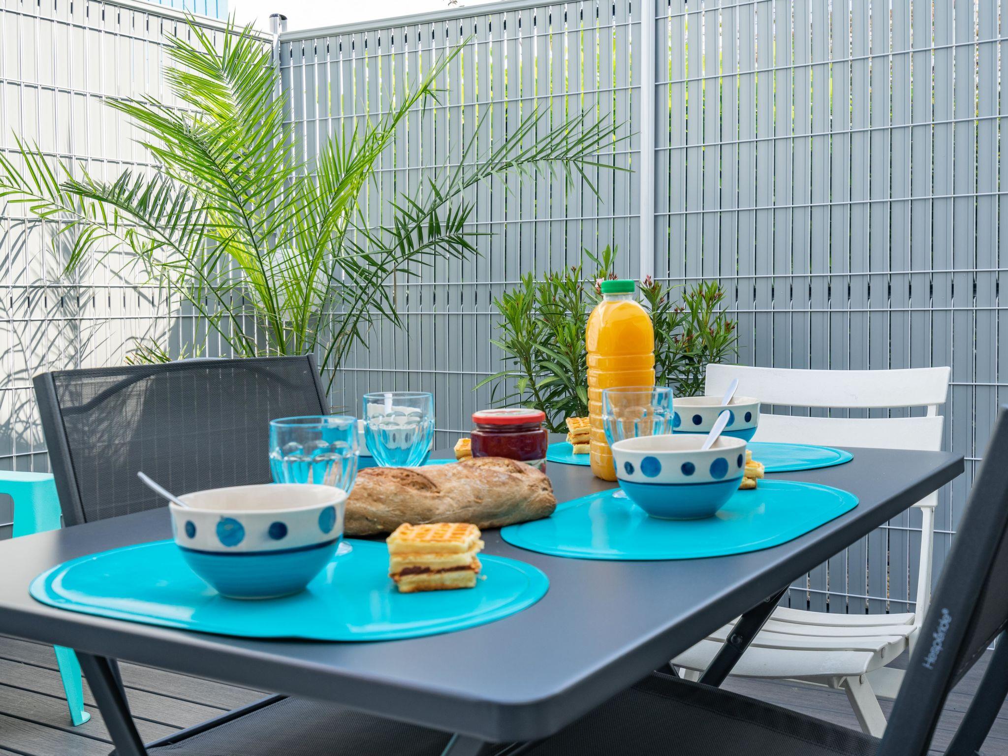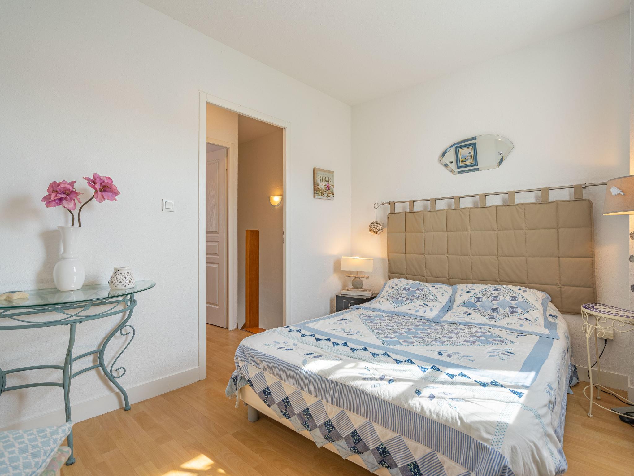 3-room terraced house 49 m2 on 2 levels. Beautiful furnishings: living/dining room with TV. Exit to the terrace. Open kitchen (2 hot plates, oven, microwave). Sep. WC. Electric heating. Upper floor: 2 rooms, each room with 1 french bed (1 x 140 cm, length 190 cm). Shower/WC. Small terrace 10 m2. Terrace furniture, barbecue. Facilities: washing machine. Internet (WiFi, extra). Parking space n 50. Please note: smoke alarm.