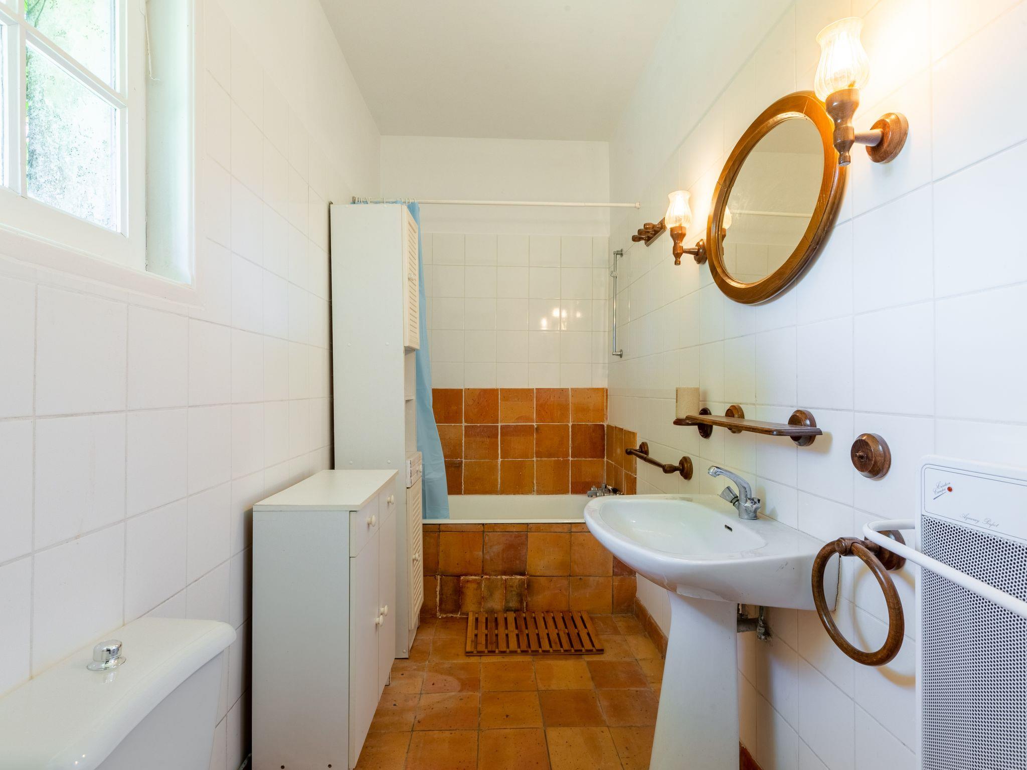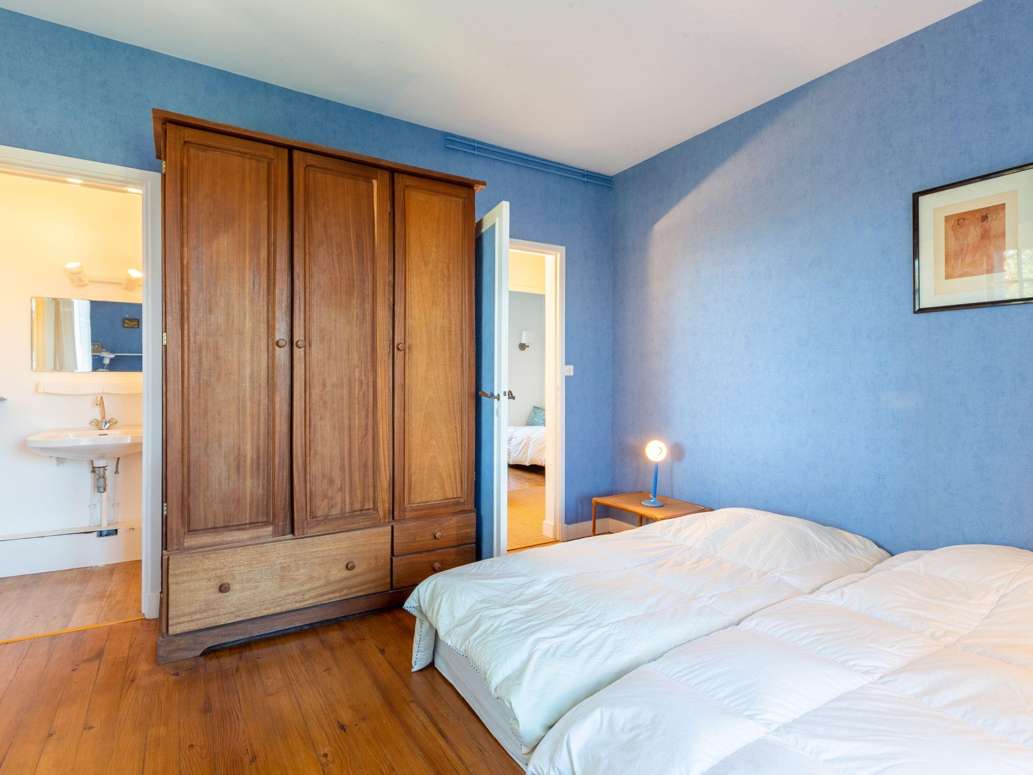 8-room house 250 m2 on 2 levels. Rustic furnishings: large living/dining room with TV. 1 room with 1 french bed (1 x 200 cm, length 200 cm). Open kitchen (oven, dishwasher, toaster, microwave, freezer, electric coffee machine). Bath/WC. Electric heating. Upper floor: 1 small room with sloping ceilings with rooflight with 1 bed (90 cm, length 190 cm). 1 room with 1 french bed (1 x 160 cm, length 200 cm), library. Office with 1 bed (90 cm, length 190 cm). 1 children's room with 1 x 2 bunk beds (90 cm, length 190 cm), hand-basin. Exit to the balcony. 1 room with 1 french bed (1 x 160 cm, length 200 cm), hand-basin. Exit to the balcony. 1 room with 2 beds (90 cm, length 190 cm), hand-basin. Exit to the balcony. 2 showers, sep. WC. Large garden. Terrace furniture, barbecue. Facilities: washing machine, children's high chair, baby cot for up to 2 year olds. Internet (WiFi, free). Parking (3 cars). Please note: non-smoking house. Smoke alarm.