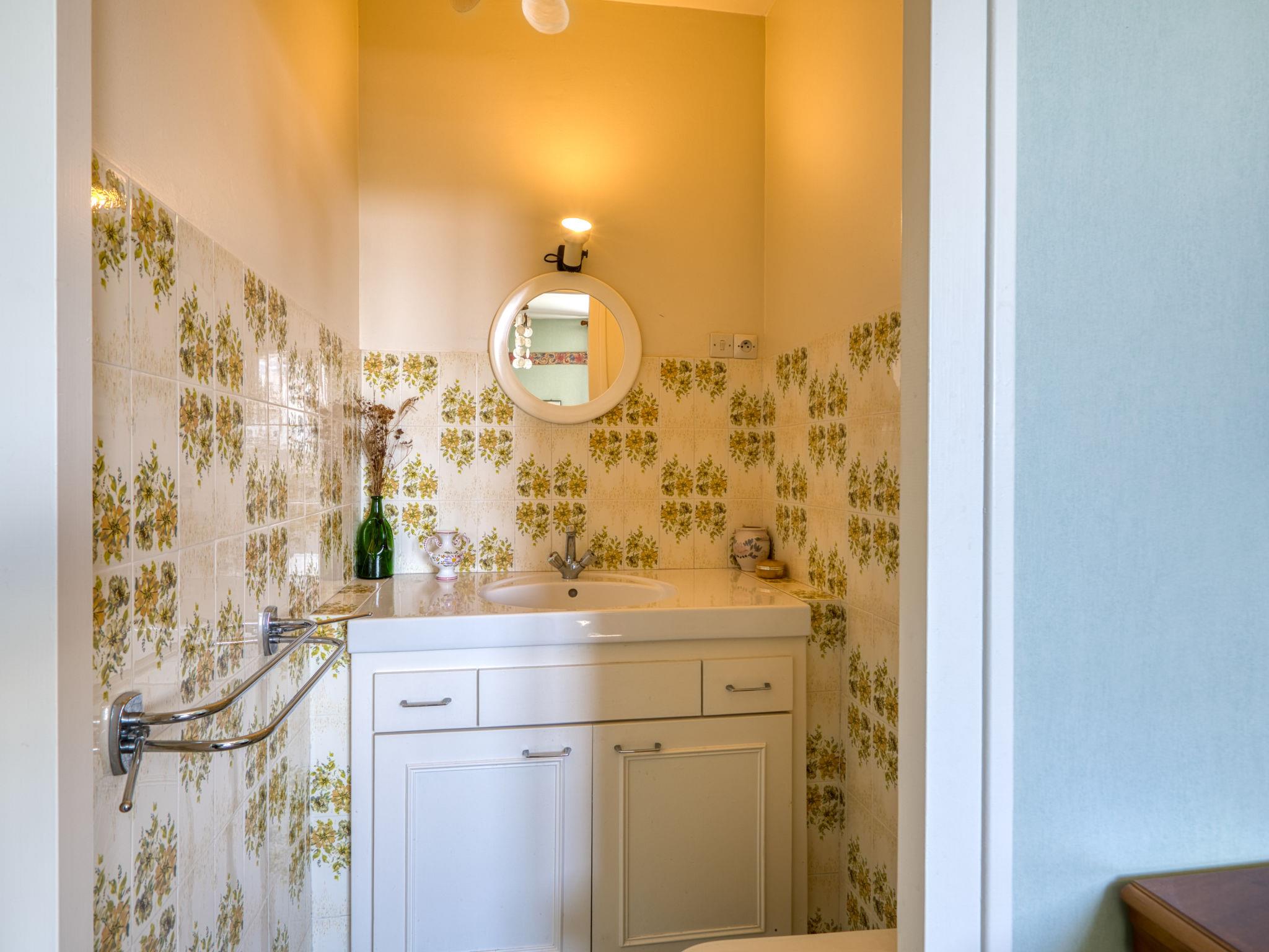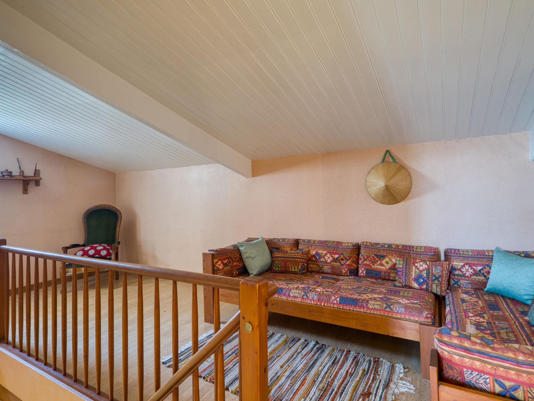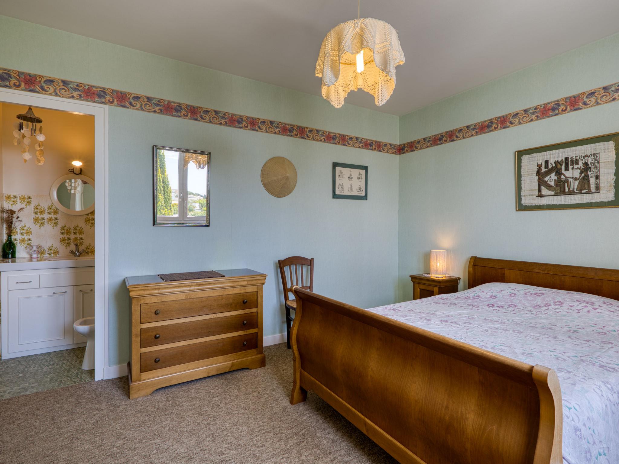 5-room house 155 m2 on 2 levels. Spacious: living/dining room with TV (flat screen). Exit to the garden, to the terrace. 1 room with 2 beds (80 cm, length 190 cm). Kitchen (3 hot plates, oven, toaster, kettle, microwave, freezer, electric coffee machine). Shower, sep. WC. Electric heating, air-conditioning. Upper floor: 1 room with 1 french bed (1 x 140 cm, length 190 cm). 1 room with 2 beds (80 cm, length 190 cm), hand-basin and shower. 1 room with 1 french bed (140 cm, length 190 cm), hand-basin and bidet. Bathroom. Terrace furniture, barbecue. Facilities: washing machine, children's high chair, baby cot. Internet (WiFi, free). Parking (2 cars), garage (1 car). Please note: maximum 1 pet/ dog allowed. Smoke alarm.