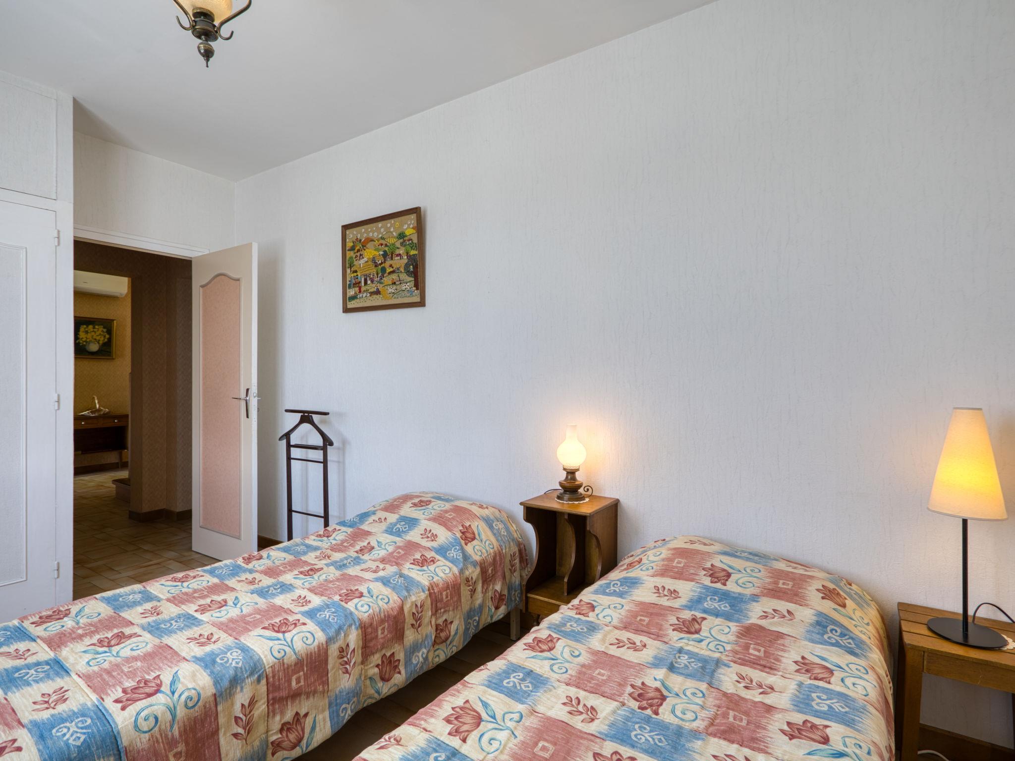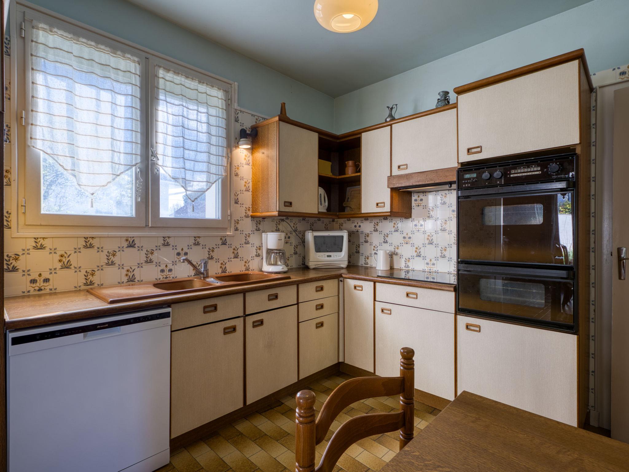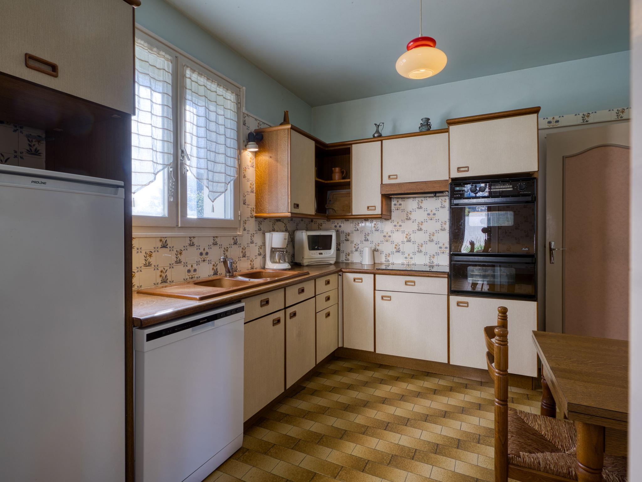 5-room house 155 m2 on 2 levels. Spacious: living/dining room with TV (flat screen). Exit to the garden, to the terrace. 1 room with 2 beds (80 cm, length 190 cm). Kitchen (3 hot plates, oven, toaster, kettle, microwave, freezer, electric coffee machine). Shower, sep. WC. Electric heating, air-conditioning. Upper floor: 1 room with 1 french bed (1 x 140 cm, length 190 cm). 1 room with 2 beds (80 cm, length 190 cm), hand-basin and shower. 1 room with 1 french bed (140 cm, length 190 cm), hand-basin and bidet. Bathroom. Terrace furniture, barbecue. Facilities: washing machine, children's high chair, baby cot. Internet (WiFi, free). Parking (2 cars), garage (1 car). Please note: maximum 1 pet/ dog allowed. Smoke alarm.