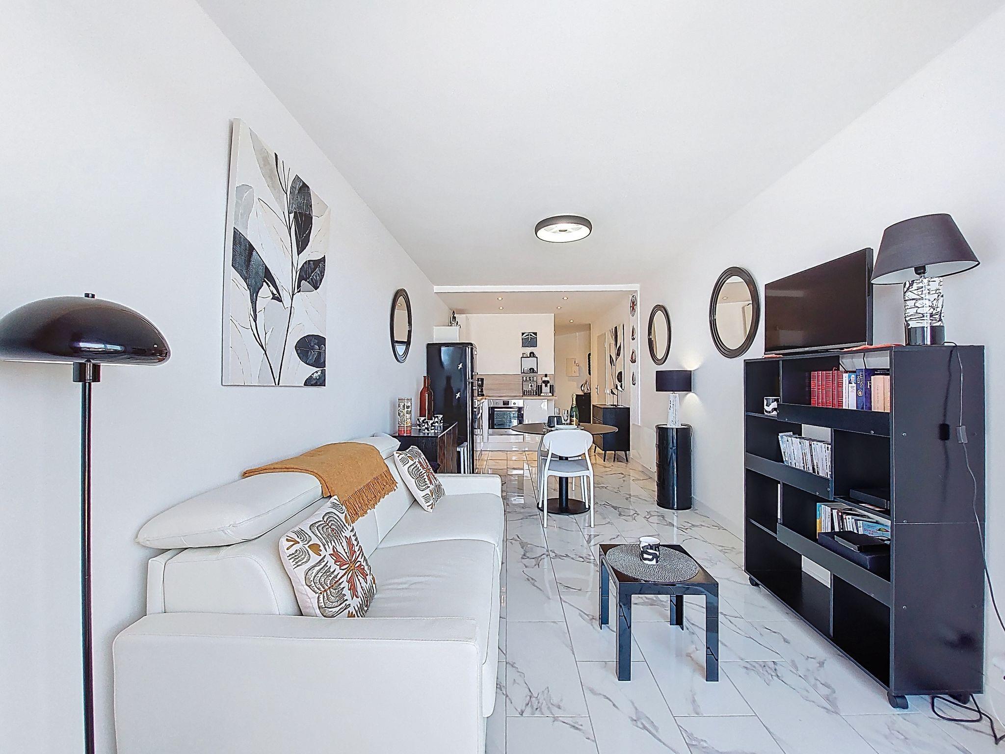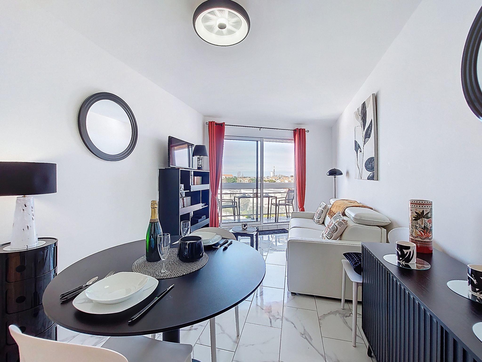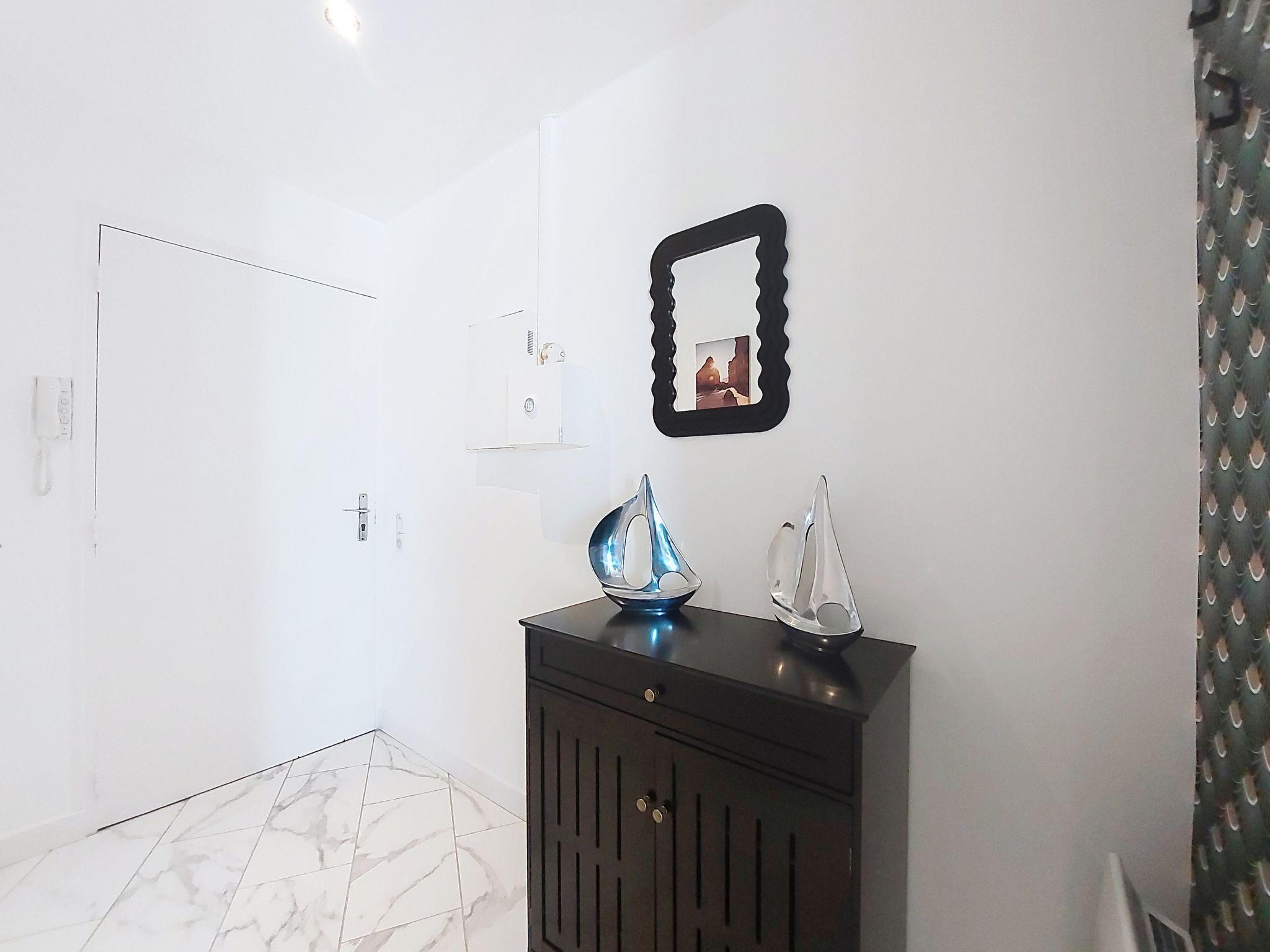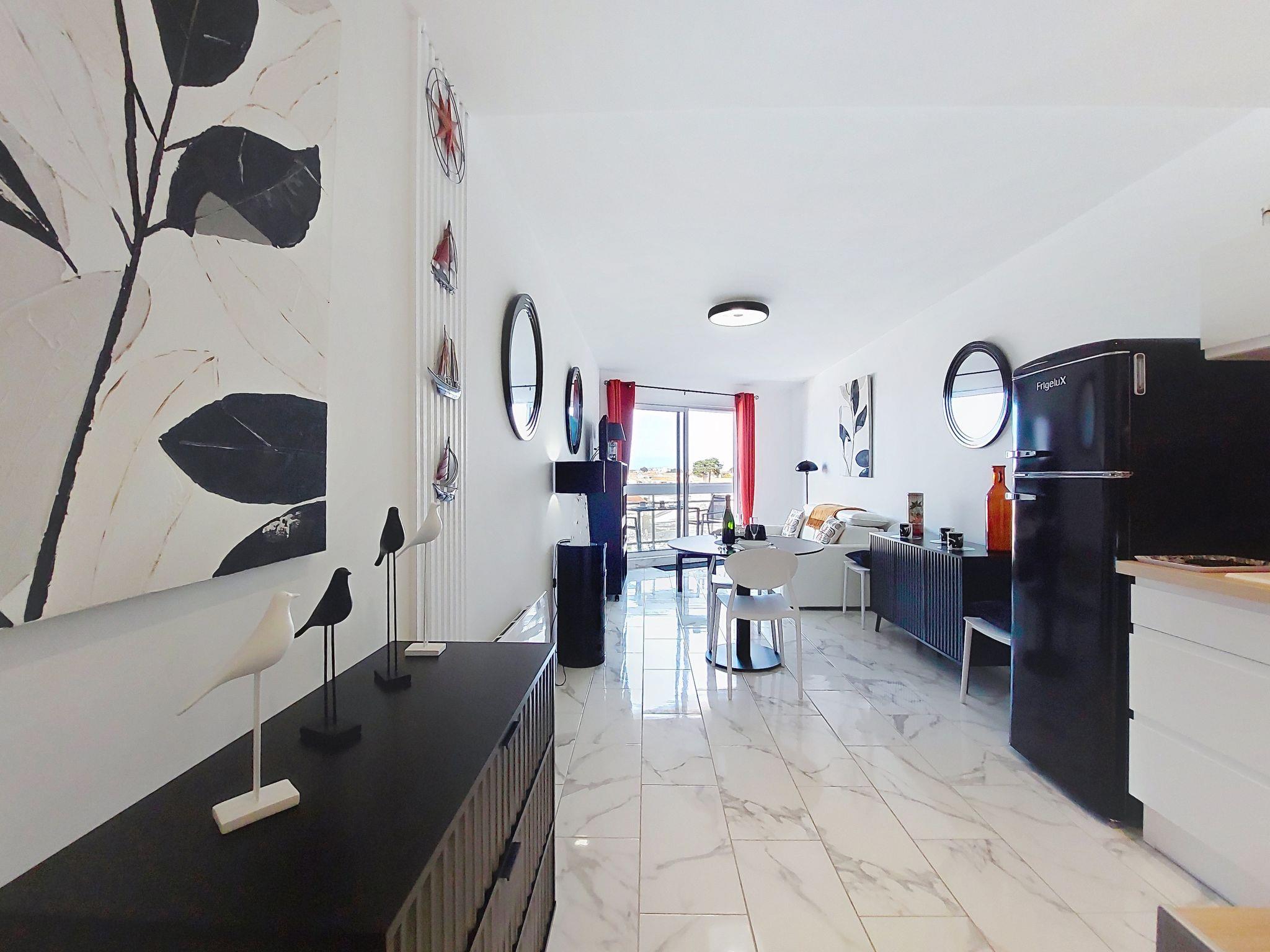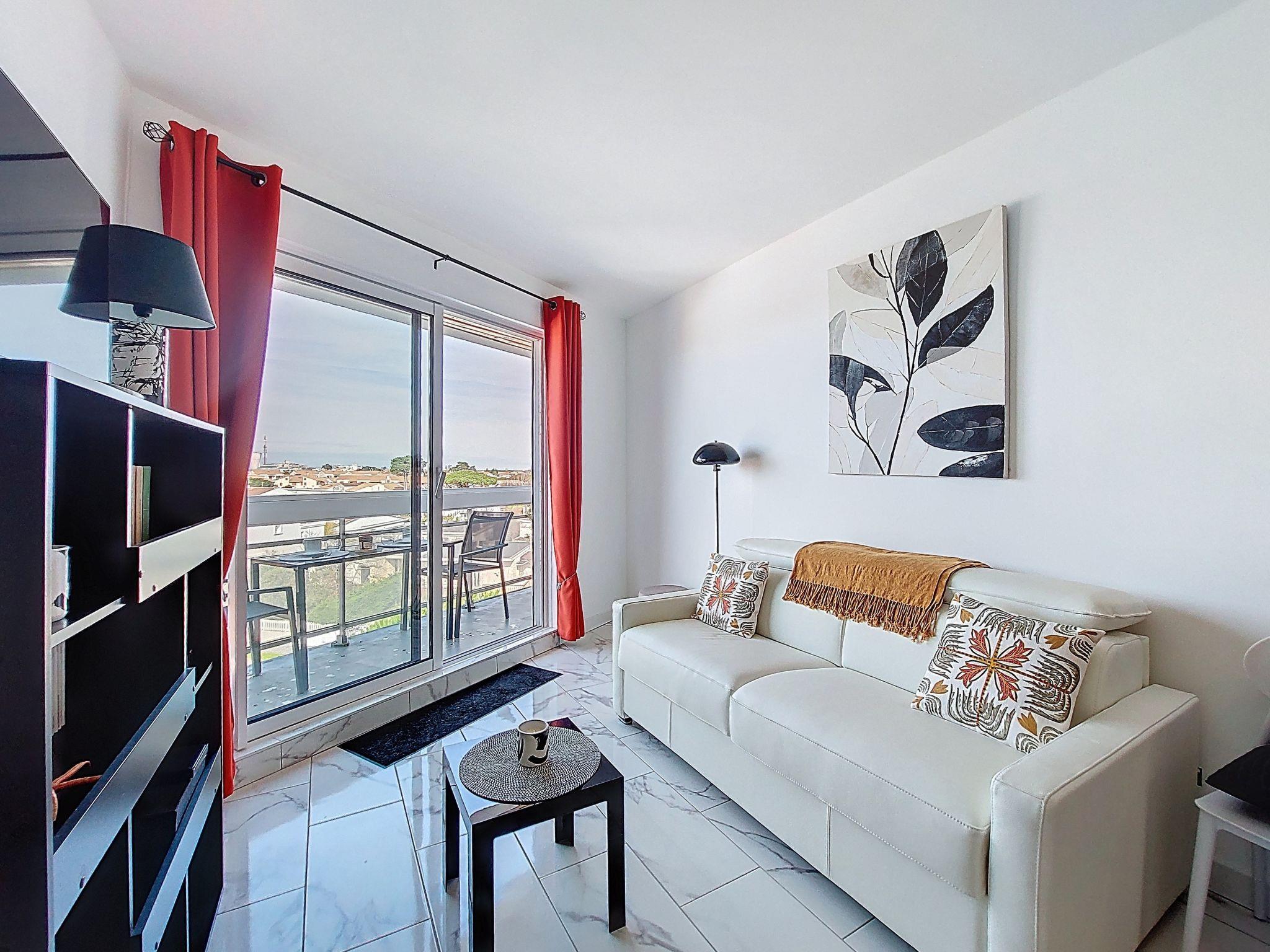 1-room studio 33 m2 on 4th floor. Fully renovated in 2025, modern furnishings: living room with 1 double sofabed (1 x 140 cm, length 190 cm), TV (flat screen). Exit to the balcony. Kitchenette (oven, 4 induction hot plates, toaster, kettle, microwave, freezer, electric coffee machine, Capsules for coffee machine (Senseo) extra). Shower, sep. WC. Electric heating. Balcony 7 m2. Balcony furniture. Side view of the sea. Facilities: washing machine, iron. Internet (WiFi, free). Parking space n 8. Please note: smoke alarm. Offer by a private individual according to Art. 155, IV of CGI.