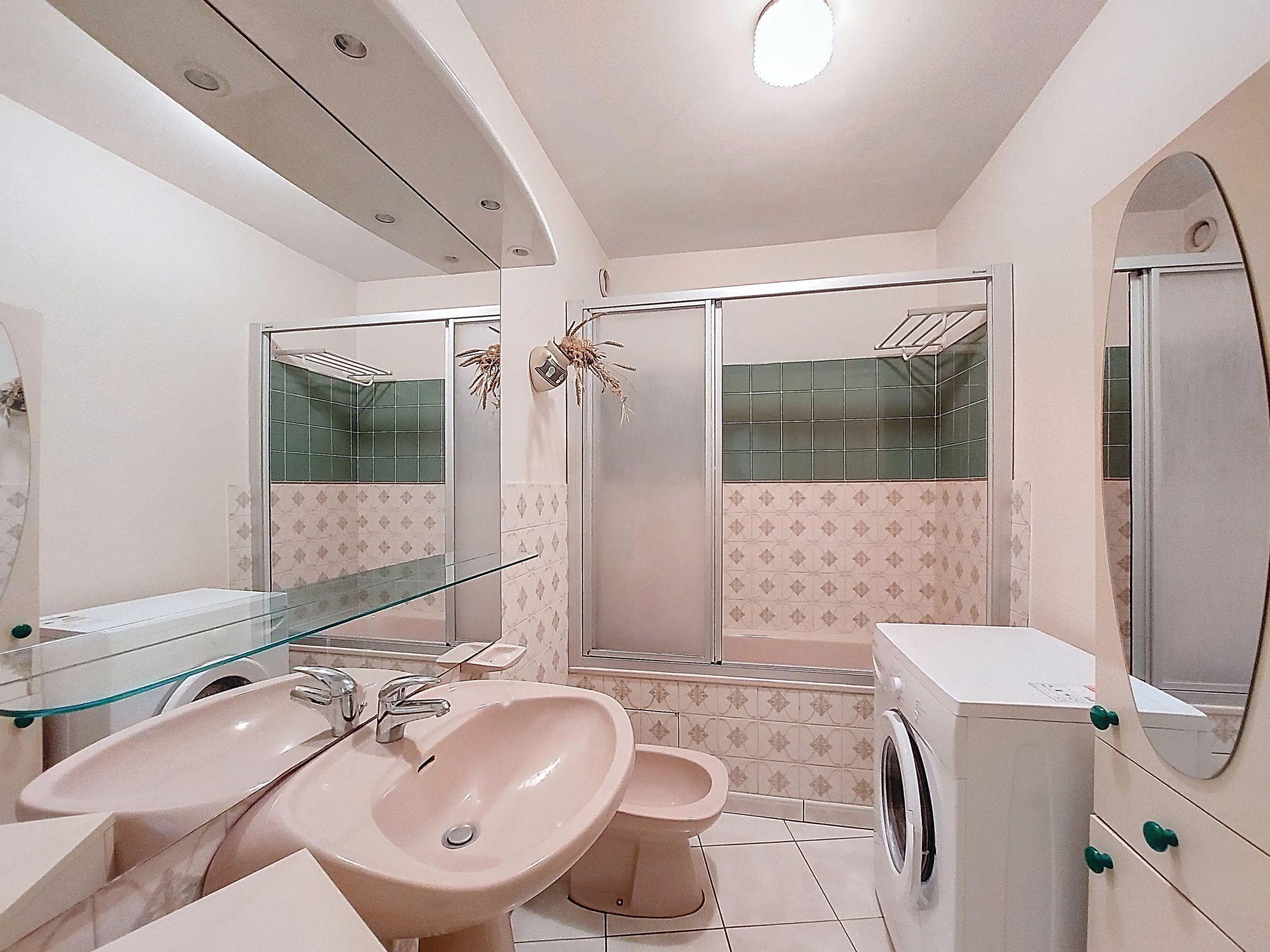 2-room apartment 47 m2 on 3rd floor. Living/dining room with 1 double sofabed (1 x 140 cm, length 190 cm), TV (flat screen). Exit to the balcony. 1 room with 1 french bed (1 x 140 cm, length 190 cm). Small kitchen (oven, 3 ceramic glass hob hotplates, toaster, kettle, microwave, freezer, electric coffee machine). Bathroom, sep. WC. Electric heating. Balcony 11 m2. Balcony furniture. Facilities: washing machine, iron, baby cot. Internet (WiFi, free). Parking space n 11. Please note: smoke alarm. Offer by a private individual according to Art. 155, IV of CGI.