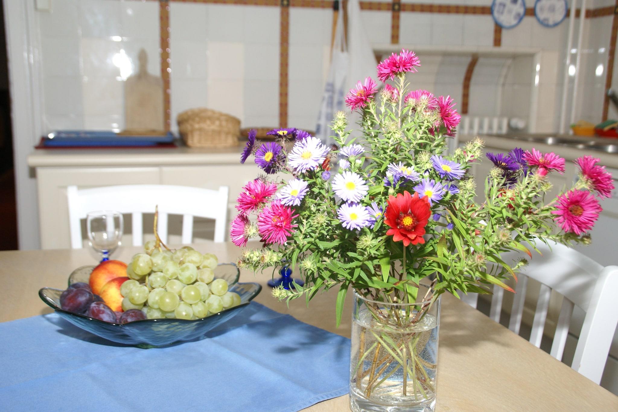 Stueetage: (entre) På 1. etage: (entre(adgang via udendørs trappe), Stue(Fjernsyn(digital), DVD-afspiller), Køkken(ovn, mikrobølgeovn, opvaskemaskine , køle-fryseskab, vaskemaskine), soveværelse(enkeltseng(80 x 190 cm), dobbeltseng(160 x 200 cm)), Soveværelse med badeværelse(dobbeltseng(200 x 160 cm), håndvask, bidet), badeværelse(badekar med bruser, håndvask), toilet) varme(central), have(privat, deles med ejer), havemøbler, grill, swimmingpool(deles med ejer, 14 x 4 m., opened from Jun upto and including Aug), legeredskaber, bordtennisbord