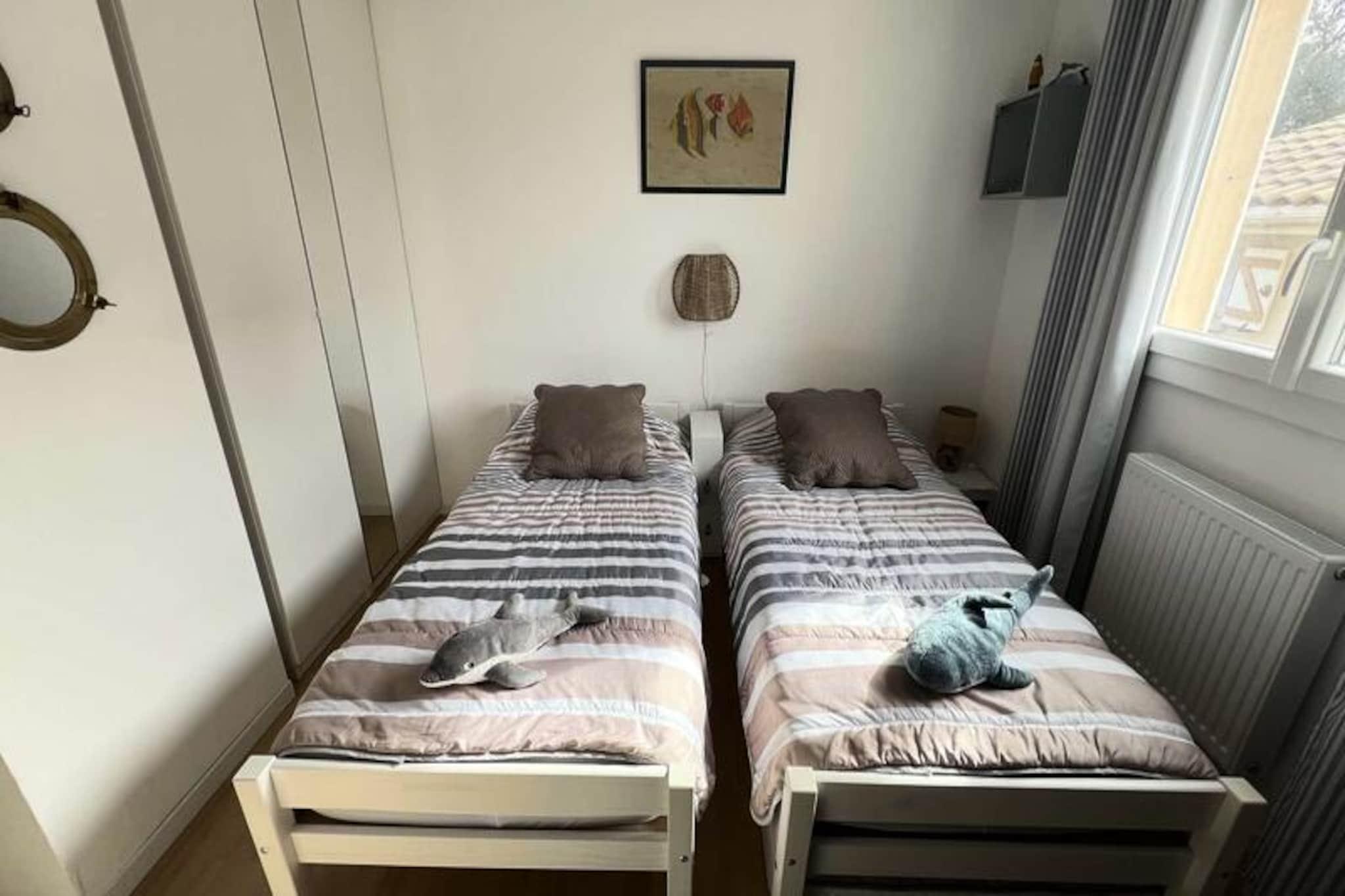 Kun 200 meter fra Atlanterhavet tilbyder dette charmerende hus det perfekte kysttilflugtssted for både familier og naturelskere. Beliggende for enden af ??en fredelig blind vej i Montalivet-les-Bains, udstråler ejendommen ro, mens den kun ligger fem minutters gang fra den pulserende landsbymidte. Forestil dig at vågne op til lyden af ??bølger, nyde morgenmaden på verandaen og tilbringe dine dage med at udforske sandstrande, lokale markeder og restauranter ved havet - alt sammen inden for gåafstand. Huset ligger i en rummelig have på 500 m² og er omhyggeligt designet til komfort og afslapning. Det har to hyggelige soveværelser - et med en dobbeltseng og det andet med to enkeltsenge - hvilket gør det ideelt for familier. Stuen/spisestuen tilbyder et indbydende sted at slappe af, mens tekøkkenet er udstyret til at tilberede måltider med lethed. Et separat toilet og et moderne brusebad tilføjer bekvemmelighed, og huset er specielt udstyret til at rumme børn, hvilket sikrer et stressfrit ophold for forældre. Reserveret parkering er også tilgængelig for gæster, hvilket bidrager til at gøre din ferie endnu nemmere. Montalivet-les-Bains er et paradis for friluftsentusiaster og madelskere. Tilbring dagene med at surfe på Atlanterhavets bølger, cykle ad naturskønne stier eller forkæle dig selv med regionens berømte østers og vine. Det lokale marked, der ligger kun få minutter væk, er en skattekiste af friske råvarer og kunsthåndværk. Uanset om du søger eventyr eller afslapning, placerer denne ejendom dig i hjertet af det hele. Med sin uovertrufne beliggenhed, familievenlige faciliteter og rolige atmosfære er dette hus den ideelle base for at skabe uforglemmelige minder ved havet. Lad charmen ved Montalivet-les-Bains og den franske kysts skønhed betage dig.