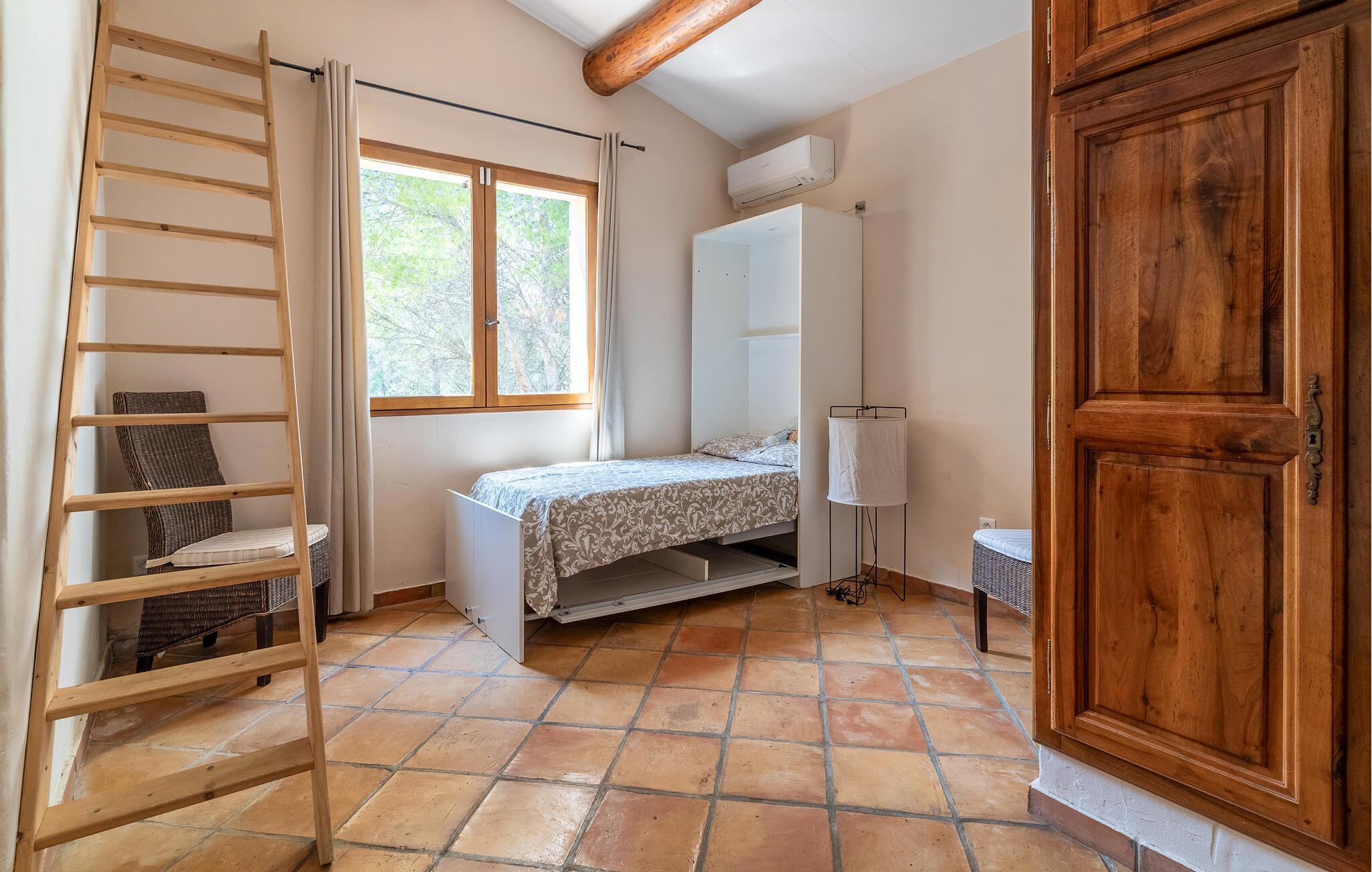 Nyd en dejlig ferie med jeres familie i denne komfortable ferielejlighed med pool i en idyllisk beliggenhed. Beliggende på en smuk, rummelig grund, tilbyder dette charmerende og rummelige feriehus det ideelle hjem til at kombinere afslapning med familien og dejlige udflugter gennem den solrige region. Glæd jer til hyggelig madlavning og harmoniske måltider ved det rustikke træbord, og snak over et glas vin til langt ud på natten. Om morgenen kan I svømme i den store, børnesikre, indhegnede pool og lytte til fårekyllingernes kvidren, mens I nyder morgenmaden på den skyggefulde terrasse. Mediter under den romantiske pergola, spil et spil petanque eller bordtennis, og forfin jeres grillretter med friske provencalske urter. Gå en tur gennem de farverige markeder i Aix-en-Provence, tag en tur i vandcykel på Peyrolles-søen, vandr gennem det fortryllende landskab på Grand Sambuc eller i det imponerende Sainte-Victoire-massiv, eller tilbring en dag på stranden i Marseille. Overrask jeres børn med en tur til det nærliggende vandland eller La Barben Zoo.