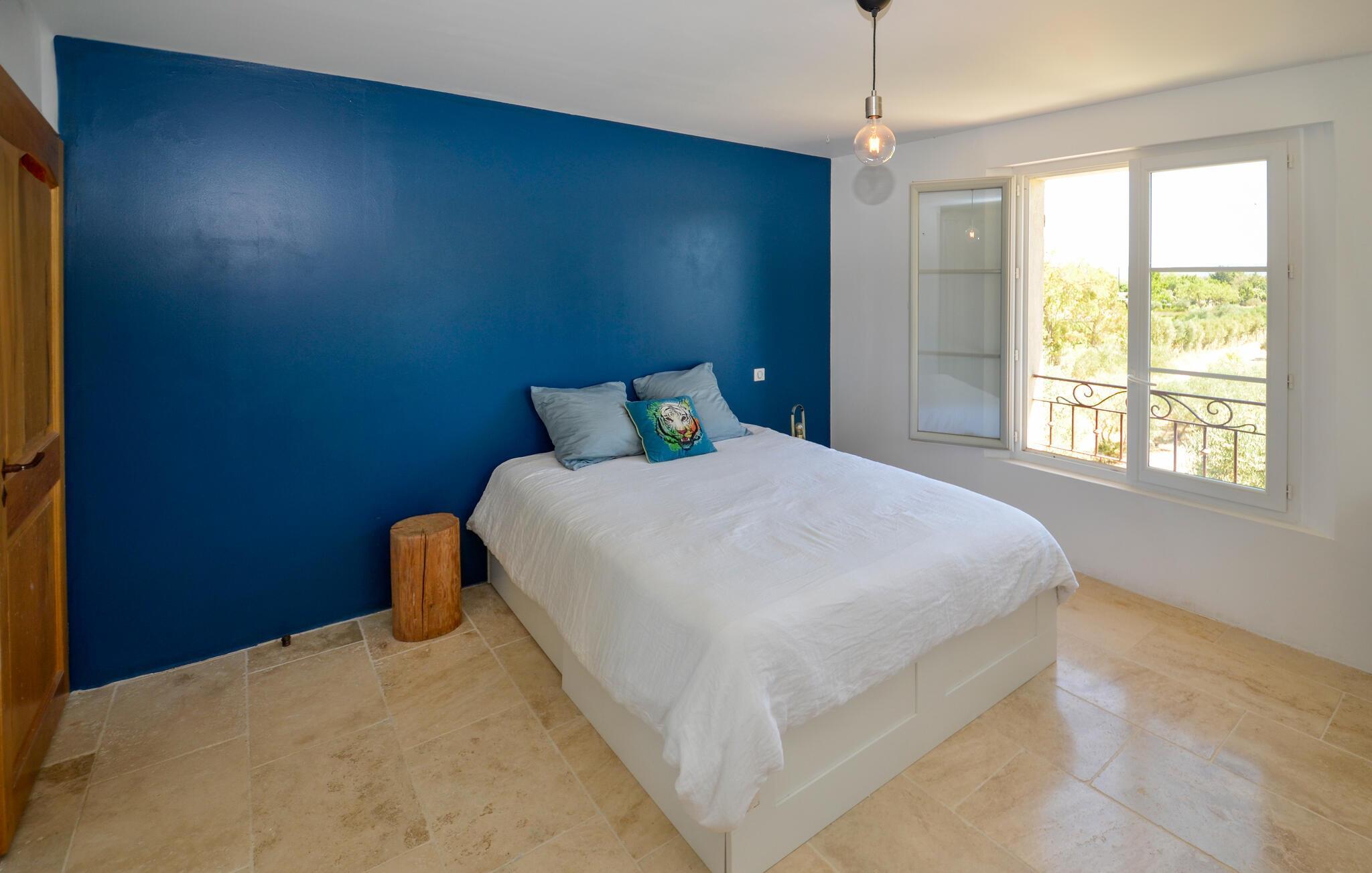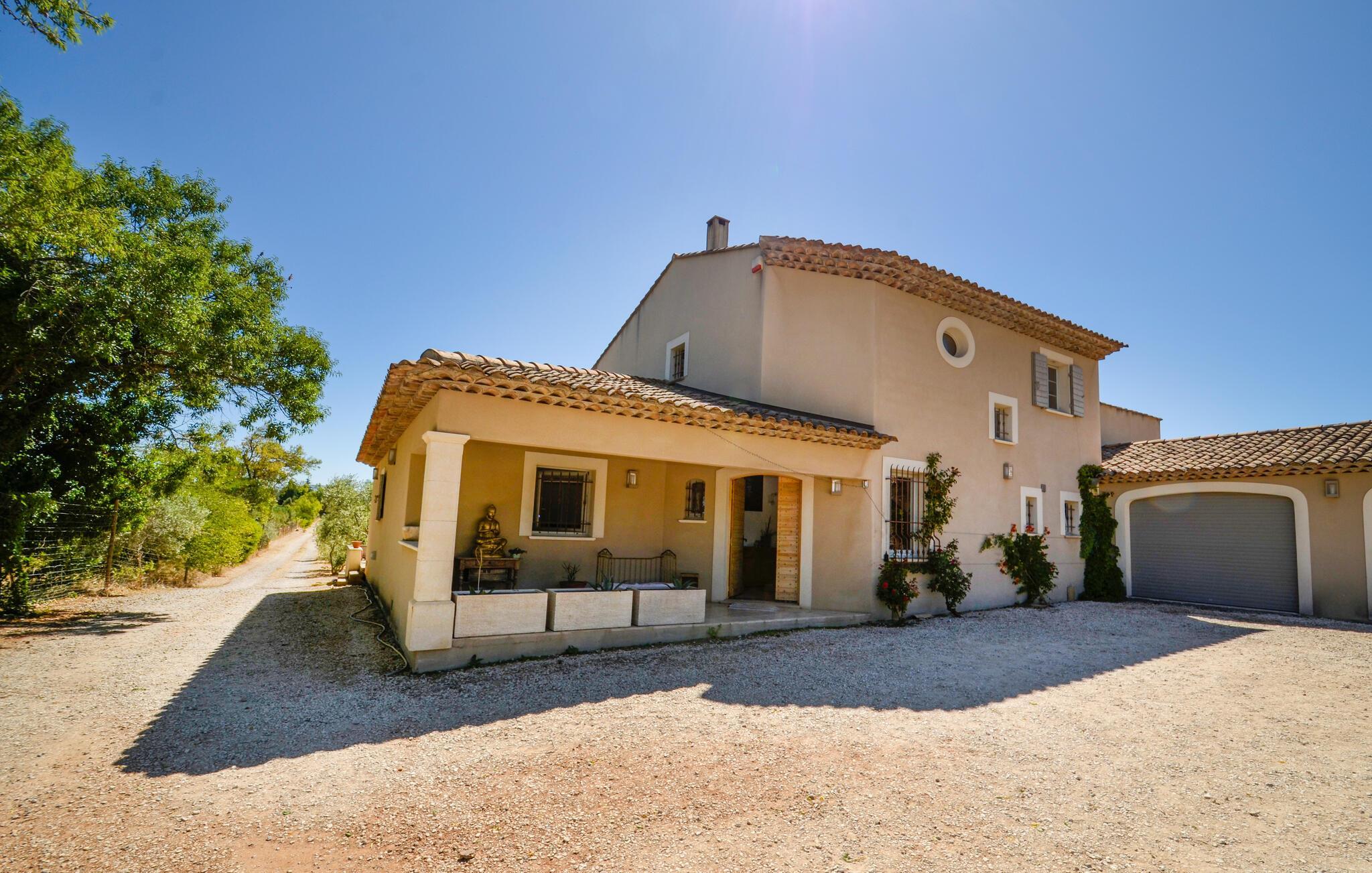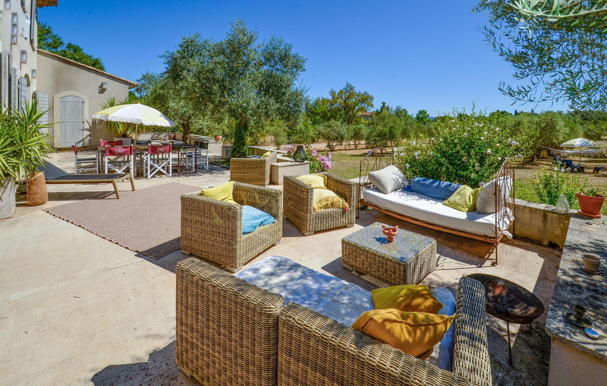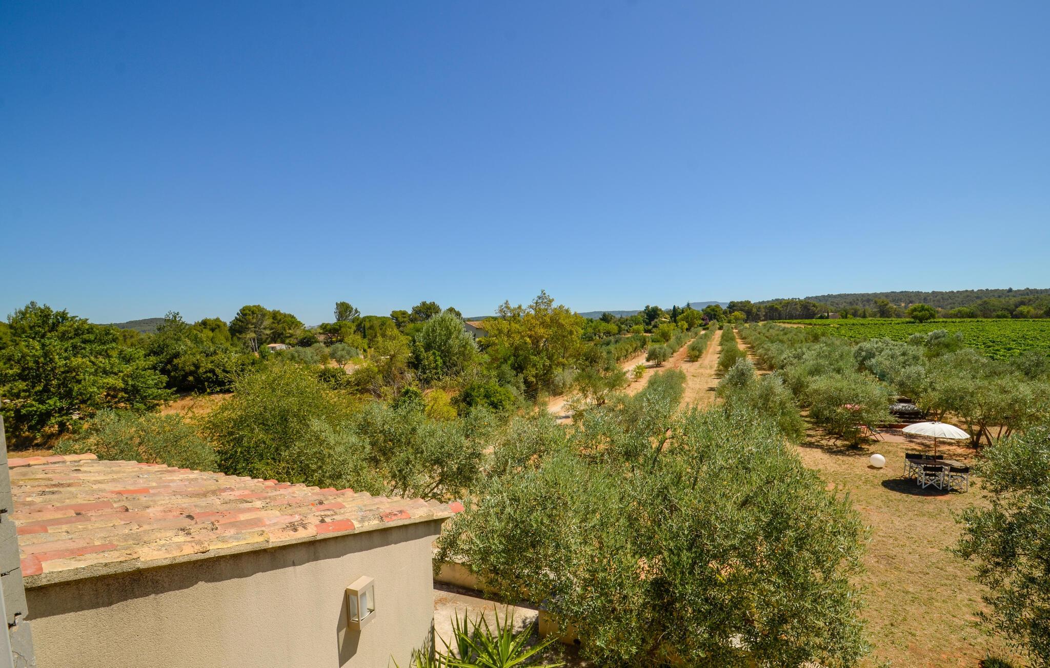 Oplev en drømmeferie i dette fortryllende feriehus med pool i en idyllisk beliggenhed. Beliggende midt i et malerisk, grønt landskab byder denne rummelige og komfortable oase af ro jer velkommen. Her kan I nyde en vidunderlig ferie med hyggelige måltider, sjove madlavningsaftener og hyggelige sammenkomster med familien. Det rummelige, smagfuldt indrettede interiør byder på masser af plads til stimulerende samtaler og harmoniske spilleaftener. Det store, idylliske udendørsområde er perfekt til gæster i alle aldre, der fuldt ud kan nyde det behagelige klima i Provence. Forfrisk jer i poolen mellem oliventræerne, find et hyggeligt sted at læse, snak over et glas vin i skyggen og skab uforglemmelige minder med stemningsfulde grillaftener under stjernehimlen. Gå en tur gennem den gamle bydel i Aix-en-Provence og prøv regionale specialiteter på det farverige marked. Vandr i naturparken Sainte-Victoire eller cykl gennem lavendelmarkerne og vinmarkerne. Besøg Château La Coste eller tag en tur til den turkisblå middelhavskyst.