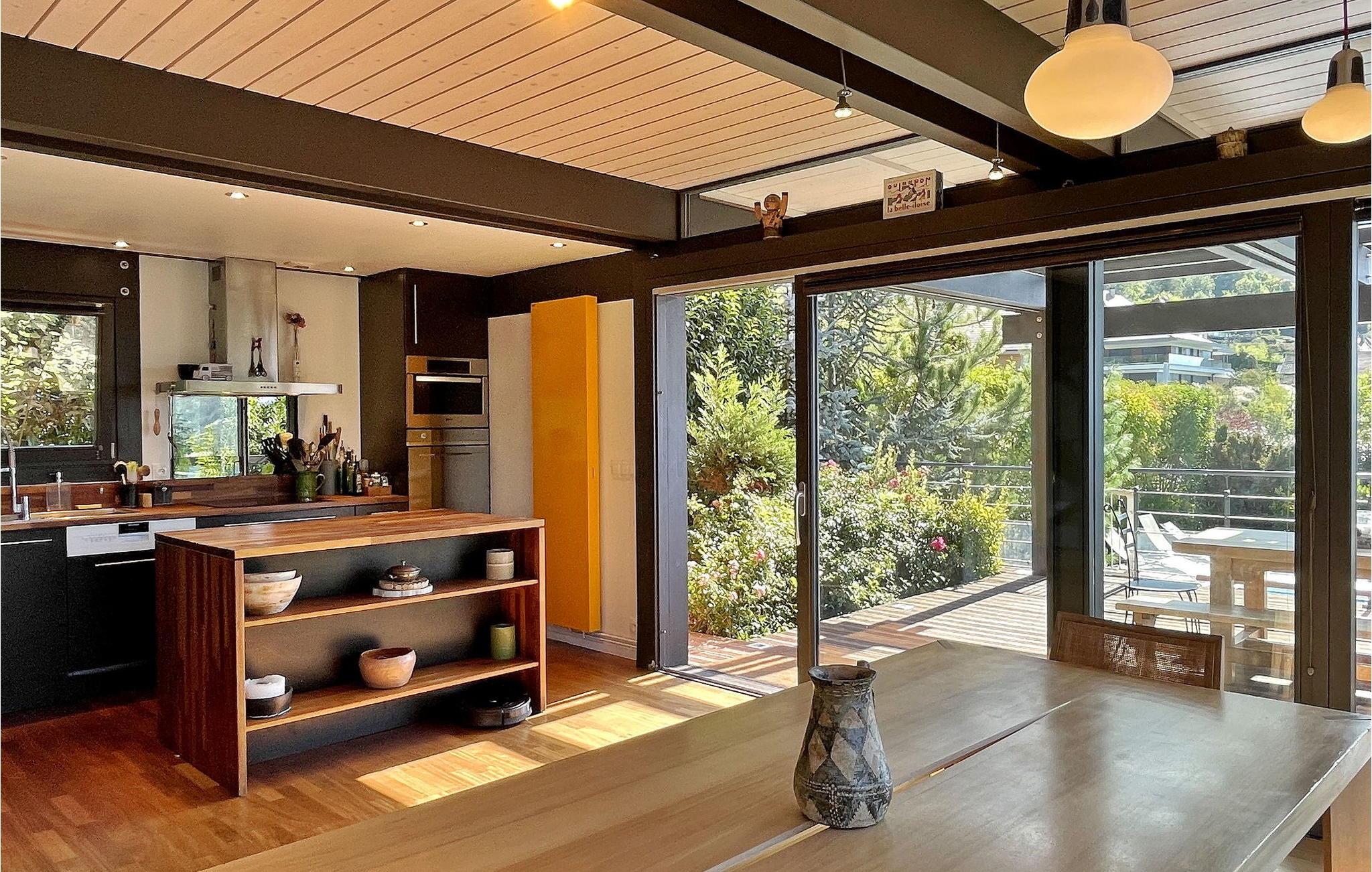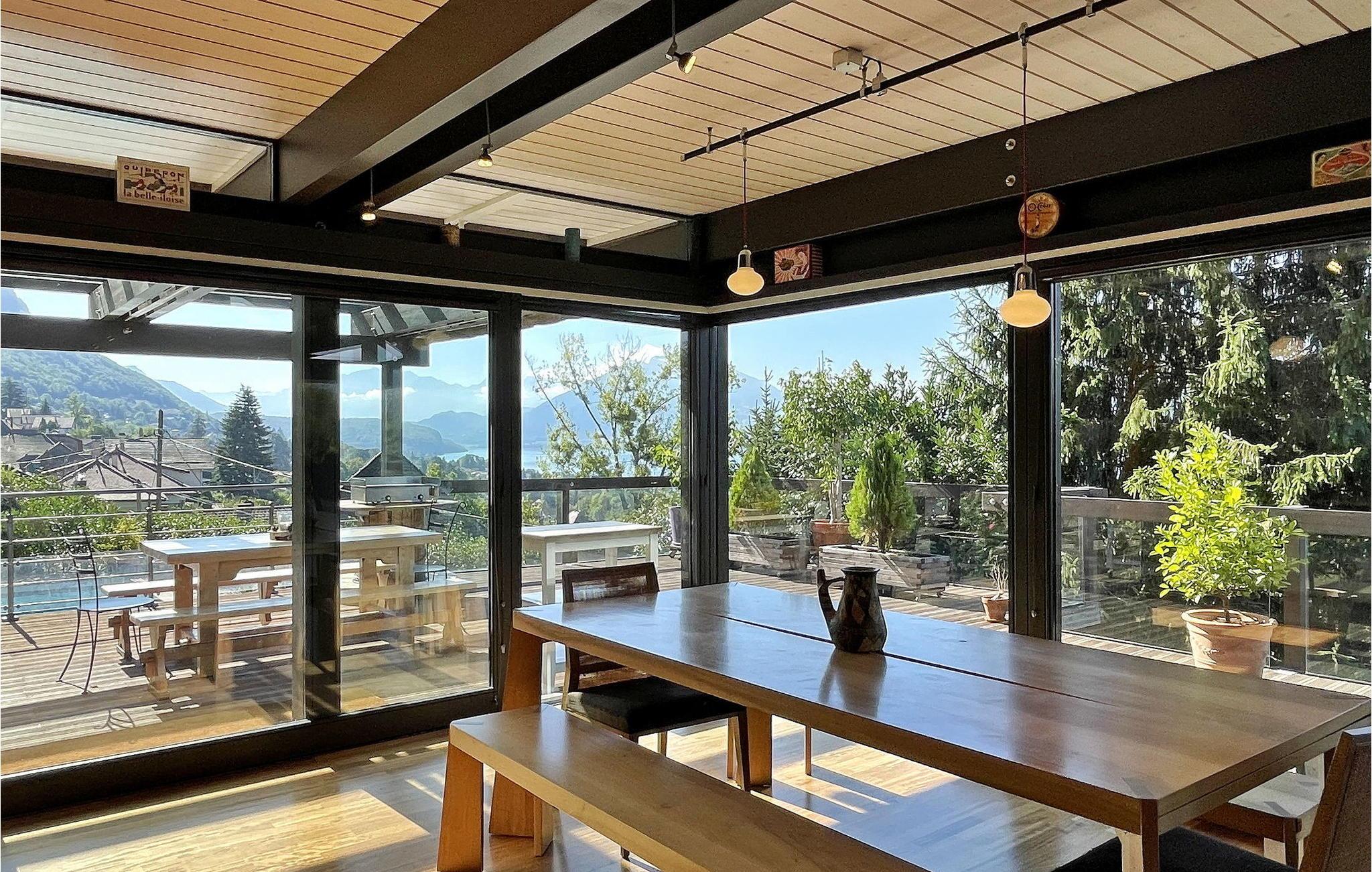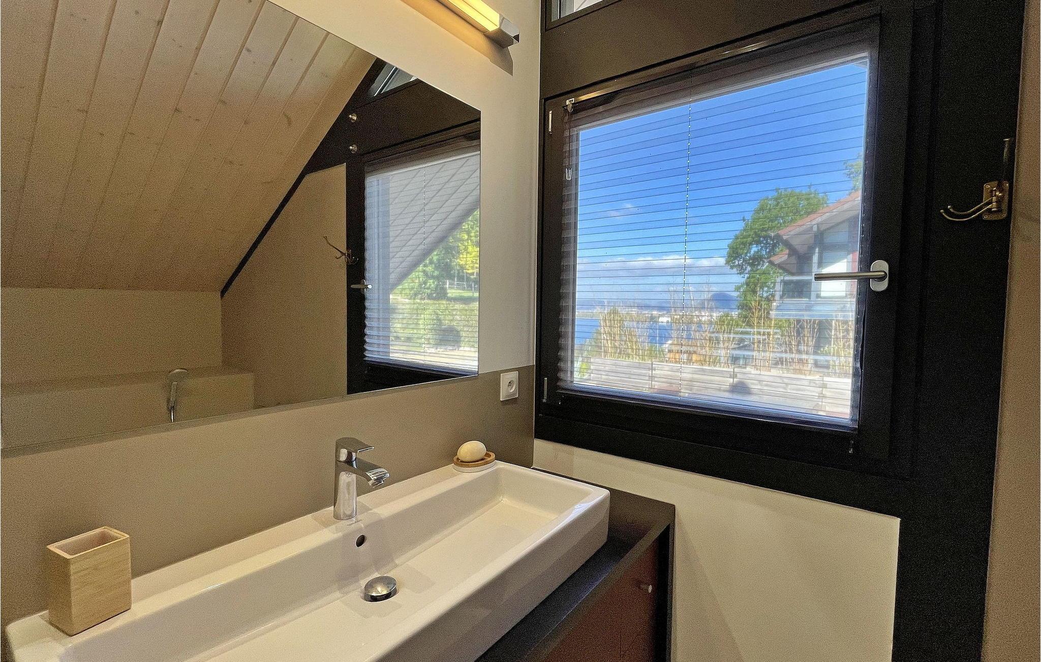 Oplev freden i Veyrier du Lac i denne moderne, slående villa med en fascinerende udsigt over Annecy-søen, kun 600 m gåtur fra søen. Stueetagen byder dig velkommen med en indbydende entré, der problemfrit smelter sammen i opholdsstuen, prydet med komfortable sofaer, en spiseplads og et fuldt udstyret åbent køkken med moderne apparater og bekvemmeligheder. Gå op til første sal, hvor du finder to af soveværelserne, hvoraf det ene har en malerisk udsigt over søen. Haveniveauet rummer det tredje soveværelse, som har direkte adgang ud til haven. Udendørs kan du nyde at sidde på den delvist overdækkede terrasse med fængslende udsigt over søen, udstyret med en plancha til udendørs spisning. Den private opvarmede pool, sikret med et sikkerhedsdæksel, venter på dine fritidsstunder på solterrassen. Villaen ligger i bakkerne over landsbyen Veyrier du Lac ved den solrige side af søen Annecy. Villaen har en smuk udsigt over søen; stranden Veyrier ligger 600 m væk. Villaen ligger tæt på landsbyens centrum med alle nærbutikker (bageri, købmand, restauranter, apotek, læge). Vandsport er en 800m gåtur. Byen Annecy er tilgængelig på cykel via cykelstien. Parapente, ridning og golf i Talloires inden for 5 km. Veyrier du Lac har 2200 indbyggere og er beliggende på solsiden af søen Annecy. Bemærk venligst: Soveværelserne på første sal tilbyder et forfriskende system til sommeren. Haveniveauet kan lejlighedsvis være beboet af ejerens søn, og et selvstændigt studie er placeret på bagsiden af villaen. Der er en lille vej under huset med minimal trafik, som kan mærkes fra terrassen på grund af forbipasserende køretøjer (maks. hastighed: 30 km/t). To cykler i voksenstørrelse er tilgængelige, og søen er let tilgængelig til fods om sommeren.