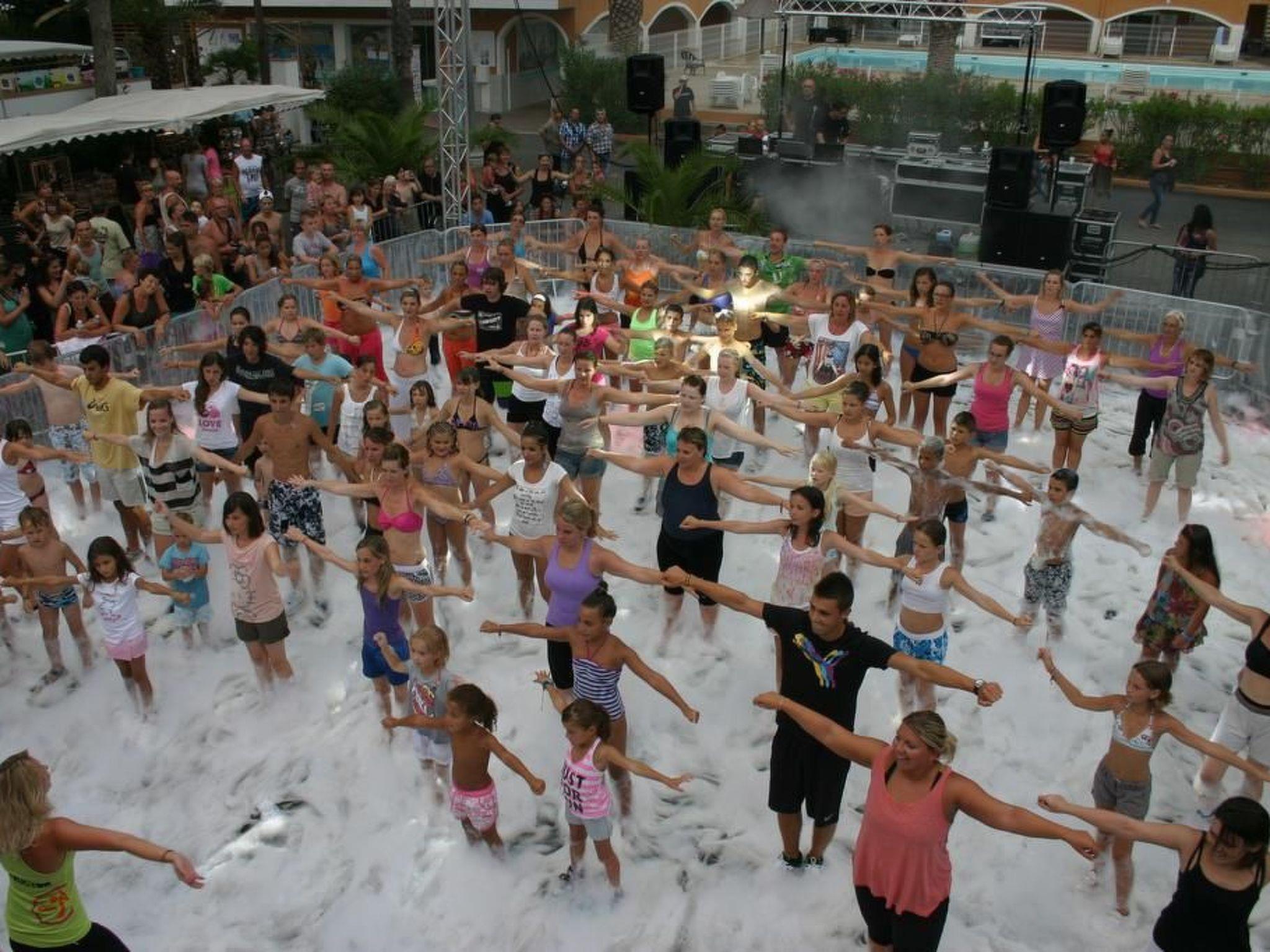 Camping and sports facilities: Canoe and Kayak sailing, school for deep-sea diving, sailing school, horse riding, Jet Ski, karting, boat hire, parachute flying, fishing, surfing, hiking-bike trips, water skiing. Running, aqua gym, aerobics, mini club, basketball tournament, mini-golf, sports and games in swimming pool, cabaret, pétanque, karaoke, table tennis, disco, shows, volleyball.
