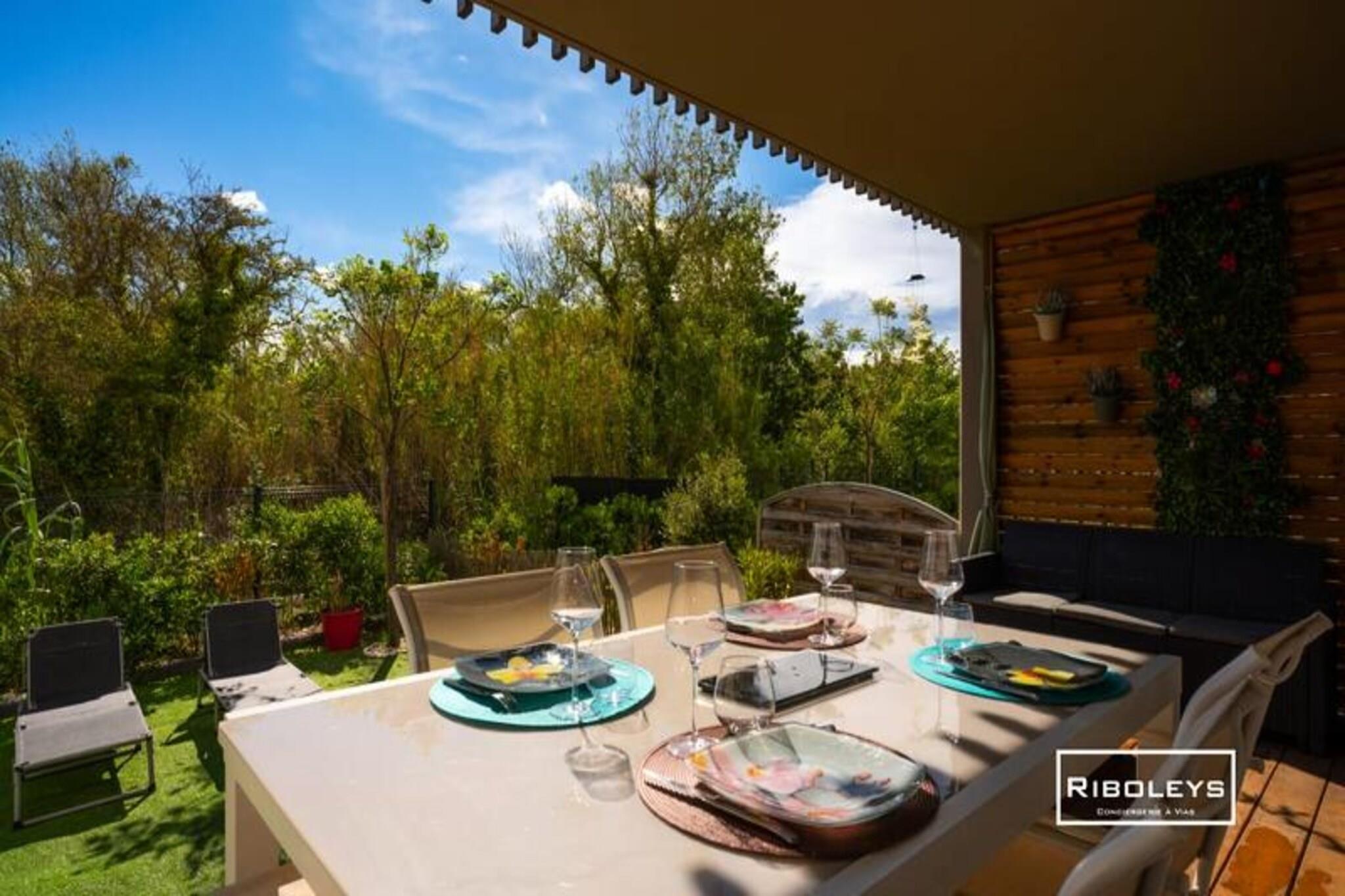 ML03 - Magnífica T2 en la planta baja con su terraza, su parcela privada. Idealmente ubicado en una nueva residencia Lodge con piscina, parque infantil y jardín frutal compartidos. El alojamiento dispone de 1 plaza de aparcamiento privado además de un amplio garaje. bicicleta segura. À A 400 m de la playa de Farinette y de la avenida comercial Vias Plage. Los 47 m² Está totalmente equipado para pasar una estancia agradable. La tranquilidad de sus grandes 14m² La madera a la sombra y el jardín privado harán las delicias de grandes y pequeños. El alojamiento dispone de un dormitorio con cama de 160x200cm y dos literas individuales. También encontrarás un sofá. convertible (140x190cm) en el salón. La piscina es compartida con todos los residentes de Marina Lodge y está abierta del 1 de junio al 30 de septiembre. El alojamiento dispone de plaza de aparcamiento cercana. la entrada a la residencia y un lugar de "entrega de minutos" en la entrada. A 15m de la puerta principal, ¡muy práctico para descargar equipaje! Vias ofrece a sus visitantes 5 km de playa de arena fina, mercados tradicionales cercanos. el ambiente cálido y los espacios naturales preservados cercanos. descubrir para descubrir a través de agradables circuitos de descubrimiento, ideales para unas vacaciones en Occitania. Este pueblo típico occitano, inmerso en un espacio natural excepcional, es una estación balnearia moderna y dinámica. Vias es un destino ideal para una estancia familiar. El pueblo de Vias te conquistará. a través de multitud de actividades como: una visita a la galería de arte de André; Malraux, un paseo por el Canal du Midi, el placer de pasear por las calles de Vias a orillas del mar, de disfrutar de un día al aire libre. el Europark o incluso el alquiler de bicicletas y el placer de pasear por parte del famoso Canal du Midi o por la costa mediterránea. El acceso a las distintas playas de Vias es muy sencillo mediante carriles bici (2,5 km) o directamente con el aparcamiento del establecimiento. En las diferentes playas se ofrecen numerosas actividades acuáticas, como buceo, vela, motos acuáticas o paddle, kitesurf y wakeboard, kayak de mar... El alojamiento está situado ; à proximidad multitud de restaurantes, bares y otros negocios. La casa está ubicada en una residencia privada y segura. Está completamente cerrado. La residencia es tranquila y familiar. En tren: la estación de tren de Vias se encuentra al lado. A 1 kilómetro del centro histórico de Vias. Para aquellos que prefieren llegar desde Agde, hay una estación más grande que acoge TER y TGV. Esta estación es solo’ A 5 kilómetros del centro de Vias. En avión: el aeropuerto de Béziers Cap d'Agde le permite llegar al aeropuerto. Vía en avión. Este aeródromo se encuentra a 5 kilómetros del centro de Vias. En autobús: la empresa Hérault Transport conecta Vias con diferentes localidades de Hérault. Un depósito por valor de 300€ se le pedirá que lo haga. tu llegada. Se invita a los viajeros a traer su ropa de cama y de baño. Si prefieres confiarnos la preparación de tus camas, puedes reservar kits de ropa de cama y baño por 10EURO. por persona y por estancia El alquiler no incluye gastos de limpieza y está sujeto a cambios. Tienes a tu disposición una aspiradora y todo lo necesario para la limpieza. Sin embargo, si lo deseas, podemos hacerlo realidad. tu plaza por un precio fijo de 70 euros IVA incluido. Rechazamos categóricamente los grupos de jóvenes. No se admiten animales en este alojamiento. Depósito (en euros) - 300