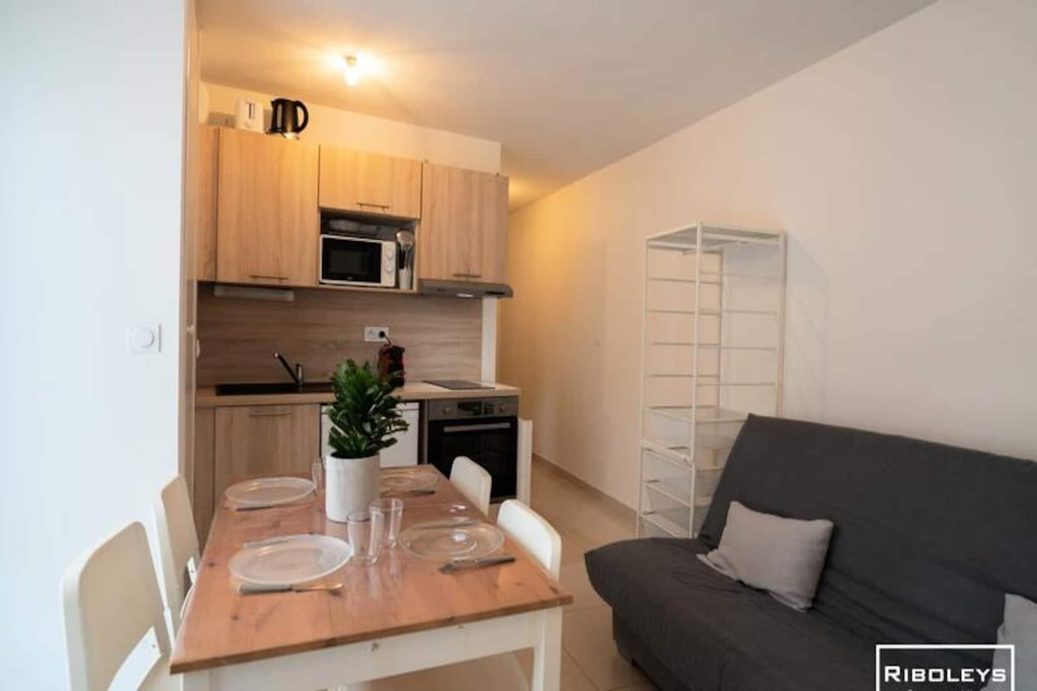 Et stenkast fra Middelhavets gyldne sandstrand tilbyder denne charmerende etværelseslejlighed i den nybyggede residens 'Le Saint-Louis' det perfekte tilflugtssted for din ferie ved havet. Beliggende på øverste etage og tilgængelig med elevator, kombinerer dette 27 m² store fristed moderne komfort med en uovertruffen beliggenhed kun 100 meter fra stranden, der inviterer dig til at fordybe dig i Vias' pulserende kystatmosfære. \n\nIndvendigt er lejligheden omhyggeligt designet til at maksimere plads og komfort. Den lyse opholdsstue har to køjesenge på 140 cm, en hyggelig sovesofa og et spisebord, hvilket skaber et indbydende rum til afslapning eller fælles måltider. Det fuldt udstyrede køkken giver dig mulighed for nemt at tilberede friske middelhavsretter, mens det tilstødende badeværelse kan prale af en brusekabine, toilet og vaskemaskine for ekstra bekvemmelighed. Gå ud på den sydvendte balkon for at sole dig i den varme occitanske sol og nyde rolige øjeblikke med udsigt over de fredfyldte omgivelser. \n\nSelve residensen er privat, sikker og familievenlig og tilbyder et fredeligt miljø for dit ophold. Med en privat nummereret parkeringsplads inkluderet er det nemt at udforske området. Vias fortryller besøgende med sine 5 kilometer lange fine sandstrande, livlige traditionelle markeder og bevarede naturområder, der er perfekte til afslappende gåture eller cykelture. Den nærliggende Canal du Midi, der er på UNESCOs verdensarvsliste, tilbyder en malerisk kulisse for cykel- eller sejladseventyr. \n\nUanset om du dykker ned i det azurblå vand, prøver kræfter med paddleboarding eller blot nyder det lokale køkken på en af ??de mange nærliggende restauranter, placerer denne lejlighed dig i hjertet af det hele. Fra den pulserende forlystelsespark Europark til de charmerende gader i Vias er hvert øjeblik her en mulighed for at skabe uforglemmelige minder. Oplev det bedste af Occitanien i dette idylliske oase ved havet.