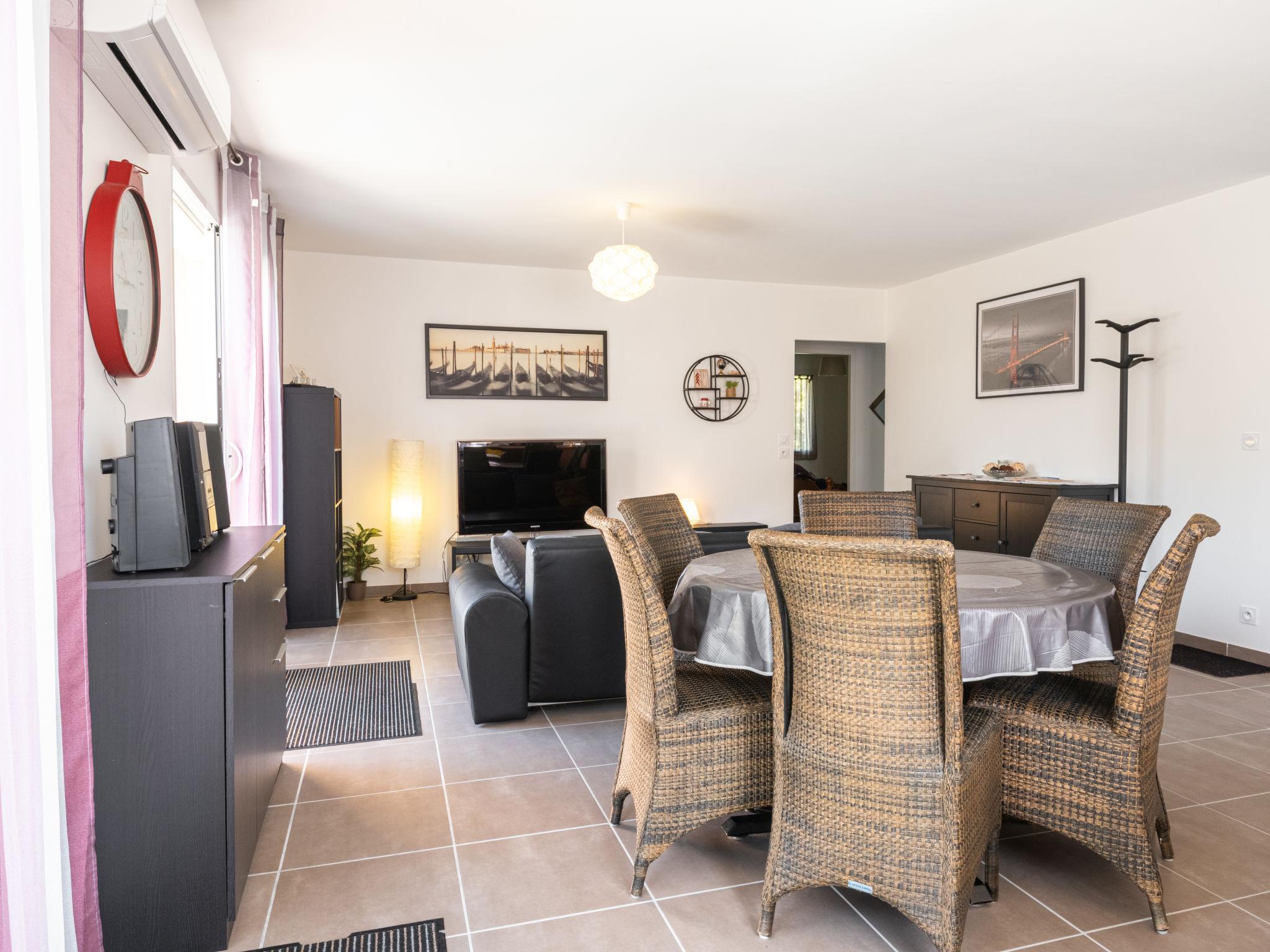"Carraou", 4-room house 95 m2. Bright, beautiful furnishings: living/dining room with dining table, dining nook and satellite TV (flat screen), hi-fi system. Exit to the terrace. 1 room with 1 french bed (140 cm, length 190 cm). 1 room with 1 french bed (160 cm, length 200 cm). 1 children's room with 1 bed (90 cm, length 190 cm). Open kitchen (oven, dishwasher, 4 ceramic glass hob hotplates, toaster, kettle, microwave, freezer, electric coffee machine). Shower, sep. WC. Electric heating, air-conditioning. Terrace. Terrace furniture, barbecue (portable), deck chairs (4). Facilities: washing machine, children's high chair, baby cot (extra). Internet (WiFi, free). Please note: non-smoking house. Smoke alarm. Offer by a private individual according to Art. 155, IV of CGI.