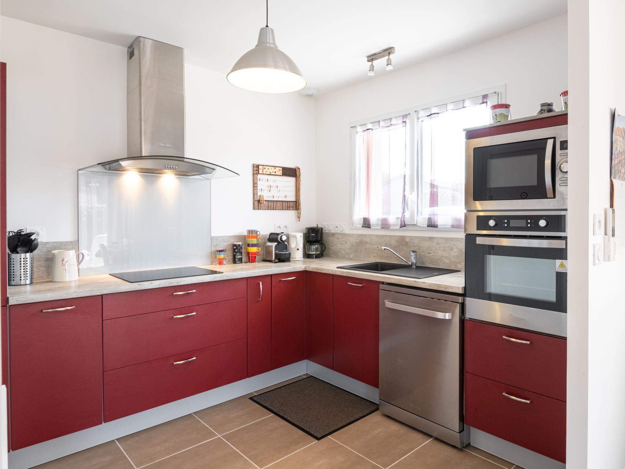 Beautiful, cosy house "Carraou", built in 2015. 700 m from the centre of Vielle-Saint-Girons, 4.5 km from the centre of Linxe, 5 km from the centre of Léon, in the residential district, 7 km from the sea, 2.5 km from the lake. Private: property 700 m2 (fenced) with lawn, parking at the house on the premises. Carport. Supermarket 4.5 km, bus stop "Moliets et Maa-Office de tourism" 11 km, sandy beach "La Lette Blanche" 7 km, 2.5 km.