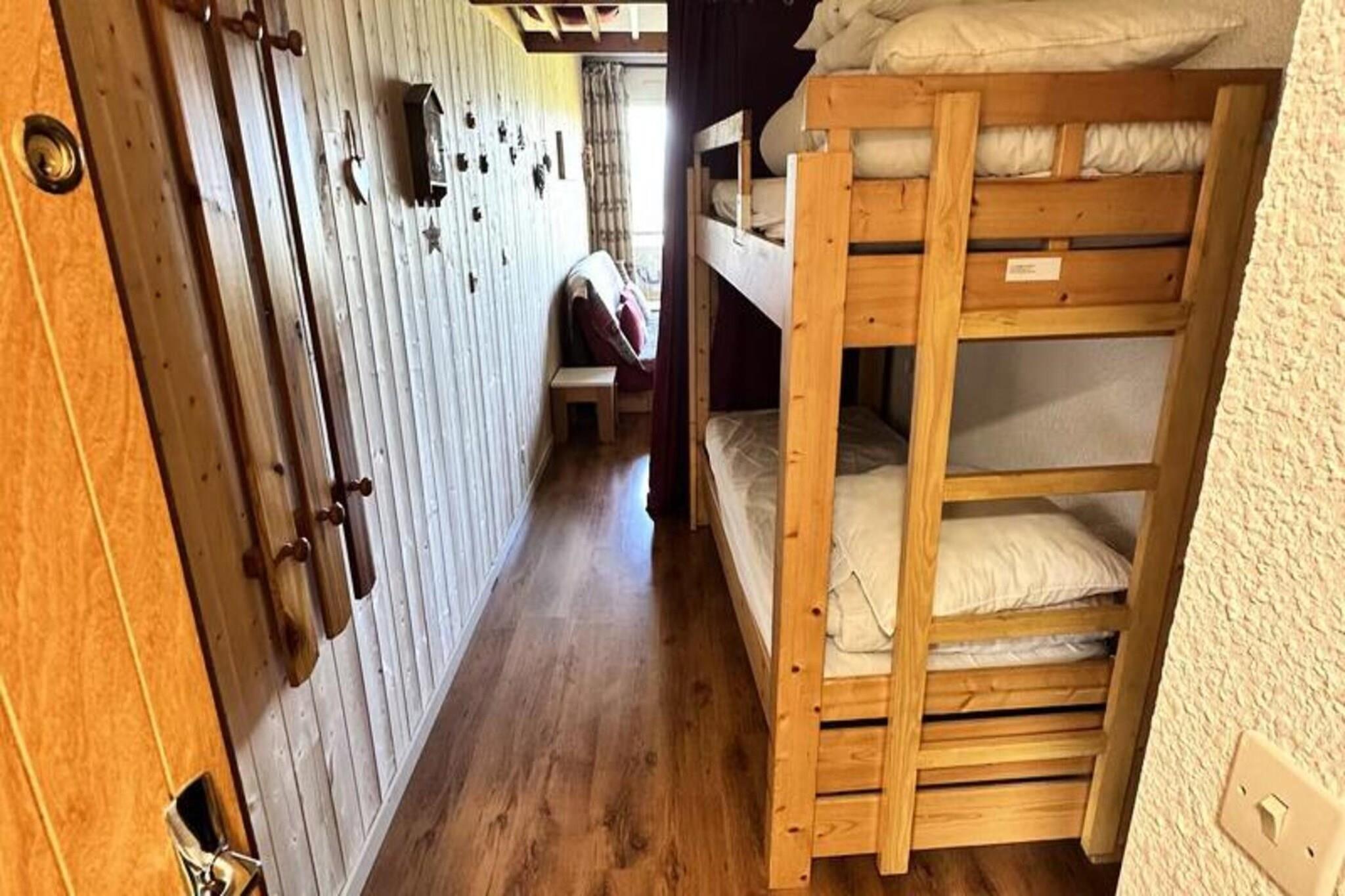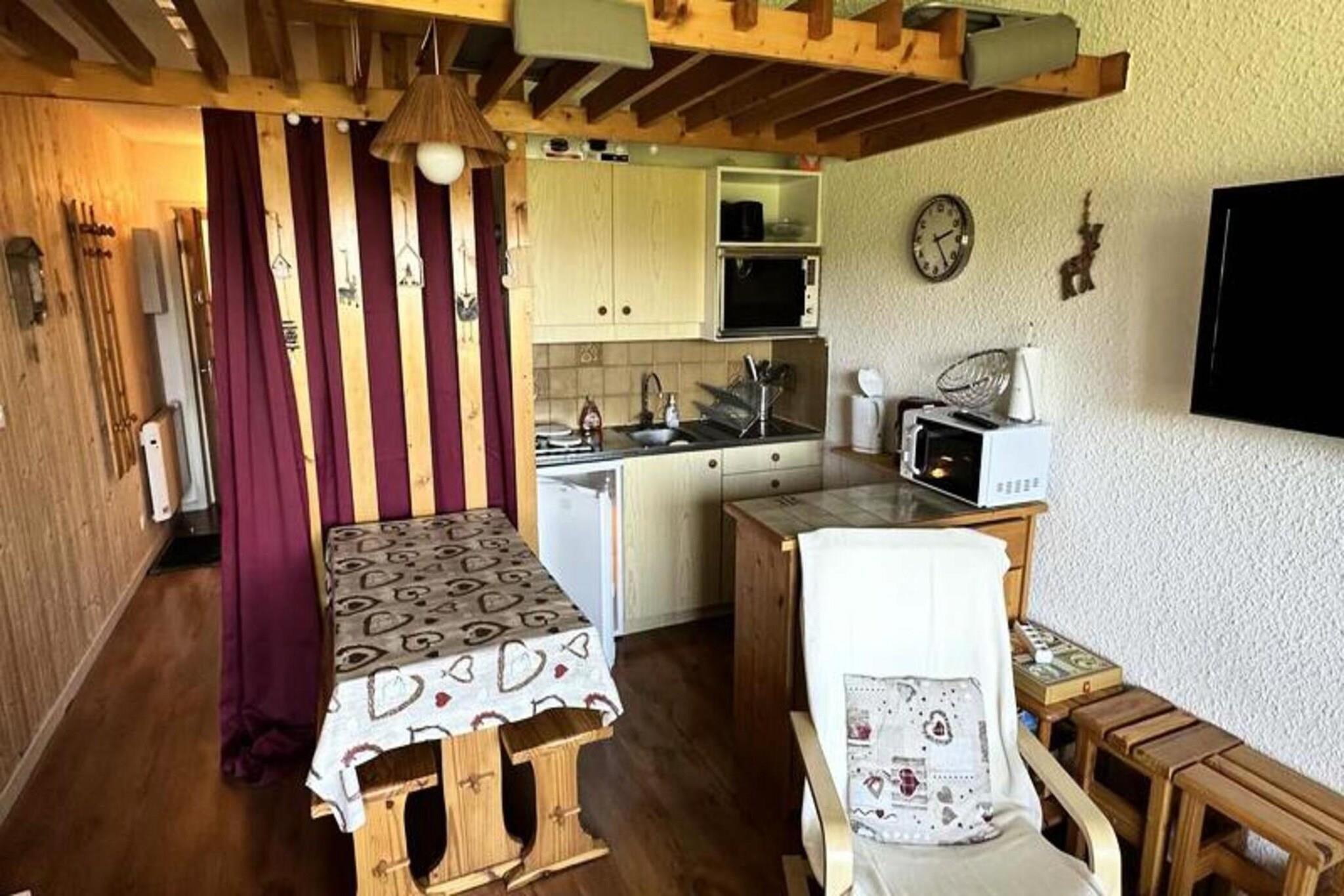 Denne hyggelige hytte på 26 m² tilbyder et behageligt ophold for op til 4 gæster. Kabinen indeholder et soveområde med to 90 cm køjesenge og en stue med en 140 cm Click-clack sovesofa. Lejligheden har et fjernsyn, to gyngestole og en sydvendt balkon med udsigt over Villard-de-Lans-bjergene. Det er en ikke-ryger lejlighed og giver en familievenlig atmosfære. Der kræves et depositum på 400 EURO ved ankomsten, og valgfri tjenester som slutrengøring og leje af barneseng er tilgængelige. Ejendommen er ideelt placeret ved foden af ??de alpine skiløjper, hvilket gør den perfekt til vintersportsentusiaster. Omgivet af natur er det også tæt på adskillige vandrestier til vandreture om sommeren. I nærheden finder du lokale butikker, restauranter og butikker til udlejning af skiudstyr. Derudover er der en gratis shuttleservice til landsbyen og WIFI-adgang tilgængelig i indkøbscentret. Lejligheden er udstyret med et køkkenområde, der omfatter et køleskab, to kogeplader, en ovn, en mikrobølgeovn, en filterkaffemaskine, en kedel og en brødrister. Badeværelset har badekar med håndvask og separat toilet. Gratis parkering er tilgængelig omkring boligen, hvilket tilføjer bekvemmelighed til dit ophold.