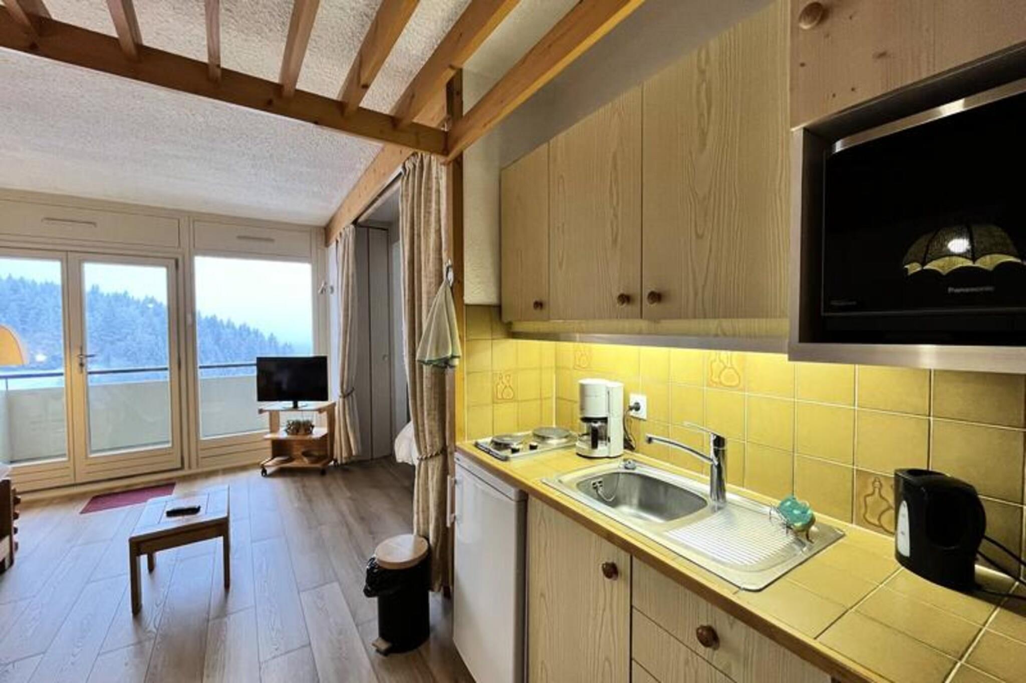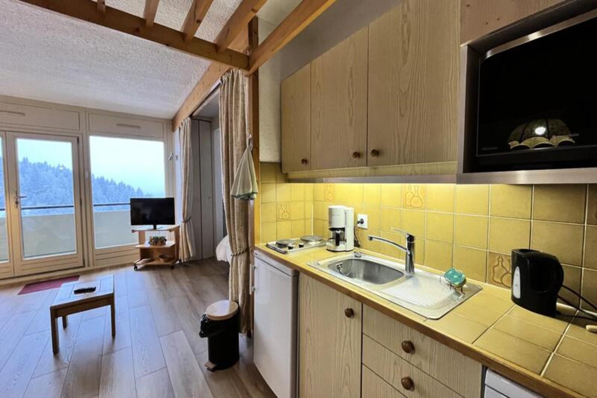Denne charmerende studielejlighed kan rumme op til 6 gæster med et hjørne med dobbeltseng (140 cm), en sovesofa til 2 personer og 2 køjesenge i indgangskabinen. Ejendommen er ideel for familier eller grupper, og tilbyder alt det nødvendige for et behageligt ophold. Ikke-ryger lejligheden tilbyder også en rejseseng og babyudstyr til familier med små børn, hvilket gør den familievenlig. Denne lejlighed ligger ved foden af ??Villard de Lans-skiløjperne og tilbyder direkte adgang til ski- og snowboardaktiviteter. Det er også inden for gåafstand af butikker, restauranter og skiudstyrsudlejningsbutikker, hvilket gør det til en bekvem base for alle dine behov. Efter en dag på pisterne kan du nyde det pulserende lokalområde med caféer, markeder og underholdningsmuligheder kun en kort gåtur væk. Lejligheden er fuldt udstyret til et problemfrit ophold og byder på et veludstyret køkken med køleskab, mikroovn, ovn og opvaskemaskine. Brusebadet har en italiensk bruser, og en vaskemaskine er tilgængelig for ekstra bekvemmelighed. Et separat toilet sikrer komfort og privatliv, mens altanen byder på et godt sted at slappe af efter en travl dag. Ejendommen omfatter også en garage til sikker parkering.