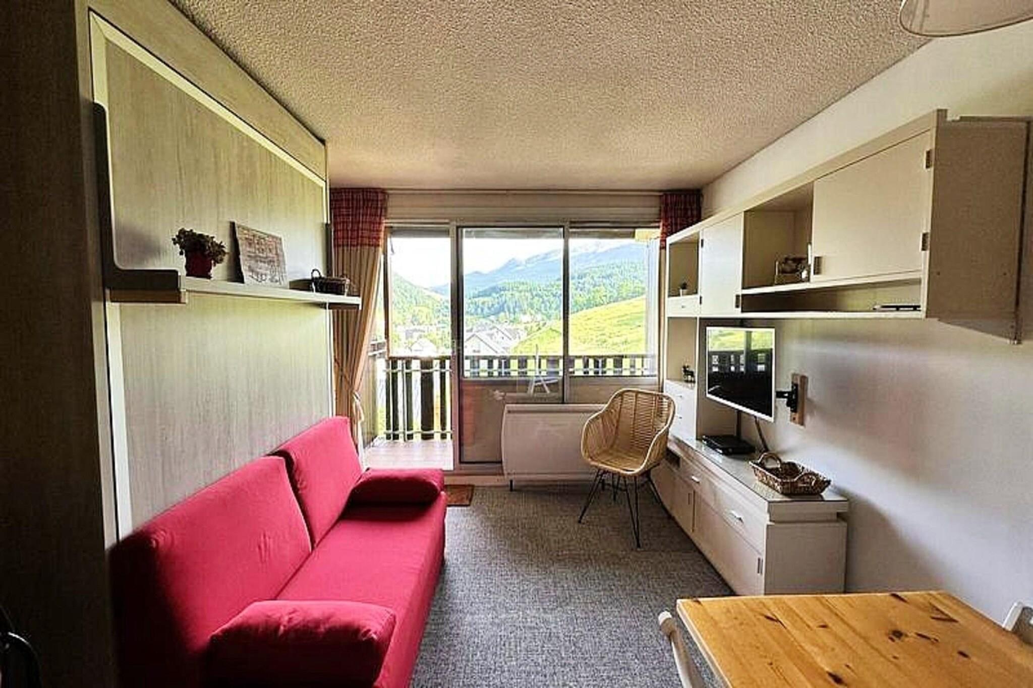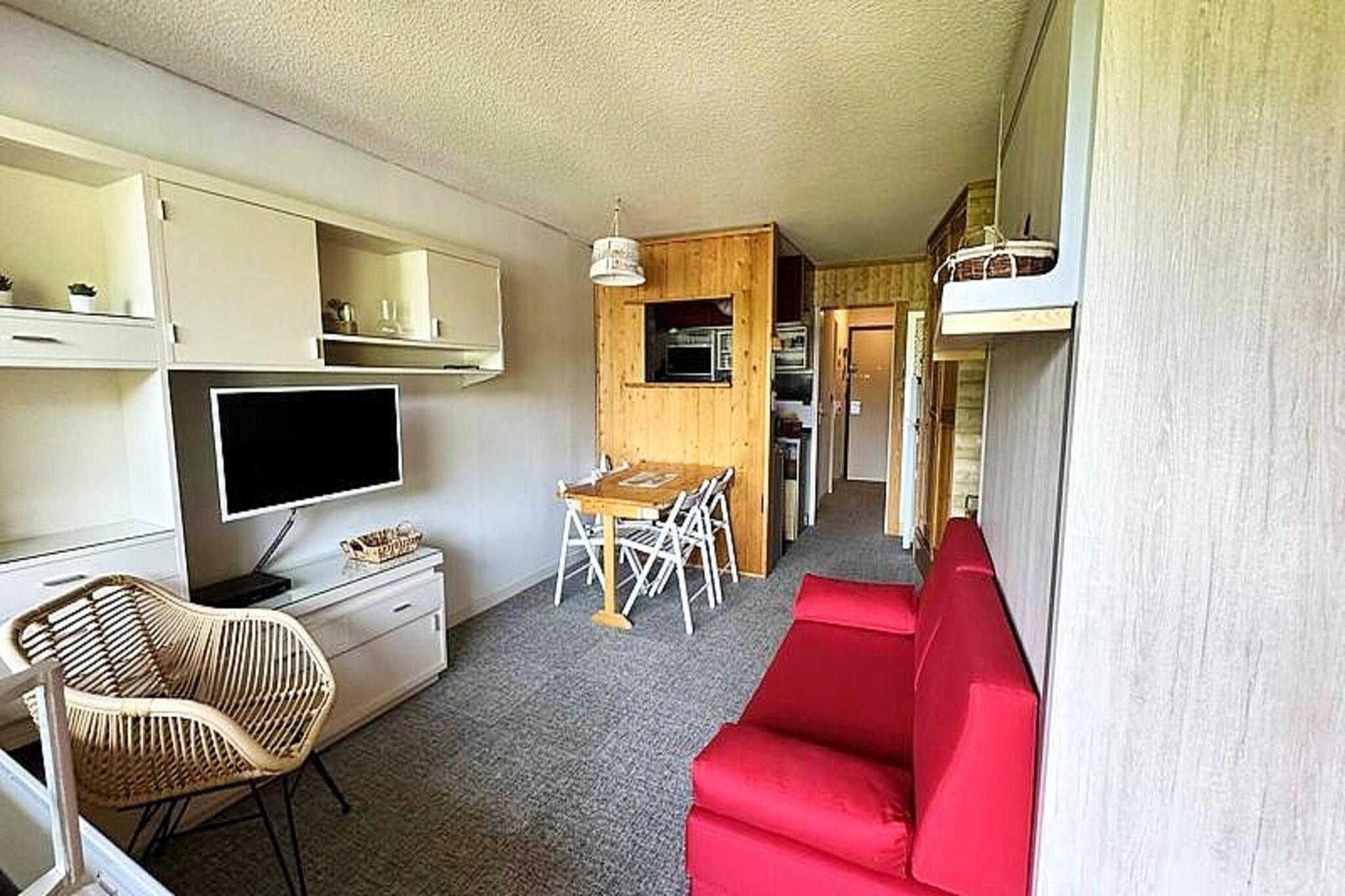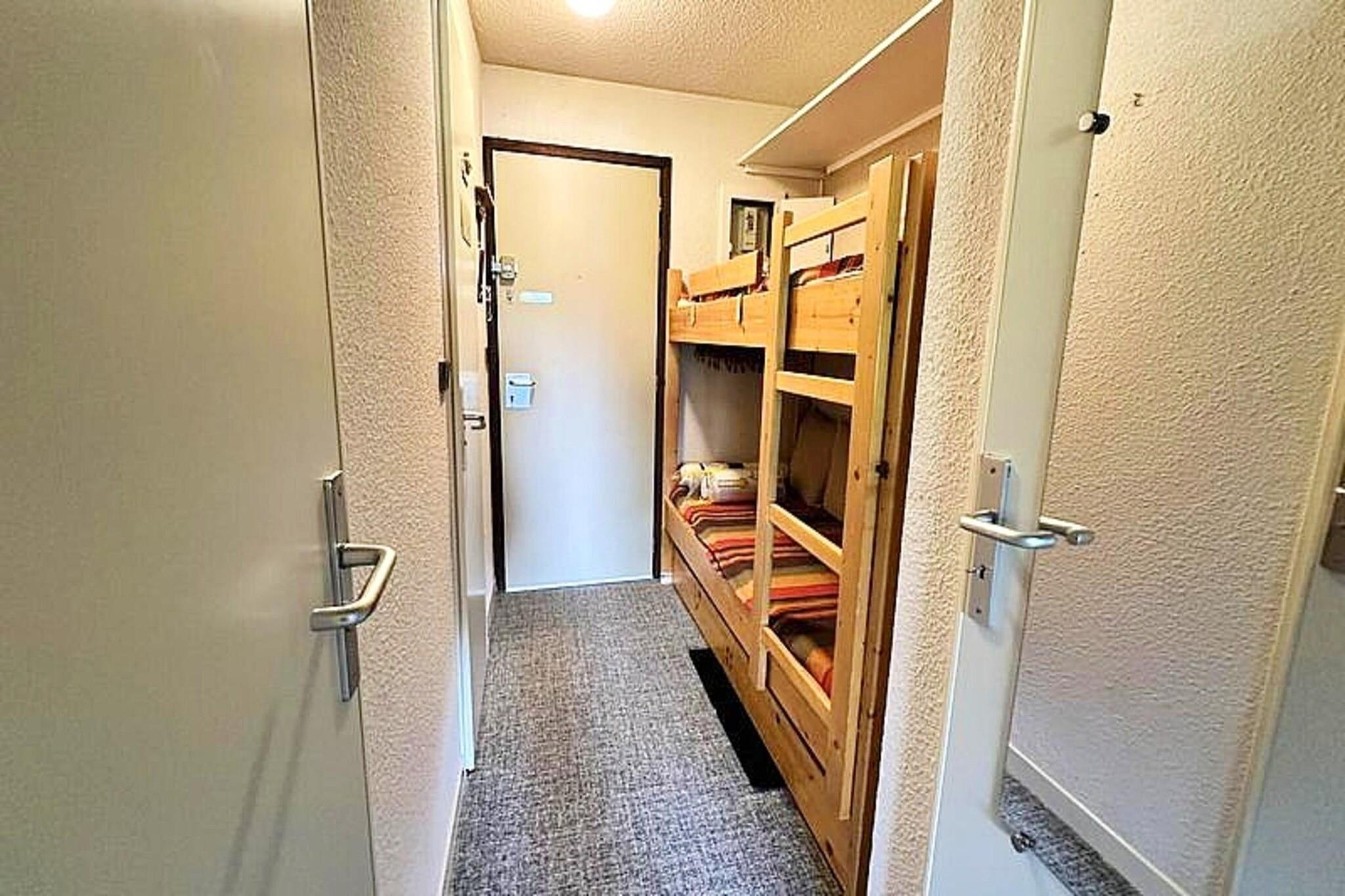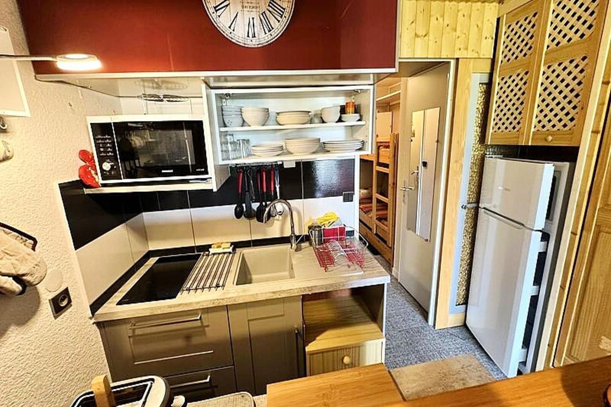 Résidence La Fleur du Roy er et charmerende hyttestudie beliggende 1,5 km fra byens centrum og kun 3 km fra skiløjperne. Boligen tilbyder bekvemme faciliteter, herunder reserveret parkering, en kollektiv garage til cykler og slæder i stueetagen og en gratis shuttle-service i vintermånederne for at transportere dig direkte til pisterne. Med sin smukke sydvendte balkon med en fantastisk udsigt over bjergene, tilbyder denne 27 m² store studio et fredeligt tilflugtssted efter en dag med udendørs aktiviteter. Studiet har et komfortabelt opholdsområde med en 140 cm udtrækkelig seng og et fjernsyn. Køkkenet er fuldt udstyret med vaskemaskine, køleskab, to kogeplader, mikrobølgeovn og kaffemaskine, hvilket gør det nemt at tilberede dine måltider under dit ophold. For ekstra soveplads inkluderer kabineområdet to 90 cm køjesenge. Badeværelset er udstyret med badekar, og der er separate toiletter for ekstra bekvemmelighed. Denne lejlighed ligger på 4. sal med elevator og er udstyret med individuel elvarme for komfort. En reserveret underjordisk parkeringsplads (nr. 45) sikrer din bekvemmelighed, og yderligere muligheder såsom leje af barneseng og slutrengøring er tilgængelige efter anmodning. Bemærk venligst, at der kræves et depositum på 400 euro ved ankomst. Ejendommen er røgfri og tilbyder et rent og behageligt miljø for dit ophold.