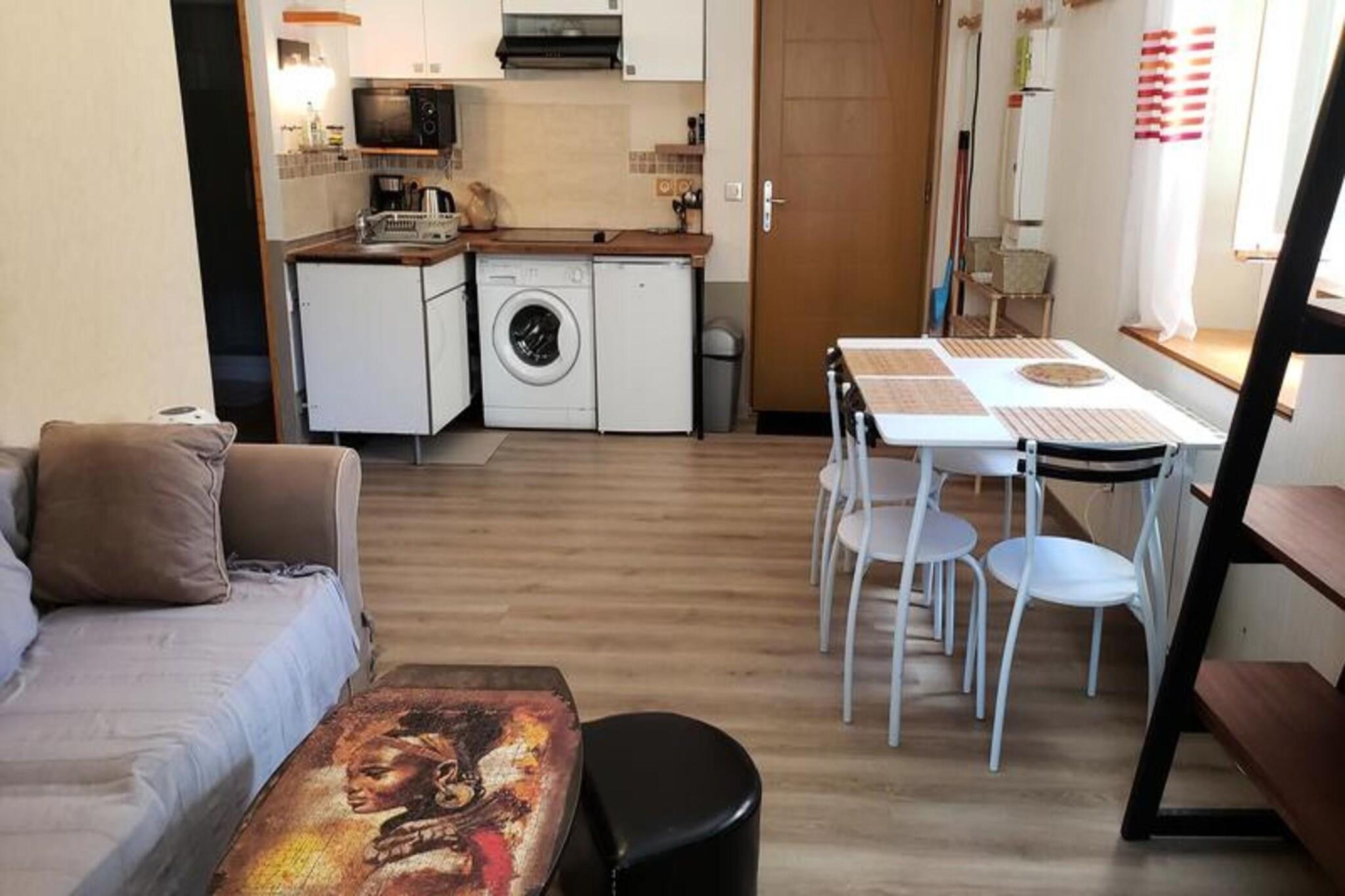 Denne charmerende lejlighed på 31 m² ligger i stueetagen og tilbyder et hyggeligt og bekvemt ophold i hjertet af landsbyen. Den har et opholdsområde med en 140 cm sovesofa, et tv og et spisebord. Det åbne køkken er veludstyret med køleskab, tre kogeplader, mikroovn, kaffemaskine, brødrister og kedel. Til lejligheden hører desuden soveværelse med 140 cm seng og god opbevaringsplads. Badeværelset er udstyret med bruser, og lejligheden har ikke-adskilte toiletter for ekstra bekvemmelighed. Lejligheden er ideelt beliggende kun 3 km fra de alpine skiløjper, perfekt til vintersportsentusiaster. Det er også tæt på badebakken (kælkeparken) og børnehaven, der byder på sjove aktiviteter for familier. Landsbyens centrum, med dets butikker og caféer, er inden for rækkevidde, hvilket gør det til et fantastisk sted for dem, der ønsker at udforske lokale attraktioner og nyde områdets faciliteter. Det omkringliggende område er perfekt til udendørs aktiviteter, herunder vandreture og skiløb i vintermånederne. Lejligheden byder på flere ekstra faciliteter til et behageligt ophold, herunder en vaskemaskine, ideel til længere ophold. For familier med små børn kan en barneseng lejes, og slutrengøring er tilgængelig efter anmodning. Bemærk venligst, at der kræves et depositum ved ankomsten for at sikre opholdet.