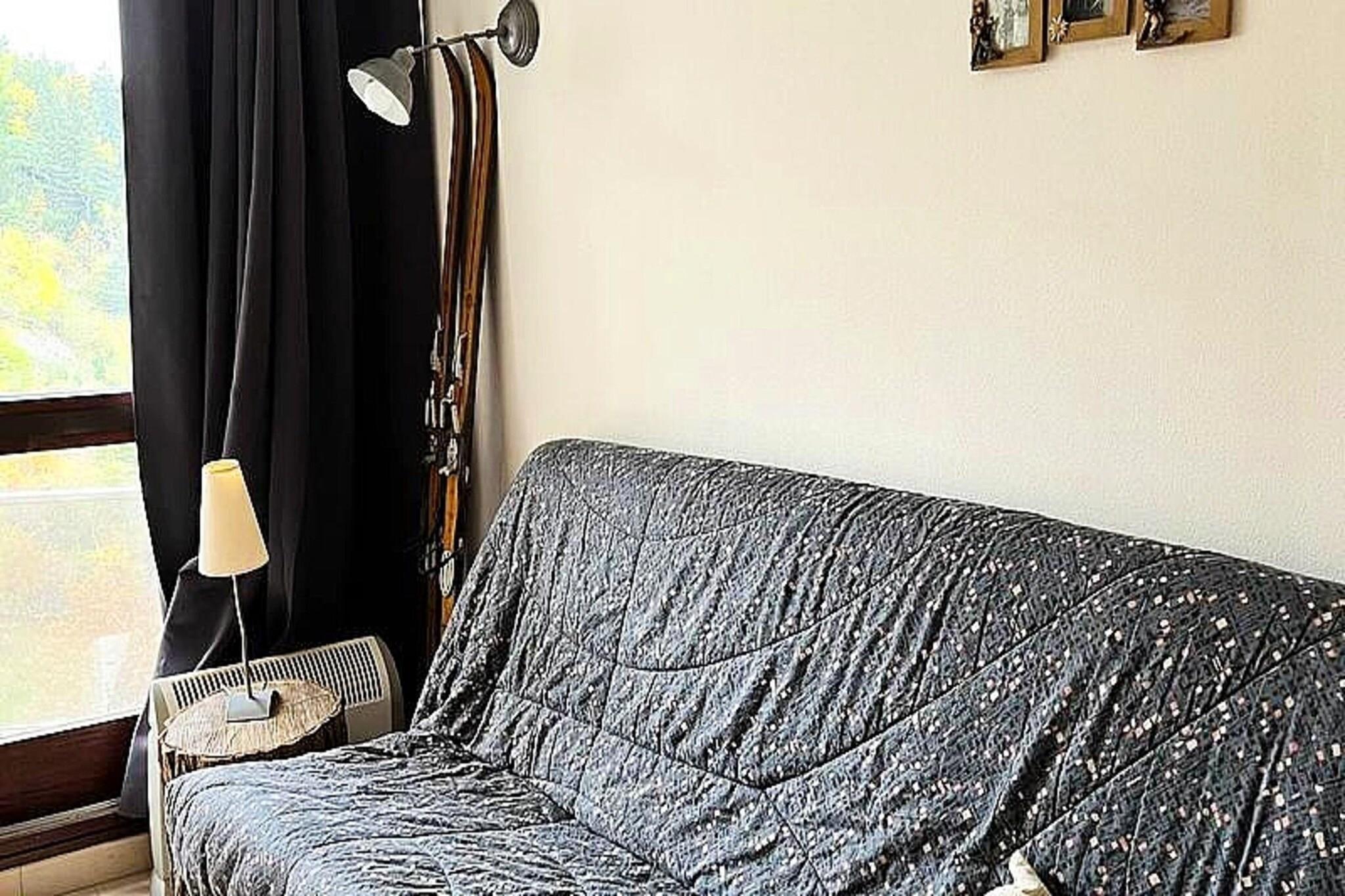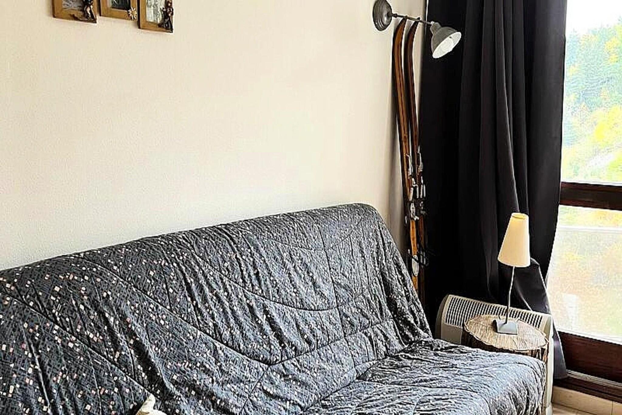Denne charmerende studiolejlighed, beliggende ved foden af ??alpine skiløjper, tilbyder et hyggeligt ophold for op til 4 gæster. Lejligheden har en sovesofa (140 cm) og køjesenge til en person hver samt en spiseplads med en bænk. Det er ikke kæledyrsvenligt, hvilket sikrer et roligt og fredeligt miljø. Studiet er perfekt til en familie eller en gruppe af venner, der leder efter et behageligt tilflugtssted efter en dag med skiløb eller udendørs eventyr. Gæsterne vil nyde bekvemmeligheden ved butikker, restauranter og en skiskole i bygningskomplekset. Lejligheden ligger også i nærheden af ??forskellige sportsudstyrsudlejningsfirmaer, der henvender sig til både sommer- og vinteraktiviteter. I de varmere måneder forvandles skiløjperne til et downhill mountainbike-område, der passer til alle niveauer. Vandreentusiaster vil finde adskillige stier at udforske, hvilket gør det til en ideel destination hele året rundt. Det fuldt udstyrede køkken omfatter køleskab, vask, opbevaring og apparater såsom en TASSIMO-kaffemaskine, et fonduesæt og en raclette-enhed. Badeværelset er udstyret med badekar og toilet, hvilket giver gæsterne et afslappende og funktionelt rum til at slappe af. Studiet er også udstyret med varme for at sikre komfort i koldere årstider.
