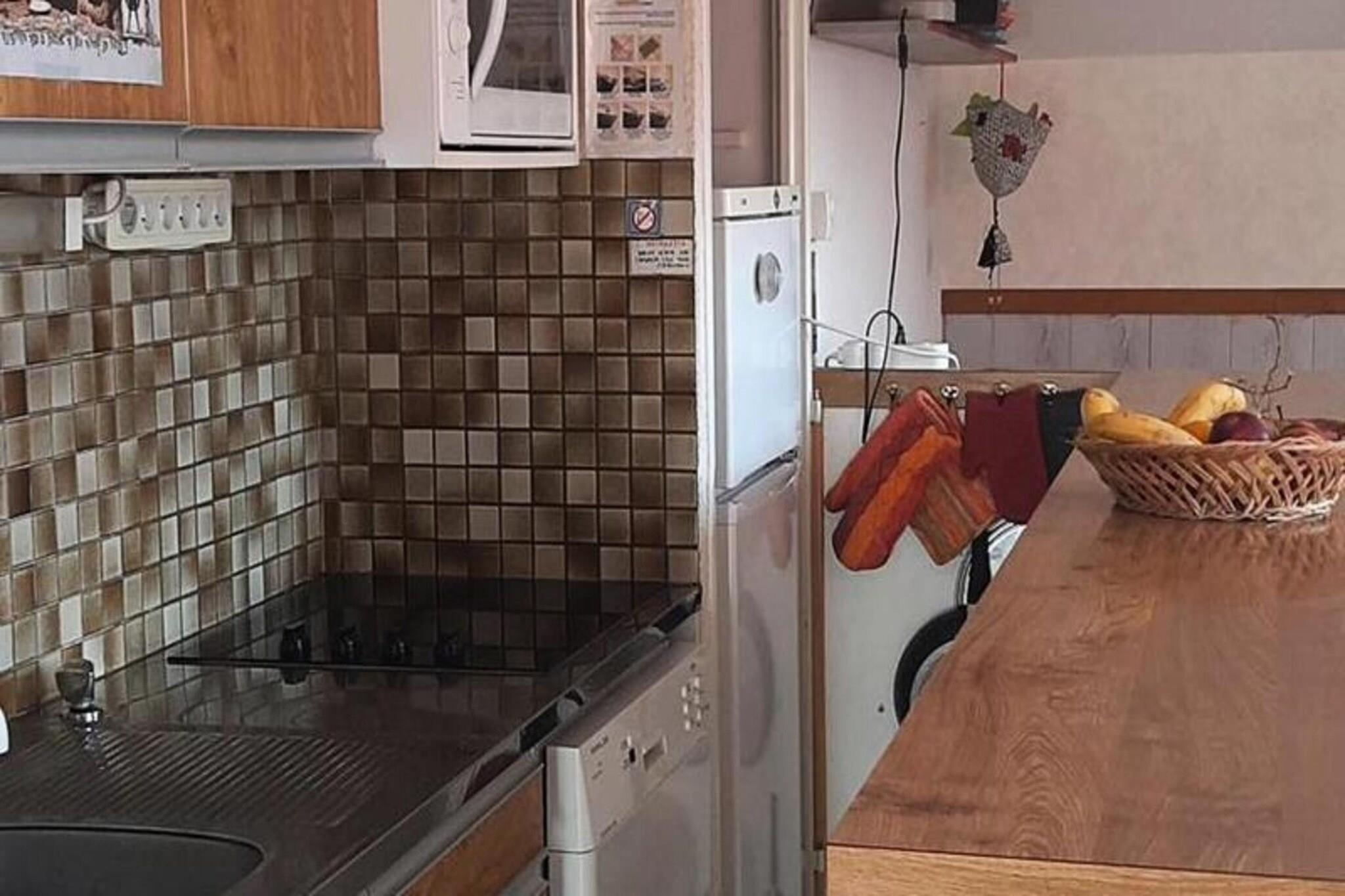 Denne rummelige duplex-lejlighed på 75 m² kan rumme op til 8 gæster, hvilket gør den perfekt til en familieferie. Det har 3 soveværelser: et værelse i stueetagen med en dobbeltseng, et andet værelse ovenpå med en dobbeltseng og to enkeltsenge, og et tredje værelse med en køjeseng og tre enkeltsenge. I stuen er der en sovesofa, tv, dvd-afspiller og adgang til en sydvendt altan. Lejligheden er ikke-ryger, og kæledyr er ikke tilladt. Der kræves et depositum på 400 EURO ved ankomst, og slutrengøring er tilgængelig efter anmodning. Beliggende kun 15 minutter til fods fra byens centrum og 5 km fra skiløjperne, tilbyder denne lejlighed nem adgang til både vintersport og lokale faciliteter. Boligen ligger i et roligt, skovklædt område, som giver fredelige rammer for dit ophold. Gratis transport til pisterne er til rådighed, og landsbyens butikker, caféer og restauranter er i nærheden for nemheds skyld. Gæsterne vil også nyde nærheden til lokale attraktioner og familievenlige aktiviteter. Lejligheden er veludstyret med et fuldt udstyret køkken, herunder en opvaskemaskine, mikroovn, kaffemaskine og et stort køleskab. For ekstra komfort er der en vaskemaskine, et badeværelse med badekar og et separat toilet i stueetagen. Ovenpå badeværelset har bruser og ekstra toilet. Yderligere faciliteter omfatter en overdækket parkeringsplads, skiskab, privat tennisbane og et babysæt med barnesenge, klapvogn og høj stol.