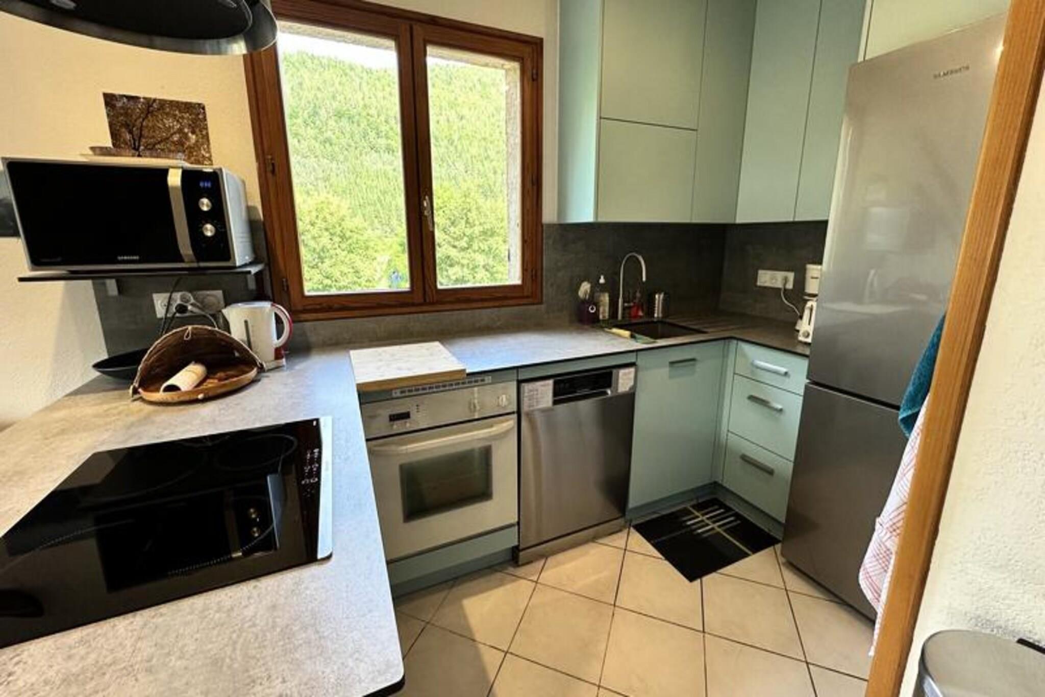 Denne charmerende duplex-lejlighed på 45 m², beliggende i en fredelig ejerlejlighed, er ideel for familier, der søger et komfortabelt tilflugtssted i bjergene. Lejligheden har to rummelige soveværelser, hver udstyret med to enkeltsenge (80x200), og en mezzanin med sengetøj egnet til børn over seks år. Stuen har en hyggelig sofa, et tv og en spiseplads, hvilket gør den perfekt til at slappe af efter en dag med eventyr. Med to badeværelser, et brusebad og separate toiletter tilbyder denne ikke-ryger, kæledyrsfri ejendom et rent og indbydende miljø for alle gæster. En lukket garage er også tilgængelig for sikker parkering. Beliggende i rolige omgivelser, er ejendommen tæt på lokale attraktioner, butikker og restauranter, hvilket gør det til en bekvem base for at udforske området. Uanset om du nyder de nærliggende vandrestier, besøger lokale markeder eller smager regionale retter på nærliggende caféer, er der noget for enhver smag. De fredelige omgivelser giver den perfekte baggrund for en afslappende ferie, mens de stadig er tilgængelige for forskellige aktiviteter og faciliteter. Duplex er omhyggeligt udstyret med et moderne køkken, herunder køleskab, ovn, mikroovn, kaffemaskine, elkedel, opvaskemaskine og en 4-brænder gaskomfur. En vaskemaskine og håndklædetørrer tilføjer til bekvemmeligheden, mens yderligere tjenester såsom leje af barneseng og slutrengøring kan arrangeres for at forbedre dit ophold. Et refunderbart depositum på 400 EURO kræves ved ankomsten, hvilket sikrer en bekymringsfri oplevelse i denne dejlige familievenlige ejendom.
