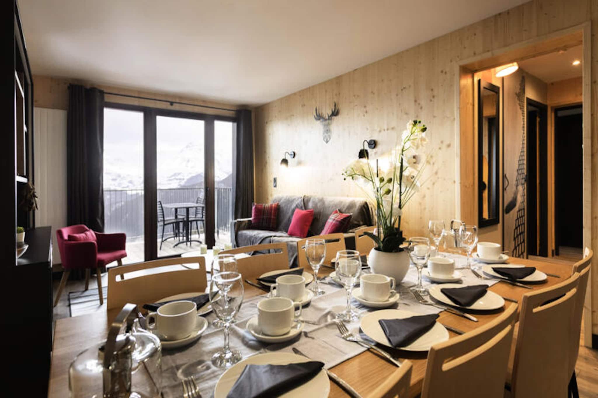Højt oppe i de majestætiske franske alper, hvor snedækkede tinder møder endeløse eventyr, inviterer Résidence Club MMV L'Etoile des Sybelles**** dig til at opleve en ferie som ingen anden. Dette miljøvenlige feriested åbner dørene i december 2020 og er perfekt placeret på snefronten. Det tilbyder uovertruffen ski-in/ski-out adgang til det vidtstrakte Les Sybelles-område. Uanset om du søger spændende nedkørsler eller rolige øjeblikke omgivet af alpin skønhed, er denne bolig din port til det hele. \n\nTræd indenfor og oplev en verden af ??komfort og charme. De rummelige lejligheder, der er lavet af modulære træklodser, udstråler en varm bjergstemning og har balkoner eller terrasser, der indrammer en betagende udsigt. Hver enhed er designet til familier og grupper og har et fuldt udstyret køkken, en hyggelig stue med en dobbelt sovesofa og flere soveværelser med fleksible sovemuligheder. Moderne faciliteter som Wi-Fi, opvarmet adgang til indendørs/udendørs pool og et Aquarelaxing-område sikrer afslapning efter en dag med eventyr. Resortet henvender sig også til familier med sine børneklubber for alderen 4 til 17 år, hvilket skaber et paradis for kammeratskab og sjov. \n\nLes Sybelles tilbyder mere end bare skiløb. Udforsk fem sjove zoner, herunder snowparks, boardercross og freeride-områder, eller prøv unikke aktiviteter som paragliding, hundeslædekørsel eller fatbiking. Til fritiden kan du nyde de nærliggende biografer, bowlingbaner, skøjtebaner og fitnesscentre. Det gågadebeskyttede resort, der har fået tildelt Famille Plus-prisen, garanterer en sikker og venlig atmosfære for alle aldre. \n\nUanset om du jagter adrenalin eller søger ro, leverer Résidence Club MMV L'Etoile des Sybelles**** en uforglemmelig alpin ferie. Lad bjergenes skønhed og varmen i denne bolig skabe minder, du vil værdsætte for evigt.
