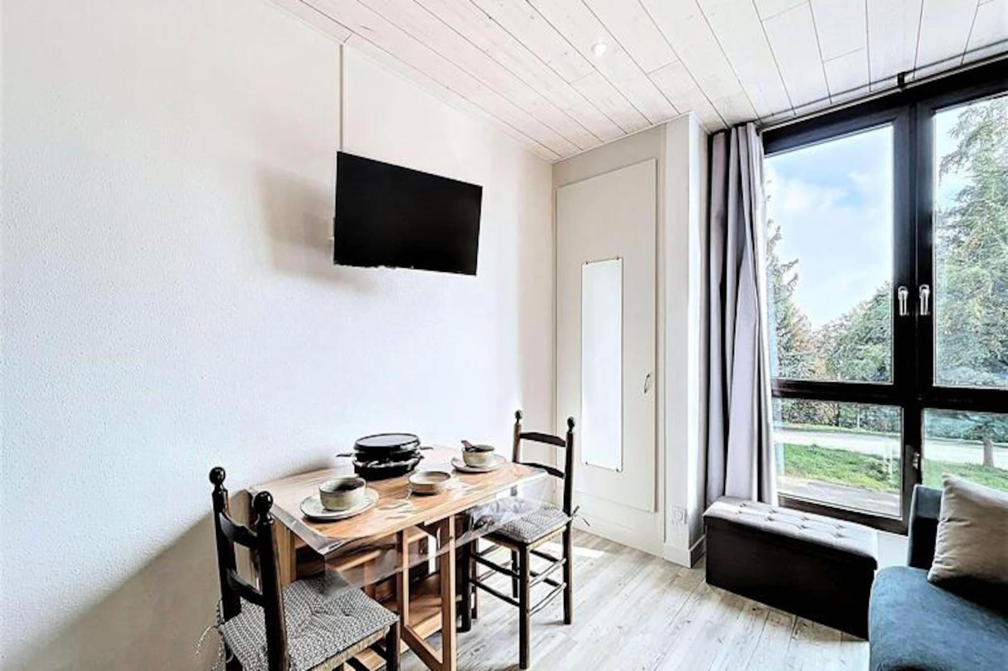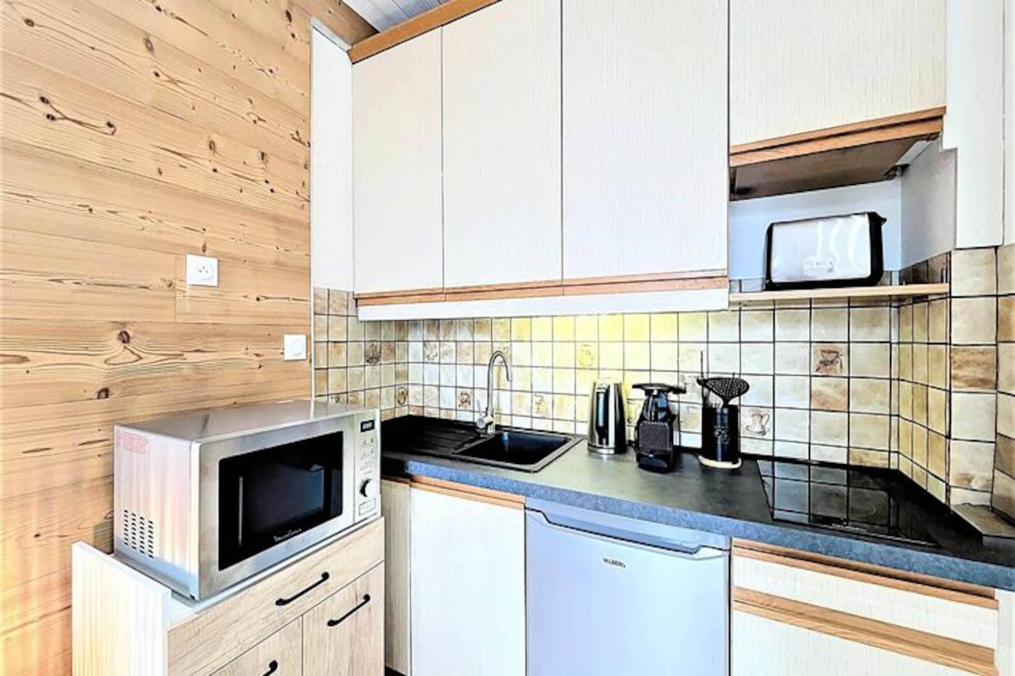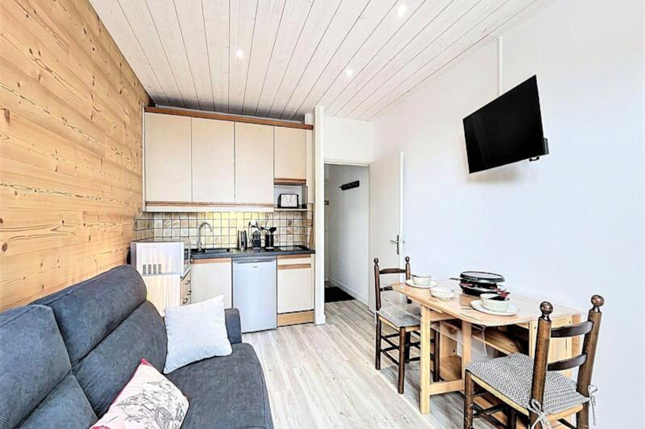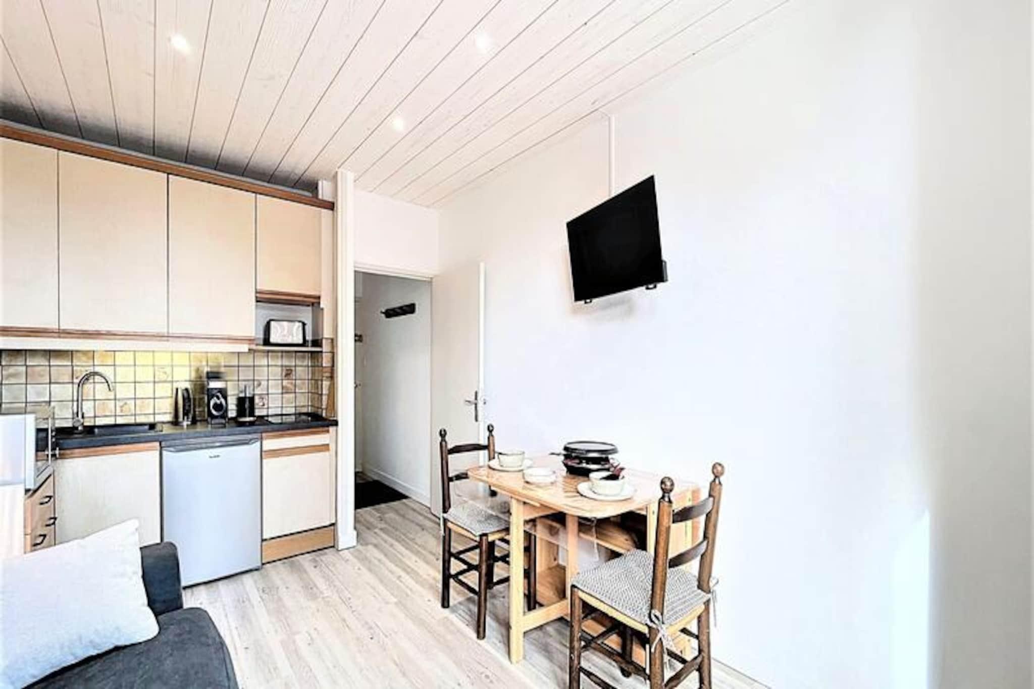 I det pulserende hjerte af feriestedet tilbyder denne charmerende studiolejlighed i Altaïr-residensen en uforglemmelig alpin flugt. Med sin uovertrufne ski-in/ski-out-beliggenhed træder du direkte ud på pisterne hver morgen, klar til at udforske de uberørte snedækkede stier. Residensen er perfekt beliggende i nærheden af ??butikker, restauranter og den berømte ESF-skiskole, hvilket gør den til et ideelt valg for par, der søger et bekvemt og hyggeligt tilflugtssted i bjergene. Udsigten over dalen fra denne studiolejlighed i stueetagen tilføjer et roligt præg til dit ophold og fordyber dig i de franske alpers skønhed. Studiolejligheden er blevet omhyggeligt renoveret for at skabe et komfortabelt og funktionelt rum. Den lyse opholdsstue har en 140x200 cm sovesofa, et fladskærms-tv og moderne møbler, der skaber en varm og indbydende atmosfære. Det veludstyrede tekøkken har keramiske kogeplader, en kombineret mikrobølgeovn/ovn, en Nespresso®-kaffemaskine og endda en raclette-grill til at nyde traditionelle alpine måltider. Det elegante badeværelse er udstyret med bruser, håndvask og toilet, hvilket sikrer alle de nødvendige faciliteter til et afslappende ophold. Gæsterne har også adgang til en opvarmet swimmingpool, perfekt til afslapning efter en dag på pisterne eller vandrestierne. Altaïr-residensen tilbyder praktiske faciliteter såsom elevator, skibokse på samme etage som lejligheden og parkering i nærheden. Uanset om du besøger lejligheden om vinteren for at stå på ski eller om sommeren for at vandre og opleve bjergeventyr, placerer denne beliggenhed dig i centrum af det hele. Med den ekstra mulighed for Wi-Fi og leje af sengelinned er dit ophold skræddersyet til dine behov. Vælg dette studie for dets uovertrufne beliggenhed, moderne komfort og løftet om en mindeværdig alpin ferie. Uanset om du snor dig gennem frisk puddersne eller nyder sommersolen, sikrer dette hyggelige tilflugtssted, at hvert øjeblik er uforglemmeligt.