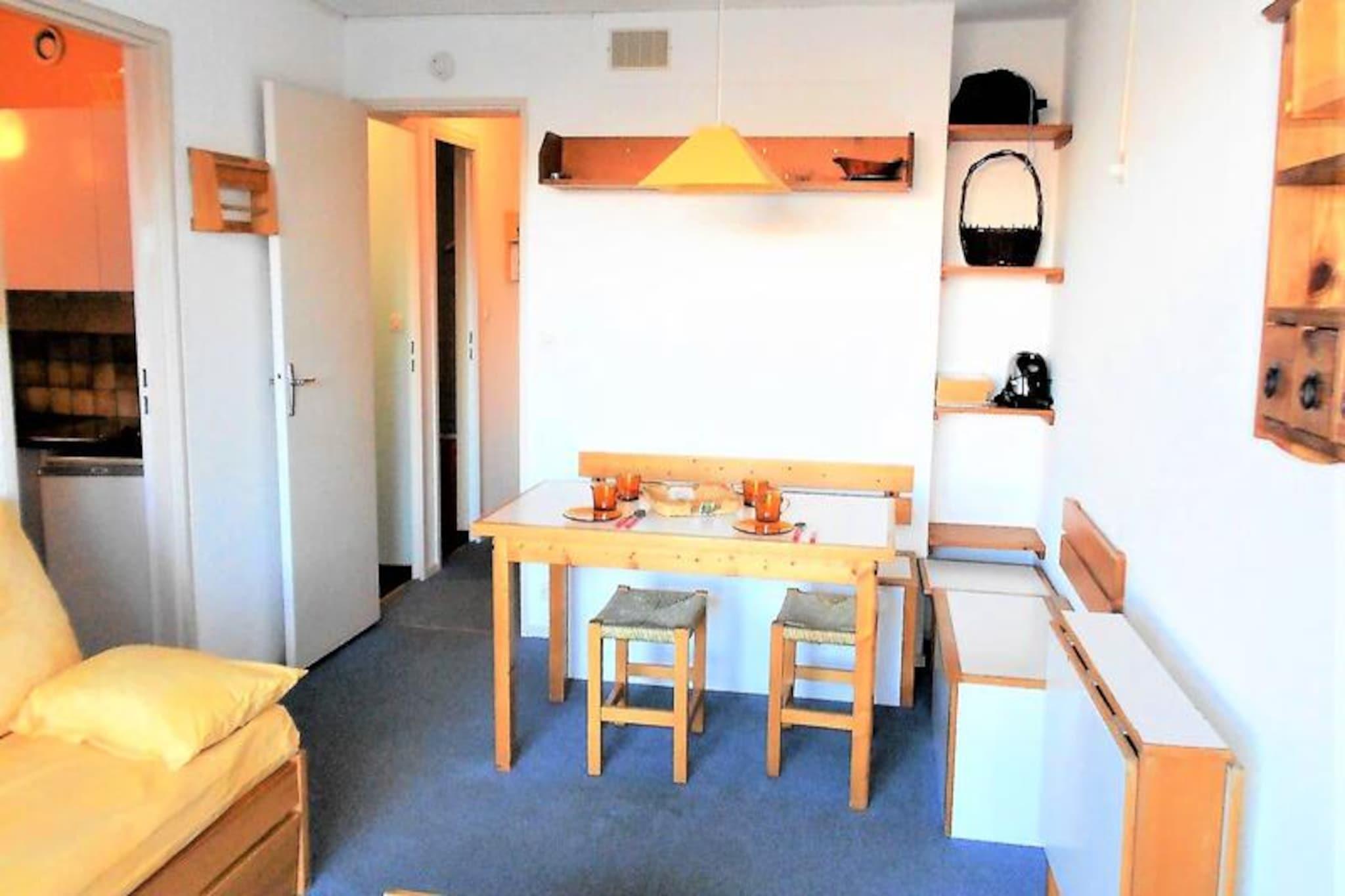 I den rolige, nedre del af resortet tilbyder denne miljøvenlige studiolejlighed i Résidence Phenix et roligt alpint tilflugtssted med moderne bekvemmeligheder. Beliggende kun 100 meter fra Milky Way-stoleliften er det en perfekt base for skientusiaster og familier, der søger nem adgang til pisterne. Boligen er problemfrit forbundet med en shoppingarkade, med en delikatesseforretning kun 10 meter væk og et supermarked kun 20 meter fra din dørtrin, hvilket sikrer, at alle fornødenheder er inden for rækkevidde. En gratis shuttlebus forbinder dig bekvemt til det øvre resort, ESF-skiskolen og snefronten, hvilket gør det til et ideelt sted for både begyndere og erfarne skiløbere. Dette 28 m² store studio, der ligger på tredje sal med elevatoradgang, har komfortabel plads til fire voksne og et barn. Den nordvendte balkon tilbyder en fantastisk udsigt over bjergene, hvilket skaber en fredelig kulisse for dit ophold. Indenfor har lejligheden en hyggelig sovealkove med køjesenge og en udtræksseng til et barn, adskilt af gardiner for ekstra privatliv. Opholdsstuen har en udtræksseng, et fjernsyn og et tekøkken udstyret med elektrisk kogeplade og mikrobølgeovn, perfekt til at tilberede måltider efter en dag på pisterne. Gæsterne har også adgang til en opvarmet swimmingpool, der tilføjer et strejf af afslapning til deres alpine eventyr. Familier vil sætte pris på den nærliggende legeplads og bygningens rolige atmosfære, mens praktiske faciliteter som et skirum, udendørs parkering og en kørestolsrampe sikrer et problemfrit ophold. Uanset om du er her for at stå på ski, udforske det charmerende feriested eller blot slappe af midt i det betagende bjerglandskab, tilbyder denne studiolejlighed den perfekte blanding af komfort og bekvemmelighed. Skab varige minder i denne fredelige alpine oase, hvor hver eneste detalje er designet til at forbedre din ferieoplevelse.