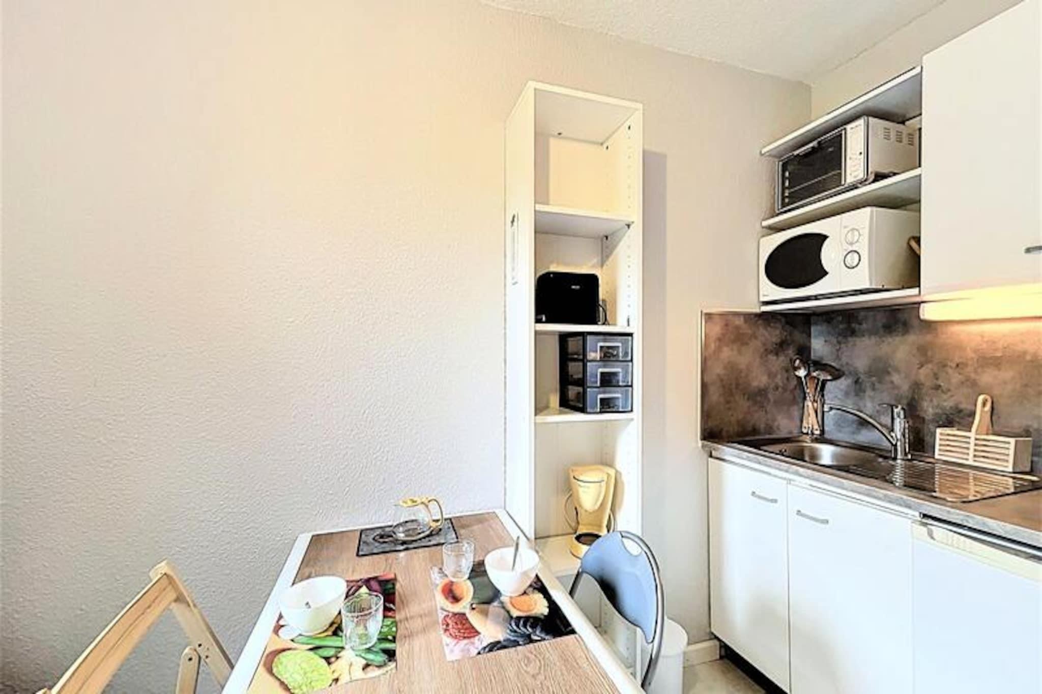 Højt over den charmerende alpelandsby Le Corbier tilbyder denne hyggelige studiolejlighed en intim oase for to, omgivet af de franske alpers betagende skønhed. Med sin sydvendte balkon vågner du op til en fantastisk udsigt over pisterne, perfekt til at nyde den friske bjergluft, inden du tager på en dag med eventyr. Uanset om du er her for spændingen ved skiløb eller roen i de alpine landskaber, placerer denne bolig dig i hjertet af det hele. Indenfor er det 14 m² store studio omhyggeligt designet til at maksimere komfort og funktionalitet. Tekøkkenet er fuldt udstyret med moderne apparater, herunder en keramisk kogeplade, miniovn, mikrobølgeovn og endda en raclettegrill for en ægte smag af regionen. Opholdsstuen har en komfortabel sovesofa og et fladskærms-tv, hvilket skaber et varmt og indbydende rum at slappe af i efter en dag på pisterne. Gæsterne har også adgang til en opvarmet swimmingpool, hvilket tilføjer et strejf af luksus til dit ophold. Beliggenheden er uovertruffen og tilbyder ski-in/ski-out bekvemmelighed og nærhed til vigtige faciliteter. Kun få skridt væk finder du ESF-skiskolen, dagpleje, restauranter og et minimarked. Et skirum i stueetagen sikrer, at dit udstyr altid er klar til det næste eventyr. Om sommeren forvandles området til et paradis for vandrere og naturelskere med stier, der fører til panoramaudsigter og fredfyldte alpine enge. Uanset om du søger en romantisk ferie eller et fredeligt tilflugtssted i bjergene, lover denne studiolejlighed i Le Corbier en uforglemmelig alpin oplevelse, der blander komfort, bekvemmelighed og magien i de franske alper.