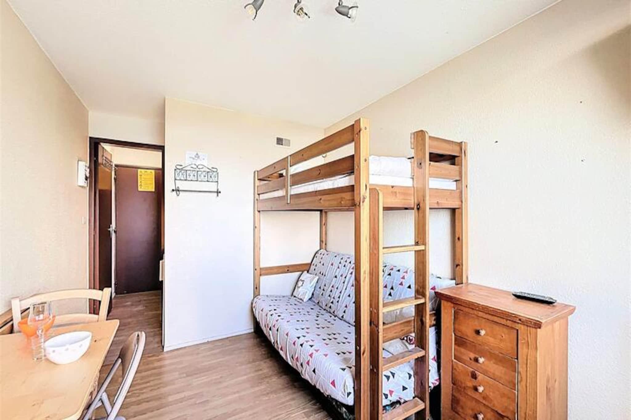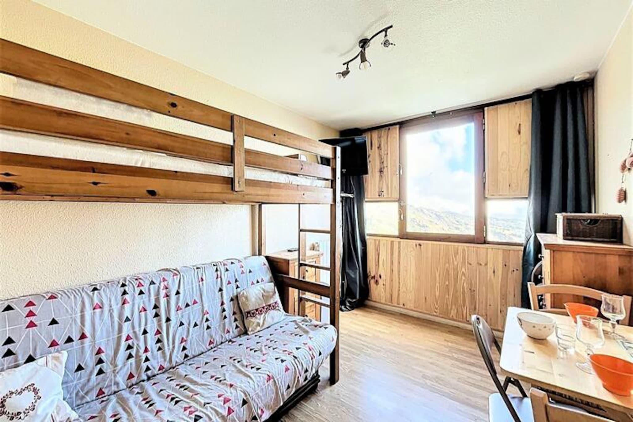 Højt over den charmerende alpelandsby Le Corbier tilbyder denne hyggelige studiolejlighed det perfekte tilflugtssted for par eller små familier, der søger en bjergferie. Med sin betagende udsigt over de omkringliggende tinder og direkte ski-in/ski-out-adgang er hvert øjeblik her omgivet af magien i de franske alper. Uanset om du vågner op til den friske bjergluft eller ser solen gå ned over de snedækkede pister, lover denne bolig et uforglemmeligt ophold. Studiolejligheden, der ligger på 9. sal i Vostok Residence, er omhyggeligt designet til at maksimere komfort og funktionalitet. Den har en opholdsstue med en sovesofa (Clic-Clac) og en enkelt mezzaninseng, et veludstyret tekøkken med moderne apparater, herunder en raclettegrill, og et brusebad med toilet. Gæsterne har også adgang til en opvarmet swimmingpool, perfekt til afslapning efter en dag på pisterne. Praktiske faciliteter såsom et skirum, udendørs parkering og tre elevatorer sikrer en problemfri oplevelse. Ejendommen er bekvemt beliggende ved foden af ??pisterne, kun få skridt fra ESF-skiskolen, en børnehave og en legeplads, hvilket gør den til et ideelt valg for familier. I nærheden finder du et minimarked, restauranter og en cateringvirksomhed, der sikrer, at alle dine behov bliver opfyldt uden at skulle rejse langt. I de varmere måneder forvandles området til et paradis for vandrere og naturelskere med stier, der snor sig gennem frodige alpeenge. Uanset om du er her for spændingen ved skiløb, bjergenes ro eller charmen ved Le Corbier, tilbyder denne studiolejlighed en indbydende base for dine alpine eventyr. Lad de franske alpers skønhed inspirere din næste ferie.