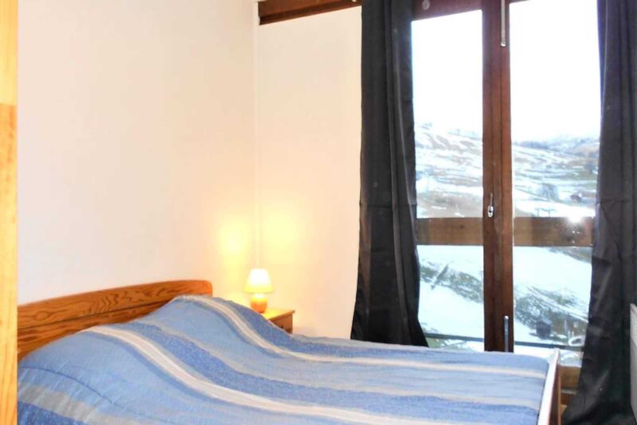 Højt over Tarentaise-dalen tilbyder denne charmerende lejlighed i Zodiaque Residence en førsteplads til den alpine magi i Les Arcs 1800. Fra din sydvendte balkon på 16. sal kan du nyde den storslåede udsigt over snefronten og den funklende opvarmede pool nedenfor. Uanset om du er her for at slentre gennem uberørte pister eller blot nyde den fredfyldte bjergatmosfære, placerer denne bolig dig i hjertet af det hele. Lejligheden på 40 m² er designet til op til seks gæster og er både hyggelig og funktionel. Stuen har en komfortabel sovesofa og et tv, mens det veludstyrede tekøkken inkluderer keramisk kogeplade, opvaskemaskine, køleskab og endda et fonduesæt til de typiske alpine aftener. To soveværelser tilbyder afslappende tilflugtssteder: det ene med køjesenge og det andet med en dobbeltseng. Et separat badeværelse og toilet sikrer bekvemmelighed for alle. Gæsterne har også gratis adgang til den opvarmede swimmingpool, perfekt til afslapning efter en dag på pisterne. Beliggenheden er uovertruffen. Med direkte adgang til skisportsstedet, et skirum i stueetagen og nærhed til ESF-skiskolen, minimarked, dagpleje og restauranter, er alt hvad du behøver kun få skridt væk. Familier vil sætte pris på den nærliggende legeplads og dagplejefaciliteter, mens eventyrere kan udforske det store Paradiski-område lige fra boligen. Uanset om du søger adrenalinpumpende dage på pisterne eller rolige aftener ved pejsen, tilbyder denne lejlighed den perfekte base for din alpine ferie. Skab uforglemmelige minder i hjertet af de franske alper, hvor hvert øjeblik er indrammet af snedækkede tinder og frisk bjergluft.