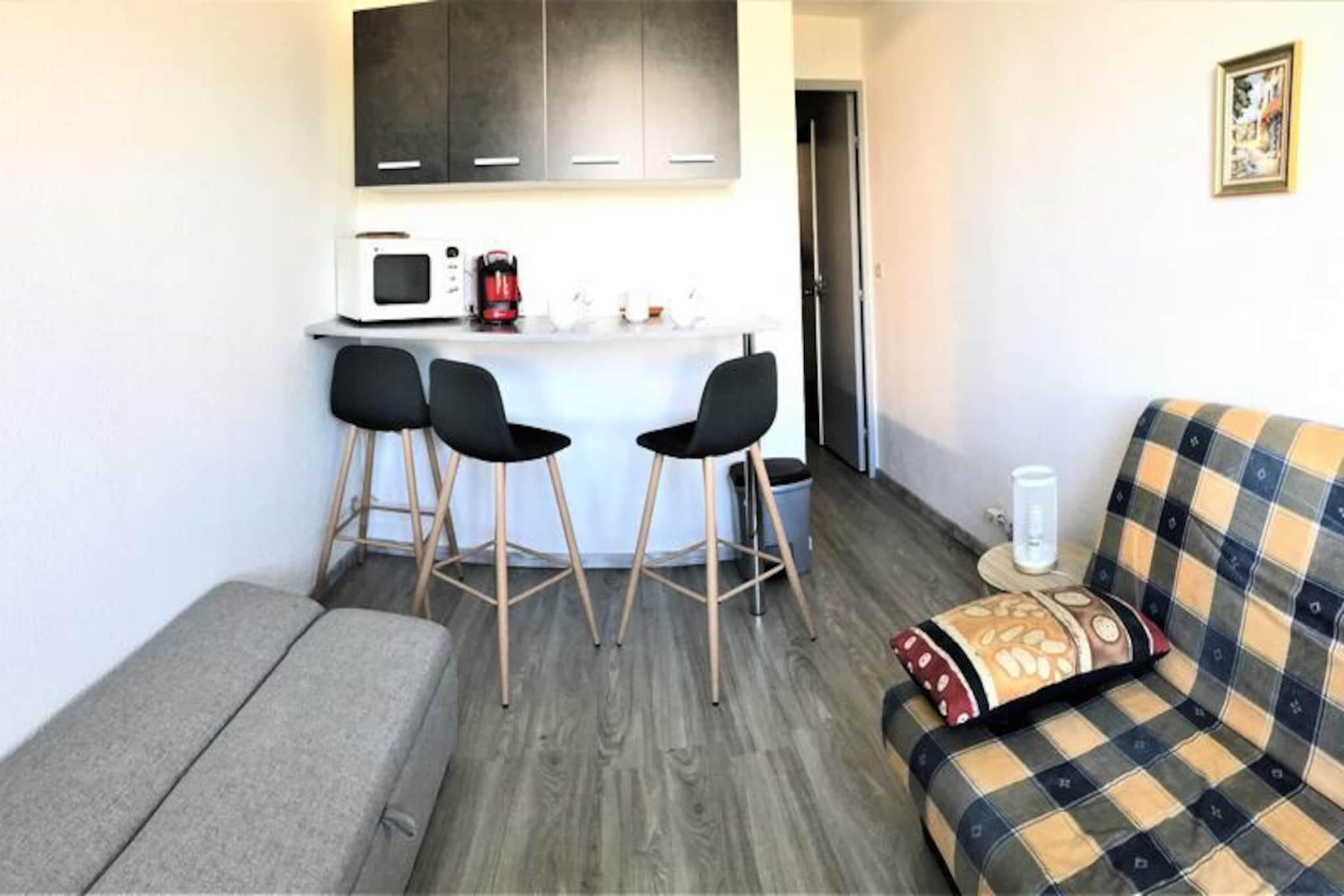 Vågn op til den fredfyldte skønhed i de franske alper i denne charmerende studiolejlighed, perfekt beliggende i Zodiaque Residence i Les Arcs 1800. Med betagende udsigt over bjergene fra sjette sal og direkte adgang til skiløb tilbyder dette hyggelige tilflugtssted en uovertruffen alpin oplevelse. Uanset om du er her for vintereventyr eller sommerferier, placerer beliggenheden dig få skridt fra snefronten, skilifter og et pulserende udvalg af lokale faciliteter. Boligen er ideel for par, der søger en rolig, men bekvem ferie midt i de majestætiske tinder i Tarentaise-dalen. \n\nIndvendigt er studiolejligheden blevet omhyggeligt renoveret for at tilbyde moderne komfort og stil. Den 16 m² store plads har en indbydende opholdsstue med en blød sovesofa, et fladskærms-tv og et veludstyret tekøkken med keramisk kogeplade, mikrobølgeovn og elektrisk kaffemaskine. Det elegante brusebad tilføjer et strejf af luksus og sikrer en forfriskende start på dagen. Selvom der ikke er nogen balkon, indrammer de østvendte vinduer en fantastisk udsigt over de omkringliggende bjerge og inviterer dig til at nyde den alpine atmosfære. Gæsterne har også adgang til en opvarmet swimmingpool, hvilket tilføjer en afslappende dimension til deres ophold. \n\nZodiaque Residence kan prale af bekvemme faciliteter såsom skibokse, udendørs parkering og nærhed til butikker, restauranter og ESF-skiskolen. Familier vil sætte pris på den nærliggende børnepasning og legeplads, mens eventyrere kan udforske det omfattende Paradiski-område. Om sommeren forvandles området til et paradis for vandreture, cykling og naturudflugter. \n\nUanset om du snor dig gennem uberørte pister eller soler dig i sommersolen, er dette studie din port til uforglemmelige alpine minder. Lad charmen ved Les Arcs 1800 og komforten i denne bolig skabe den perfekte kulisse for din bjergferie.