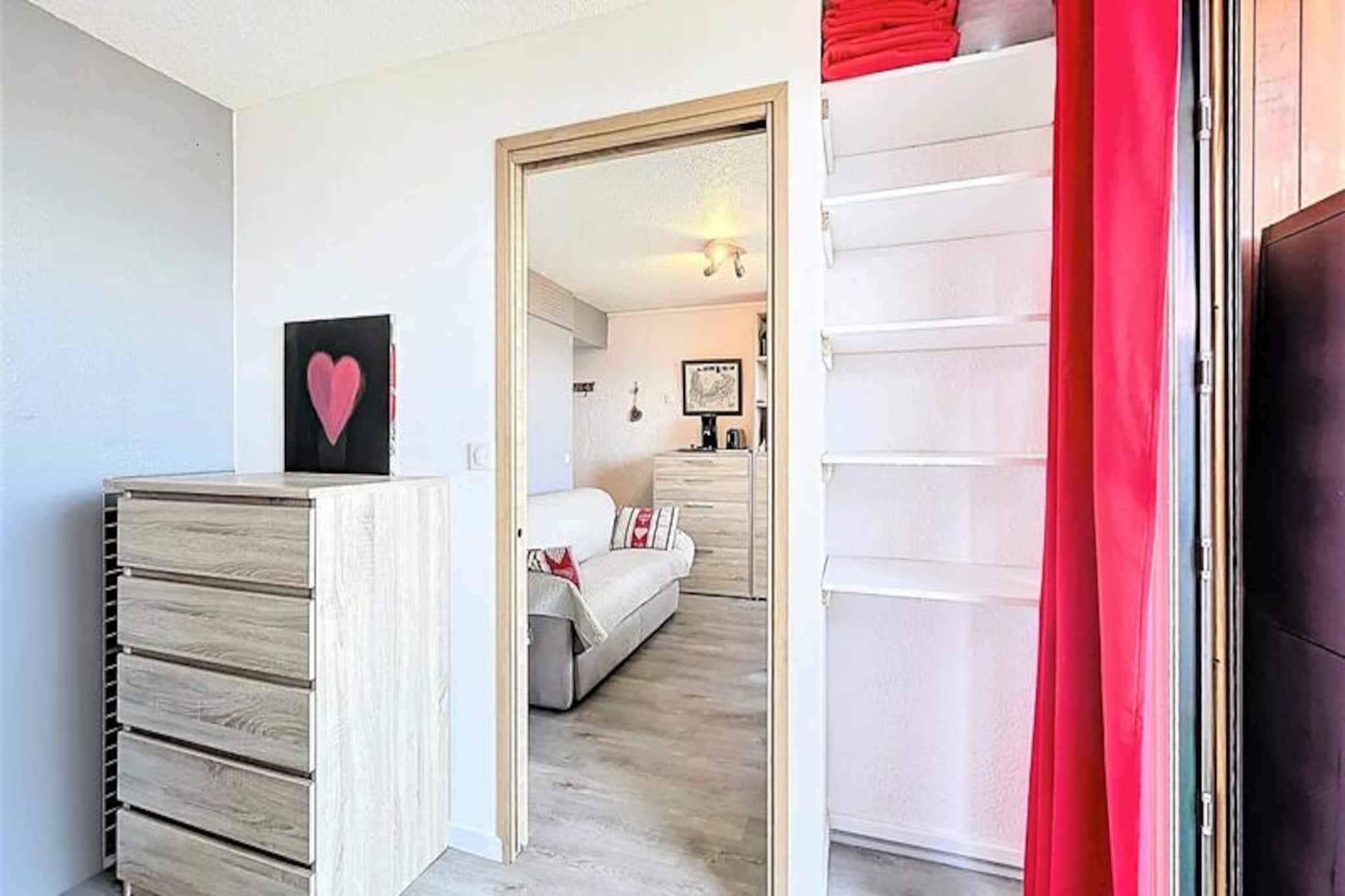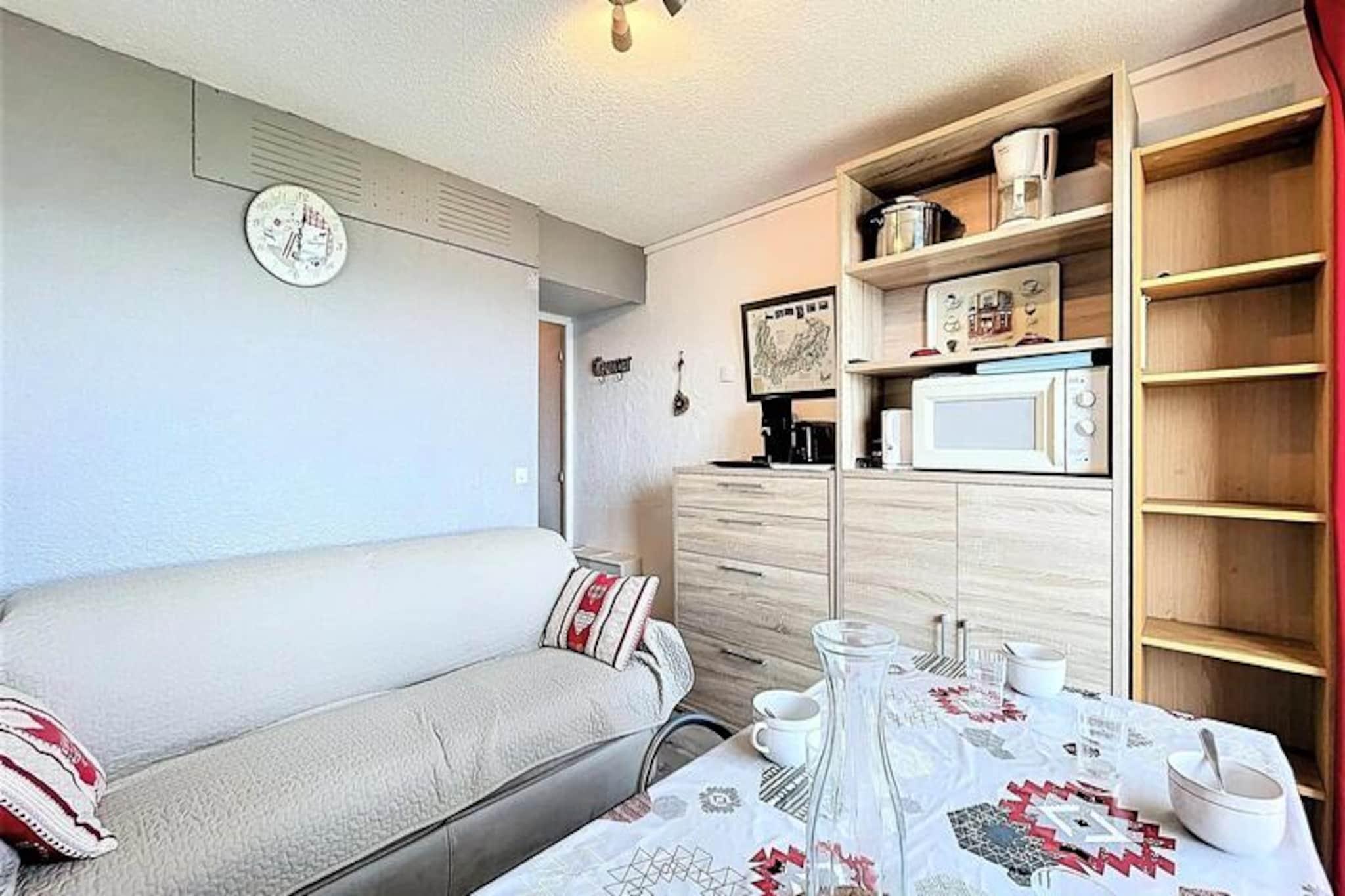 Højt over Tarentaise-dalen tilbyder denne hyggelige lejlighed i Vanguard Residence et perfekt alpint tilflugtssted med betagende udsigt over bjergene og direkte adgang til skiløb. Forestil dig at træde ud af din dør og glide direkte ud på pisterne, omgivet af den pulserende energi fra de franske alper. Uanset om du er her for spændingen ved skiløb eller roen i bjergene, er denne bolig din port til uforglemmelige eventyr. Lejligheden, der ligger på 18. sal, er omhyggeligt designet til op til fem gæster. Dens dobbelte balkon tilbyder en fantastisk panoramaudsigt, mens interiøret kombinerer moderne komfort med alpin charme. Stuen har en komfortabel sovesofa, et fladskærms-tv og et spisebord til fem, perfekt til hyggelige aftener efter en dag på pisterne. Tekøkkenet er veludstyret med fornødenheder som en Senseo-kaffemaskine, mikrobølgeovn og brødrister, så du nemt kan tilberede måltider. Soveværelset har en dobbeltseng og en enkelt køjeseng, hvilket gør det ideelt til familier eller små grupper. Et badeværelse med badekar og vaskemaskine gør dit ophold mere behageligt. Vanguard Residence kan også prale af fremragende faciliteter, herunder en opvarmet swimmingpool, skibokse og gratis Wi-Fi. En legeplads, dagpleje og ESF-skiskole ligger kun få skridt væk, hvilket gør dette til et enestående valg for familier. I nærheden finder du et minimarked og en cateringvirksomhed, der sikrer, at alle dine behov bliver opfyldt. Uanset om du søger spændende dage på pisterne eller rolige aftener under den alpine himmel, er denne lejlighed den perfekte base for din bjergferie. Lad de franske alpers skønhed inspirere dit næste eventyr.