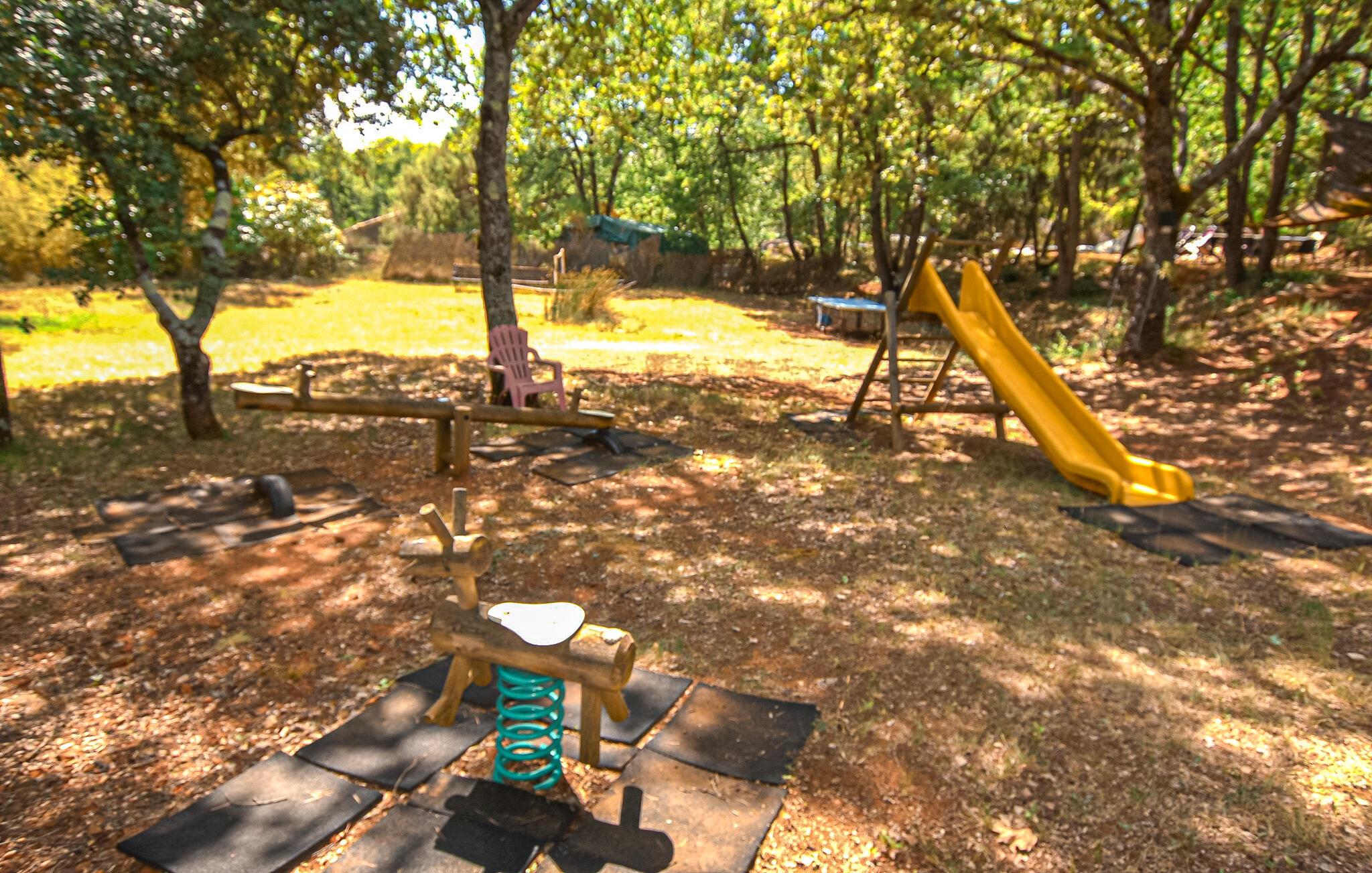 Tag nyt liv i den med en afslappende morgenmad på jeres lille, skyggefulde terrasse. Den store, fælles pool er en rolig oase, hvor I kan lytte til fårekyllingernes kvidren, mens I nyder en afslappende siesta på liggestolen. Lad børnene få nye venner på legepladsen, hvor de legende kan udforske naturen i træernes skygge.
