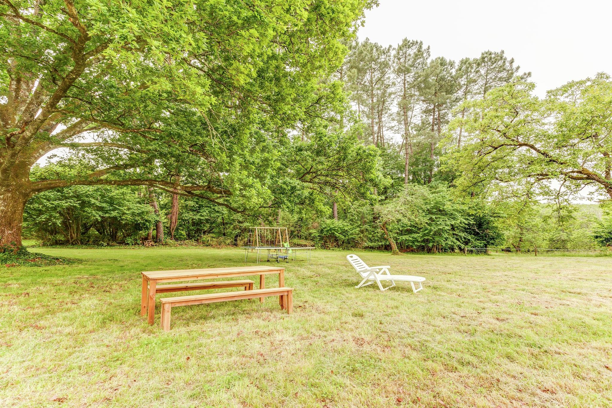 En 18 hektar stor privat skov venter på dig sammen med dette dejlige sommerhus nær Villefranche-du-Périgord (7 km). Efter en dejlig kørsel gennem kastanjeskoven bliver du mødt af en rummelig rydning ved siden af en eng med smuk udsigt over træpladerne, du er ankommet! Den hyggelige franske lounge med pejs inviterer dig til at sidde og læse en god bog. Den rummelige have er heller ikke dårlig. Ungene vil have en god tid her i den fabelagtige legeplads. Villefranche-du-Périgord er en smuk og hyggelig bjergrig landsby fra det 13. århundrede. Til dag er det overdækkede marked på pladsen brugt til at sælge smukke kastanjer og svampe. De omkringliggende skove er fyldt til randen med disse delikatesser. I nærheden finder du flere swimming-søer, nær Prats-du-Périgord (12 km), Cazals (8 km) og Frayssinet (10 km). Du kan nyde nogle dejlige bilture til f.eks. De charmerende byer Monpazier km), Villeréal (40 km) og Cahors (42 km). Her kan du beundre mange historiske bygninger som Valentrébroen, men selvfølgelig kan du også smage gennem byen eller nyde et glas vin på en af terrasserne.