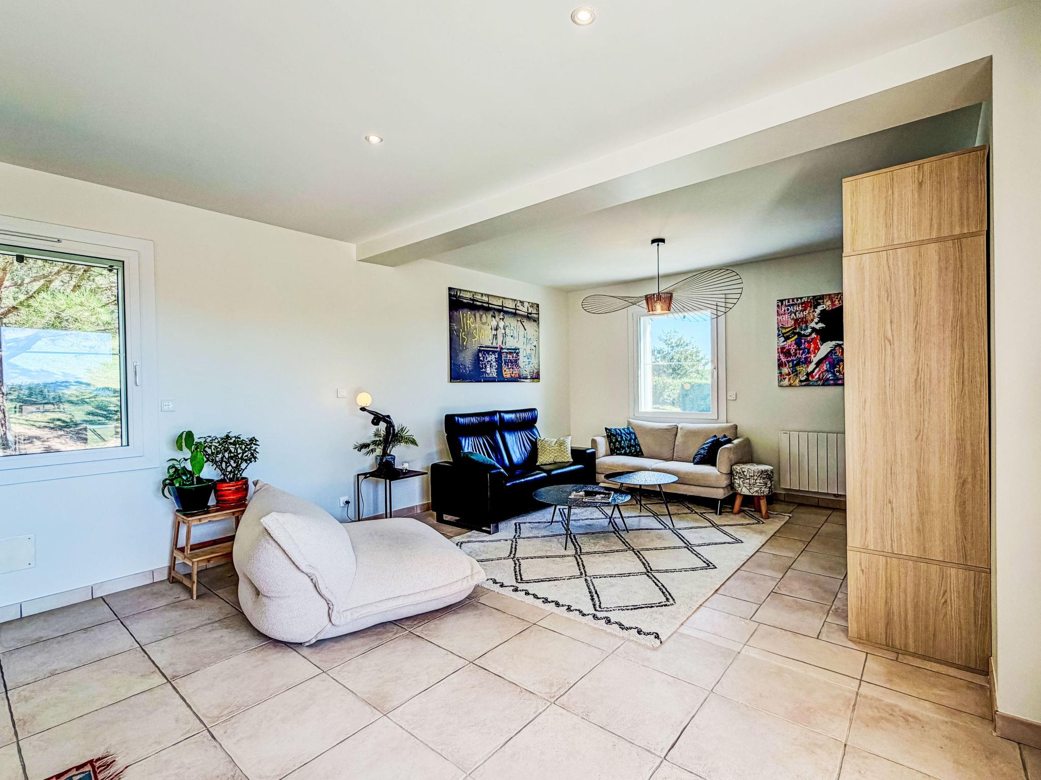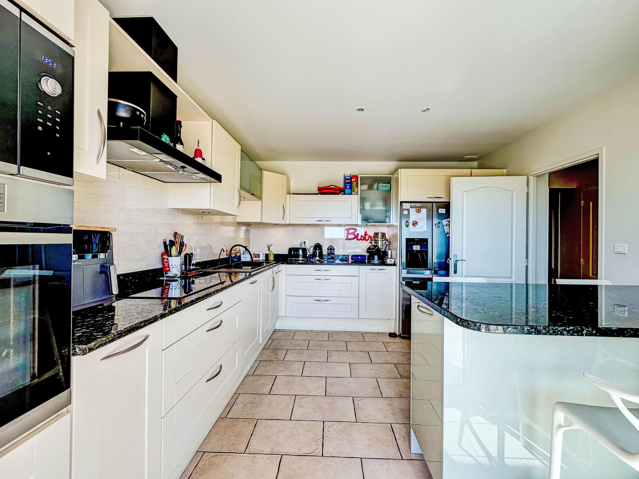 6-room villa 176 m2 on 3 levels. Beautiful and modern furnishings: living/dining room with TV (flat screen). Exit to the terrace. 2 rooms, each room with 1 french bed (160 cm, length 200 cm). Large kitchen (oven, 4 induction hot plates, toaster, kettle, microwave, freezer, electric coffee machine, Capsules for coffee machine (Nespresso) extra). Bathroom, shower, sep. WC. On the lower ground floor: playroom with TV (flat screen). Upper floor: 1 room with 1 french bed (160 cm, length 200 cm). 1 room with 1 french bed (140 cm, length 200 cm). 1 room with 2 beds (90 cm, length 190 cm). Shower, sep. WC. Large terrace 65 m2 partly roofed, south facing position. Terrace furniture, barbecue. Facilities: washing machine, dryer, iron, children's high chair, baby cot for up to 2 year olds. Internet (WiFi, free). Please note: non-smoking house. Maximum 1 pet/ dog allowed. Smoke alarm. Offer by a private individual according to Art. 155, IV of CGI.