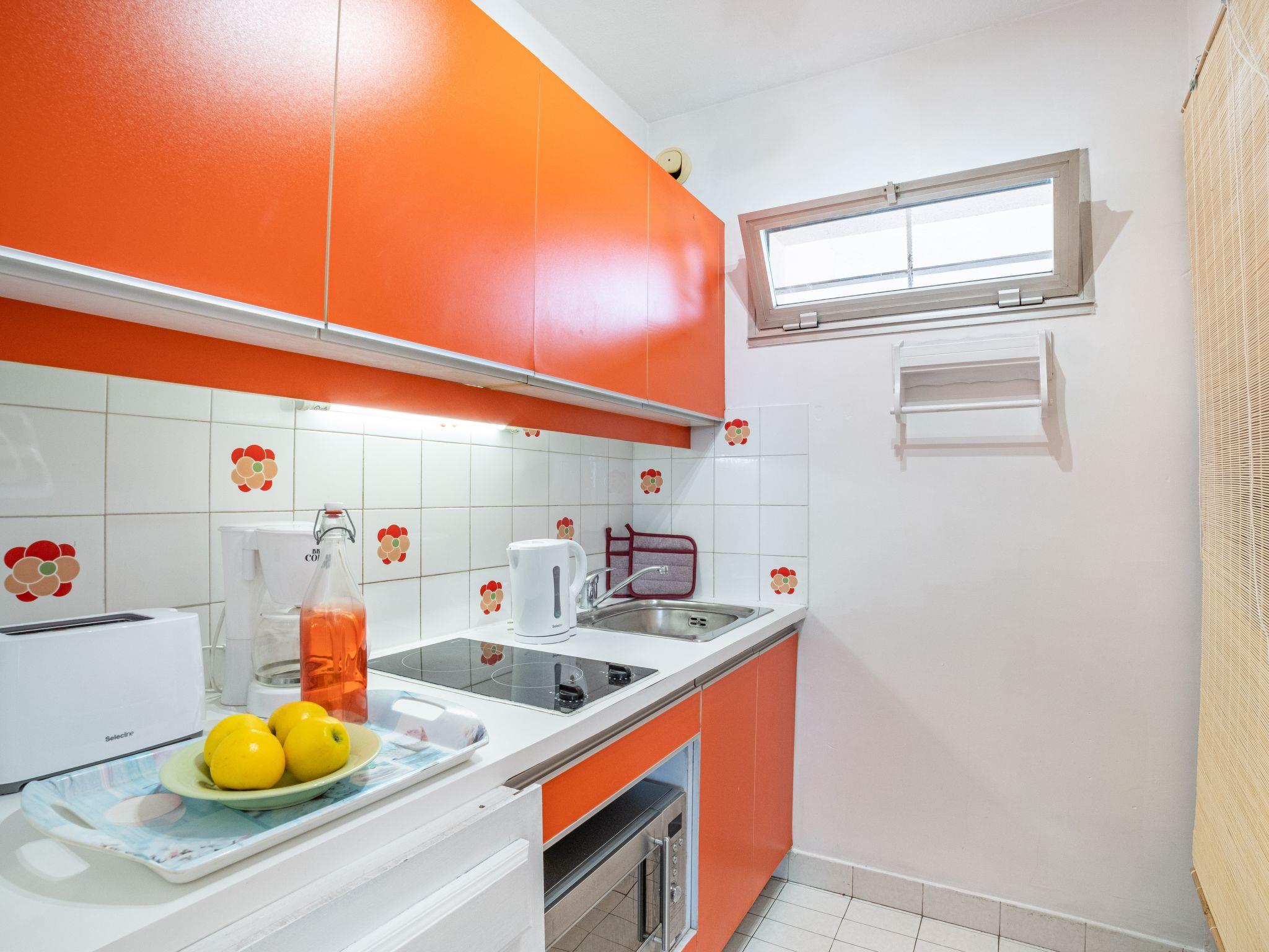 1-room studio 29 m2 on 3rd floor, south facing position. Comfortable and modern furnishings: living/dining room with 1 sofabed (140 cm, length 190 cm), TV (flat screen), heating stove. Exit to the veranda. Kitchen (oven, 2 ceramic glass hob hotplates, toaster, kettle, microwave, freezer, electric coffee machine). Bath/WC. Terrace 10 m2, south facing position. Terrace furniture. View of the sea and the garden. Facilities: washing machine, iron, hair dryer. Internet (WiFi, free). Parking space n 8 (1 car). Please note: non-smokers only. Maximum 1 pet/ dog allowed. Smoke alarm. Offer by a private individual according to Art. 155, IV of CGI. 0616100077333