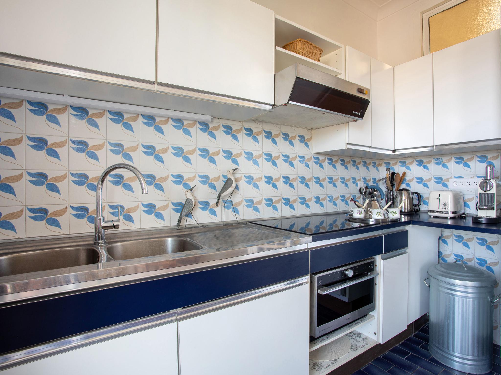1-room apartment 30 m2 on 2nd floor, south facing position. Bright, practical furnishings: living/dining room with 1 double sofabed (1 x 140 cm, length 190 cm), 1 fold-away bed (140 cm, length 190 cm), TV (flat screen). Exit to the terrace. Kitchen (oven, 3 ceramic glass hob hotplates, toaster, kettle, microwave, electric coffee machine). Exit to the terrace. Bath/WC. Heating. Large terrace 15 m2, south facing position. Terrace furniture. Beautiful view of the sea and the mountains. Facilities: washing machine, iron, hair dryer. Internet (WiFi, free). Garage space n 19 (1 car). Please note: non-smokers only, parking space for small car only. Maximum 1 pet/ dog allowed. Smoke alarm. Offer by a commercial proprietor according to Art. 155, IV, CGI 06161001118ZA