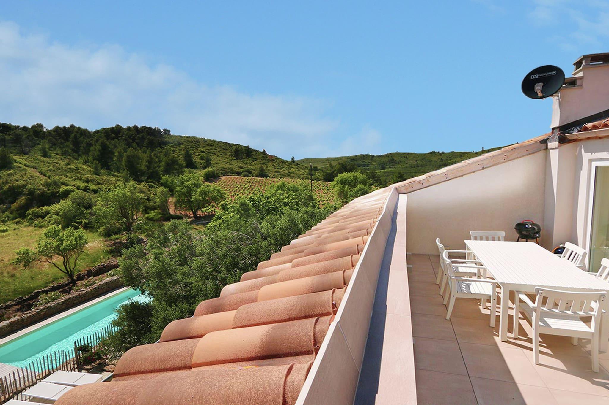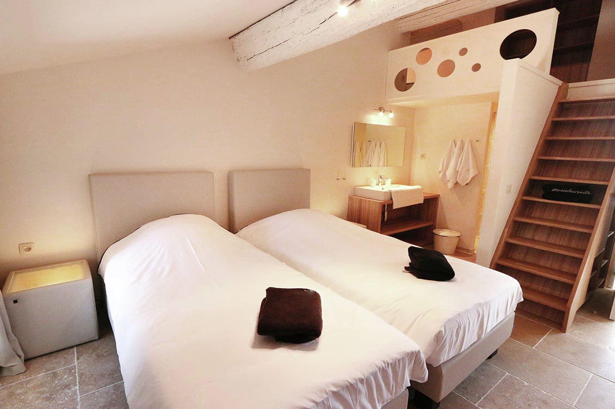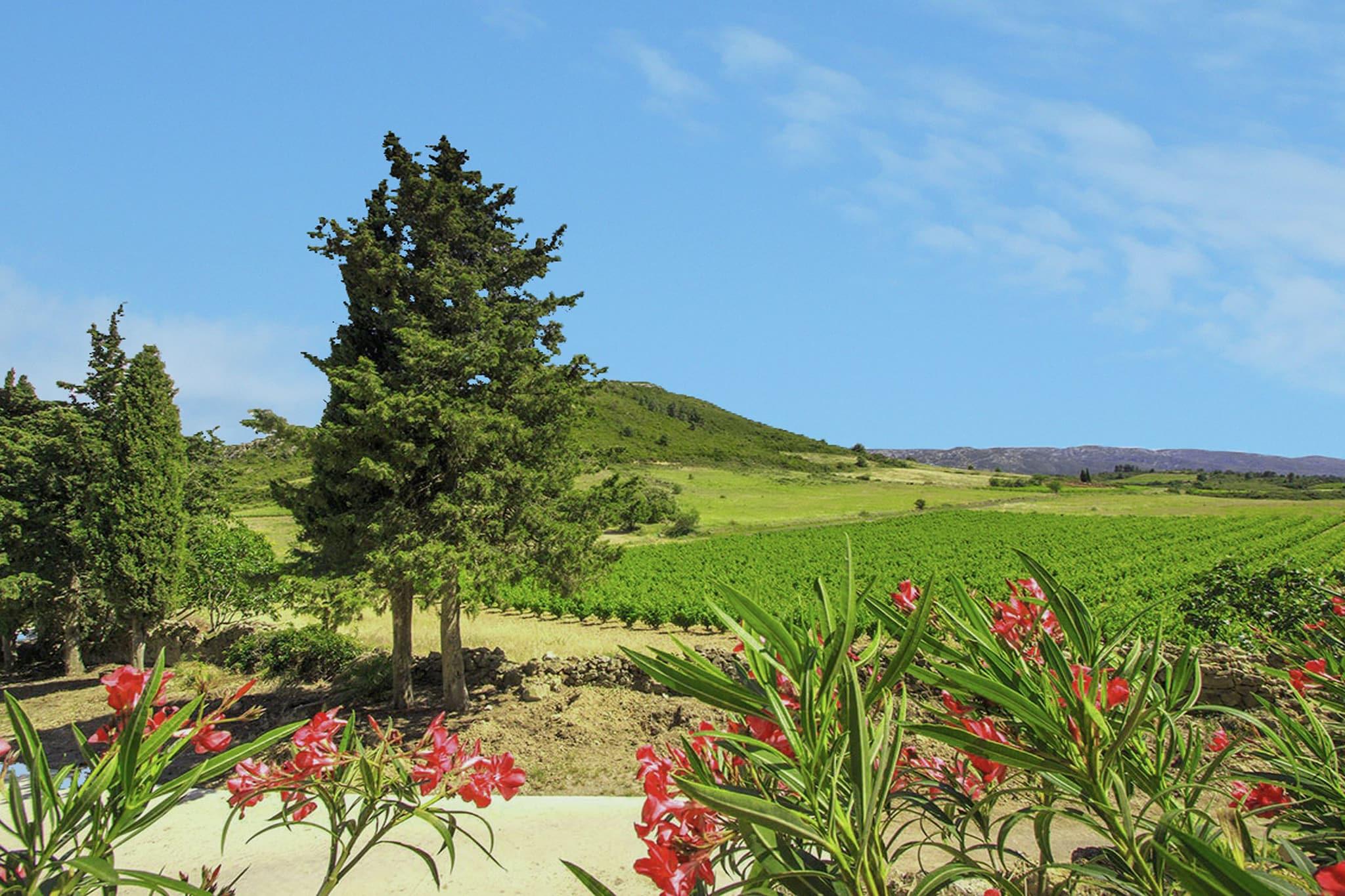 Beliggende i det fredelige Domaine Mandourelle i Villesèque-des-Corbières, er denne to-værelses lejlighed perfekt til en familie eller gruppe på seks. Med et boblebad og en opvarmet, fælles swimmingpool tilbyder det et afslappende oase omgivet af natur. Haven og terrassen giver dejlige steder at slappe af, mens liggestole inviterer dig til at nyde solen. Lokale retter venter kun 7,7 km væk på nærliggende restauranter, og daglige fornødenheder er let at finde i supermarkedet inden for samme afstand. Det åbne køkken er fuldt udstyret til hjemmelavede måltider, og spisepladsen byder på et hyggeligt sted at samles. Aircondition og varme sikrer komfort i hver sæson. Uanset om du nyder en bog i den fælles have eller beundrer udsigten fra tagterrassen, lover denne lejlighed et roligt ophold. Med Perpignan-Rivesaltes Lufthavn kun 36,4 km væk, er det en leg at komme hertil.