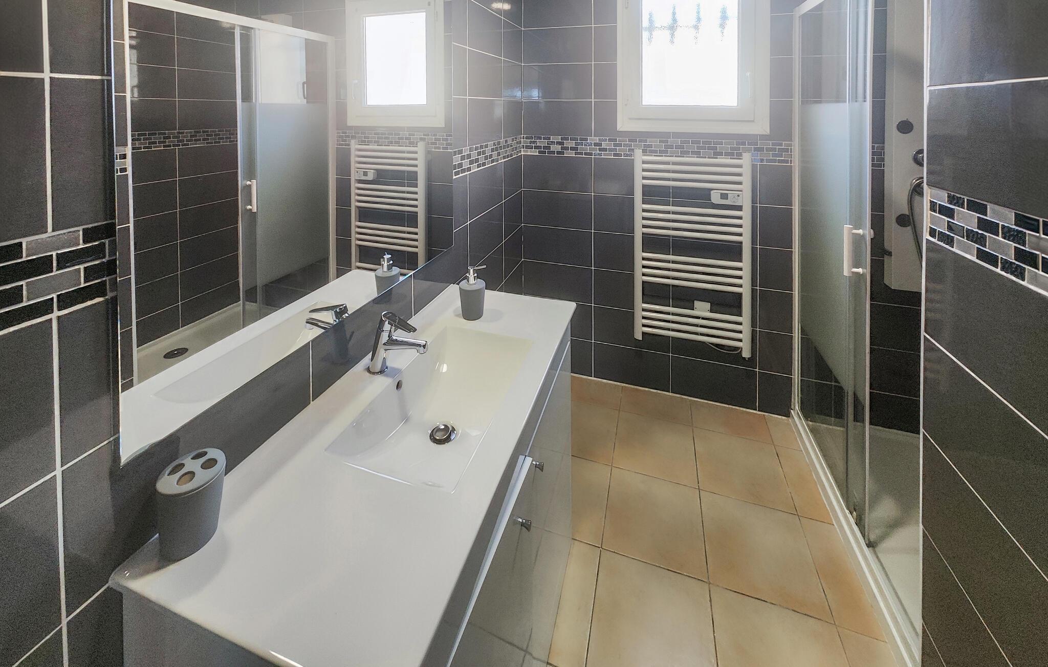 Velkommen til dette flotte hus, der ligger i Villespassans i hjertet af Languedoc, og hvor I får en idyllisk ramme om årets ferie med familien. Huset er flot indrettet med behagelige farveskalaer, et komfortabelt møblement og et veludstyret køkken, hvor I kan tage jer god tid og kræse om livretterne efter en aktiv feriedag. Nyd måltiderne ved spisebordet, hvis vejret er lidt gråt i det, og rund en dejlig dag af i sofahjørnet med en god film på tv'et.