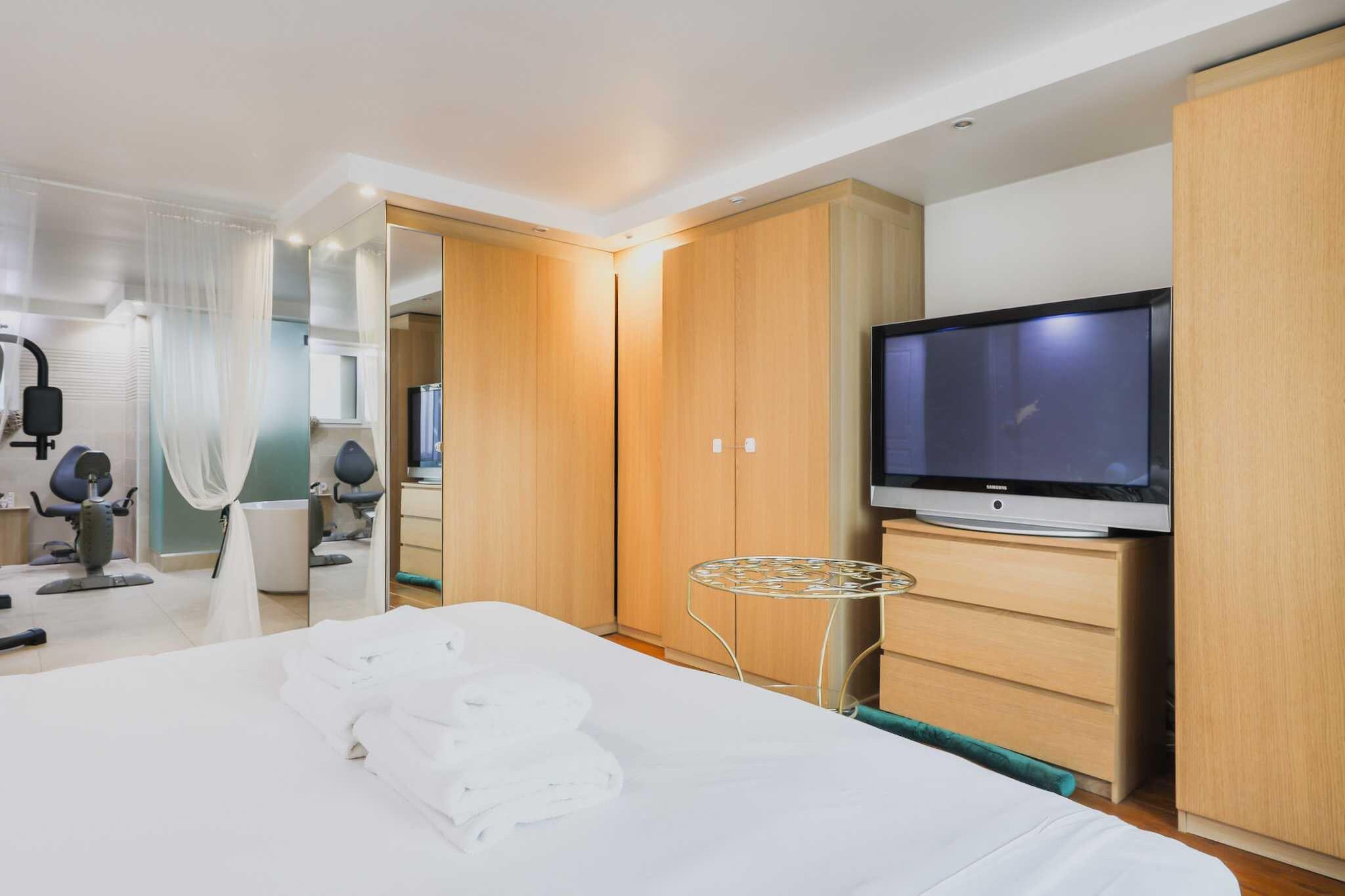 Stueetage: (Stue(Fjernsyn, spisebord), åbent køkken(kogeplade, elkedel, brødrister, emhætte, kaffemaskine, ovn, mikrobølgeovn, opvaskemaskine , køleskab, fryser, , ), Soveværelse med badeværelse(king size-seng, Fjernsyn, bruser, håndvask, toilet, fitnessapparater), Soveværelse med badeværelse(badekar, tremmeseng, håndvask, toilet, Queen Bed), Soveværelse med badeværelse(bruser, toilet, Queen Bed)) , , , Førstehjælp, Legeområde, kakkelovn, tørretumbler, badekar, vaskemaskine, varme, klimaanlæg, strygejern, føntørrer, legetøj, crib(free), Håndklæder/sengelinned (inkl.), , , Carbon monoxide detector, Cleaning Disinfection, Downtown, Enhanced cleaning practices, High touch surfaces disinfected, Long term stays allowed, Room-darkening shades, Town