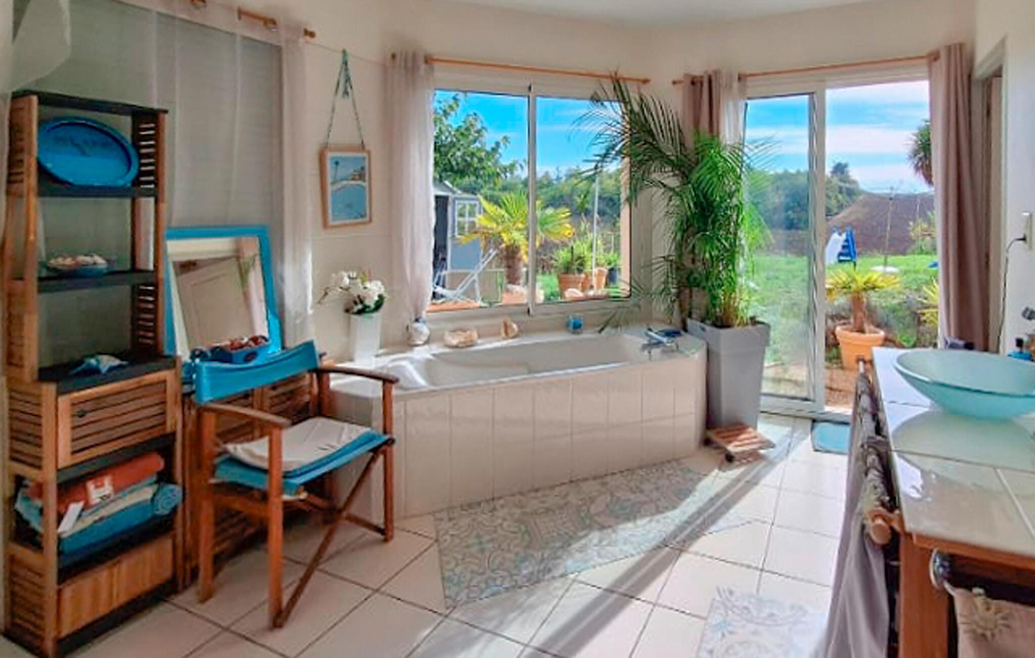 Velkommen til jeres rummelige og charmerende møblerede feriehus, hvor solnedgange, afslapning og kulinariske lækre retter venter jer overalt. Denne feriedestination er møbleret med stilfulde og komfortable møbler, der formidler en nautisk strandfølelse. De store vinduer oversvømmer huset med naturligt lys og lægger op til at snakke ved barstolen i det åbne køkken, mens I kan afslutte aftenen med at slappe af i sofaen med en god film. Uanset om I er i badekarret eller ved spisebordet, er I altid garanteret en smuk udsigt.
