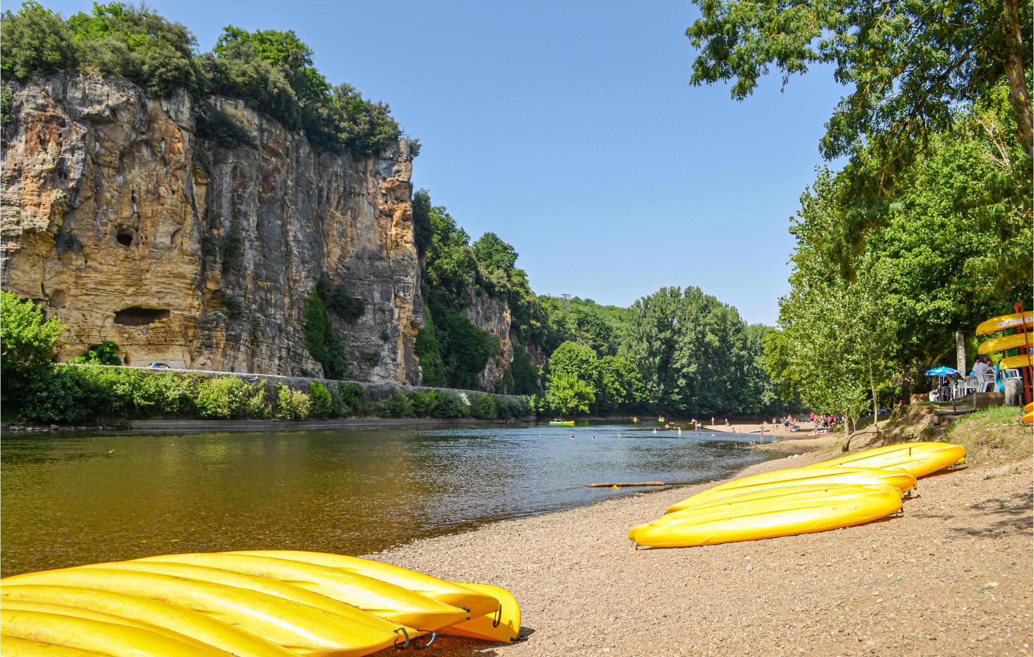 Kun få hundrede meter adskiller jer fra stranden ned til Dordogne-floden, hvor der også er kanoudlejning. Benyt muligheden for at opleveve Dordogne og det omkringliggende landskab, eller bare bade og slappe af i vandet.