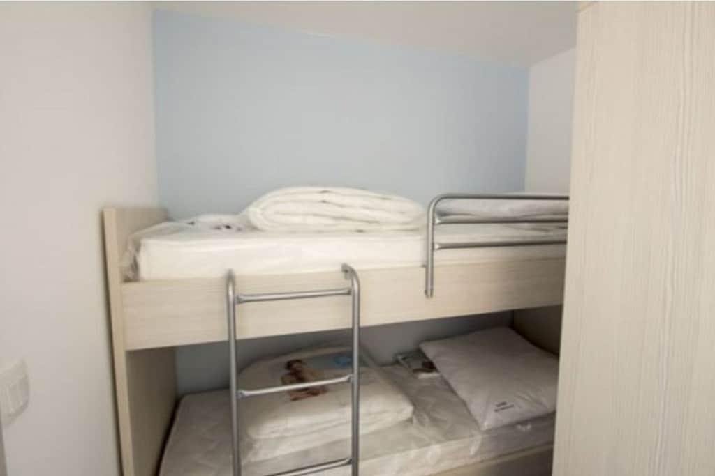 Stueetage: (Stue(Fjernsyn(antenne), Fjernsyn(parabol)), Køkken(elkedel, komfur, kaffemaskine, mikrobølgeovn, opvaskemaskine , køleskab), stue / spisestue(dobbeltsovesofa, Fjernsyn(digital), spisebord), soveværelse(, , dobbeltseng, Fjernsyn), Børneværelse(, køjeseng), badeværelse(, toilet, bruser, håndvask), guest toilet(, toilet, håndvask)) , , garage, Internetadgang, Internetadgang, vaskemaskine, balkon(havemøbler), varme, parkering, trappegitter, tørreskab, Alarm
