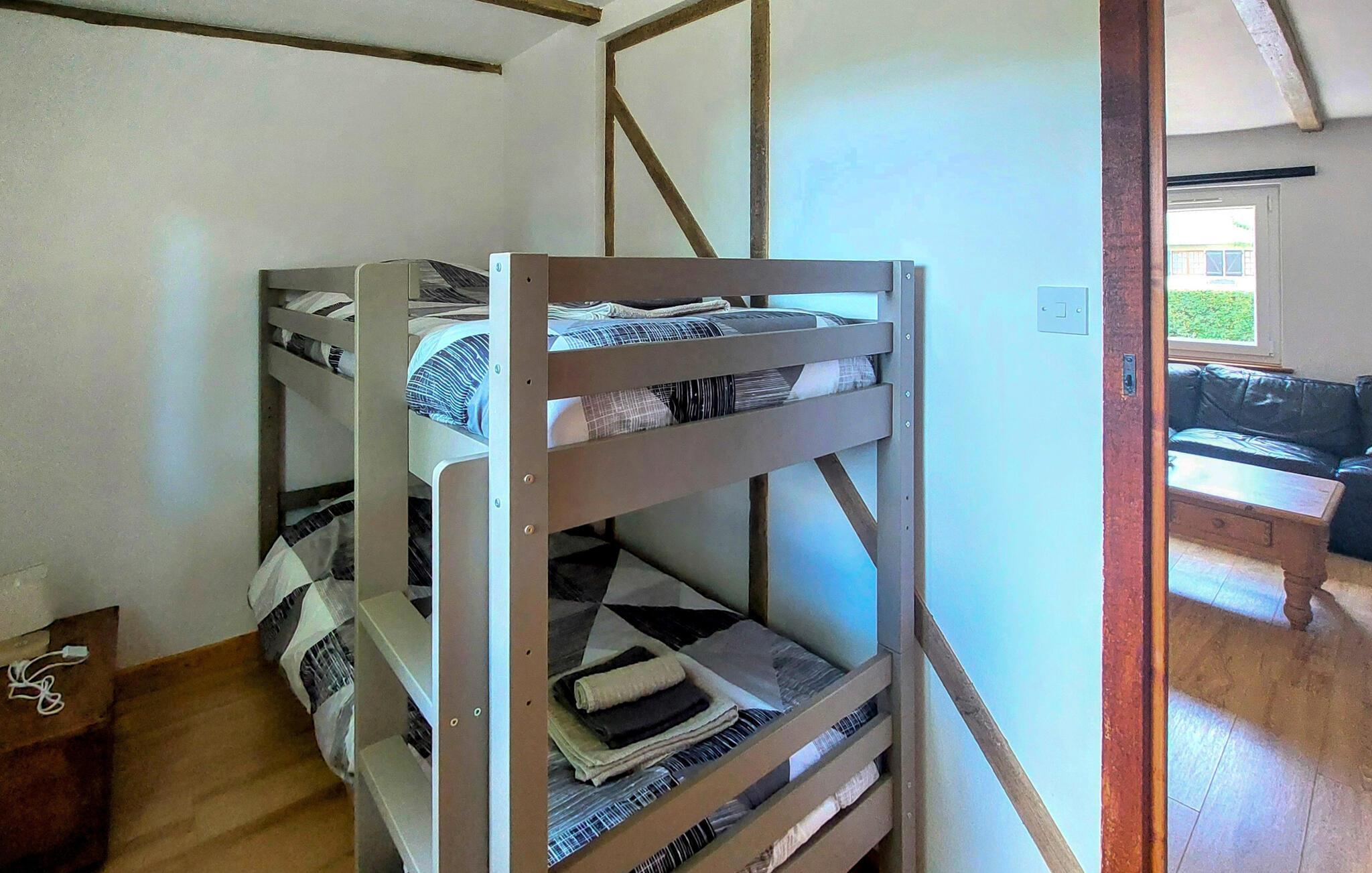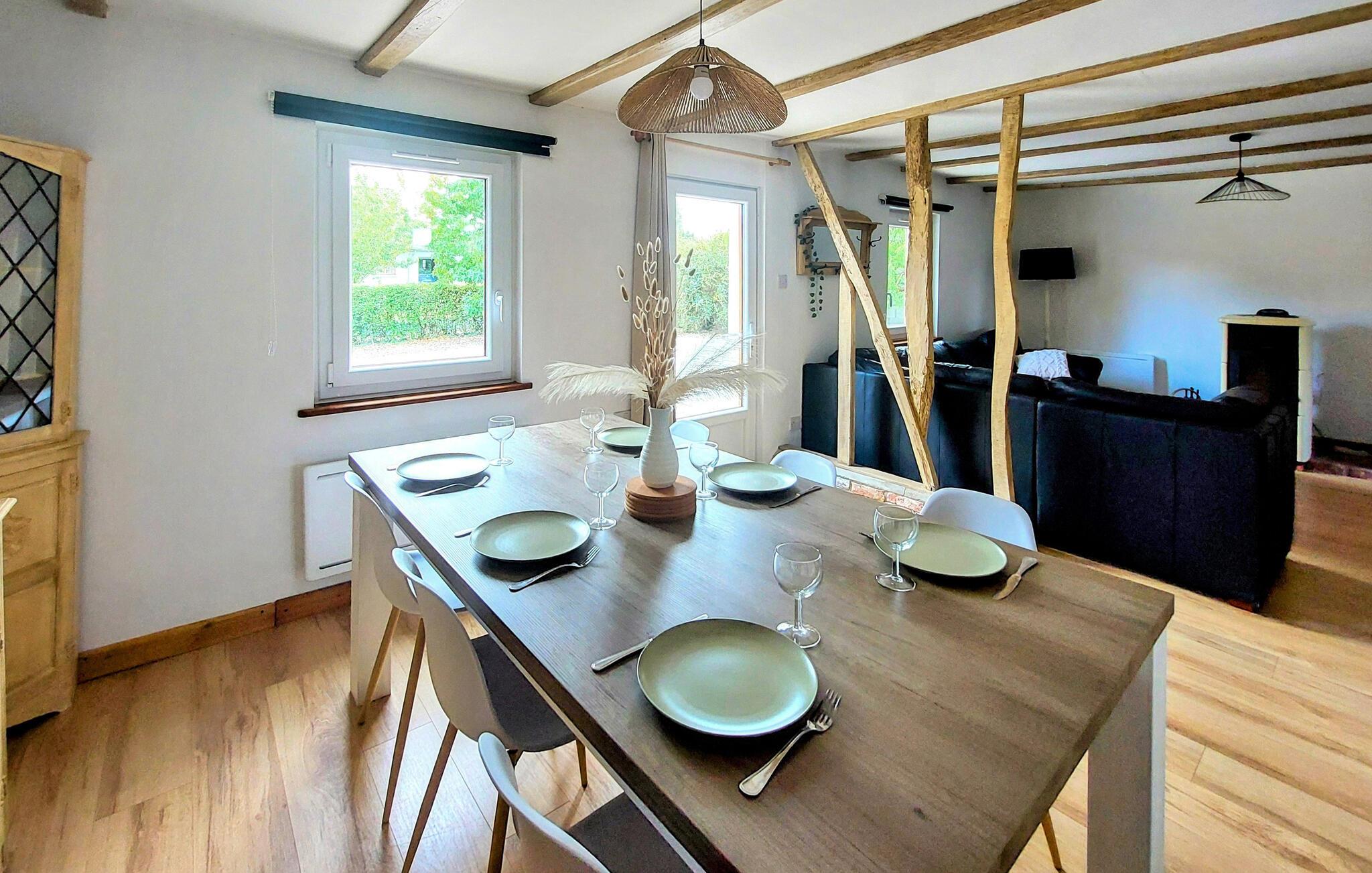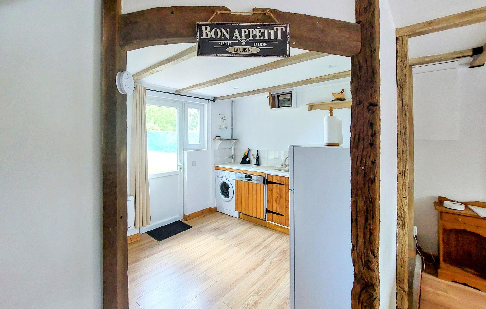 Dette omhyggeligt restaurerede landsted fra det 18. århundrede har et lyst og kærligt møbleret interiør, hvor en charmerende blanding af originale træbjælker, moderne møbler og rustikke detaljer skaber en varm og hyggelig atmosfære. Dæk op til lækre måltider ved spisebordet, planlæg jeres aktiviteter sammen og sæt jer til rette med et brætspil efter en begivenhedsrig dag.