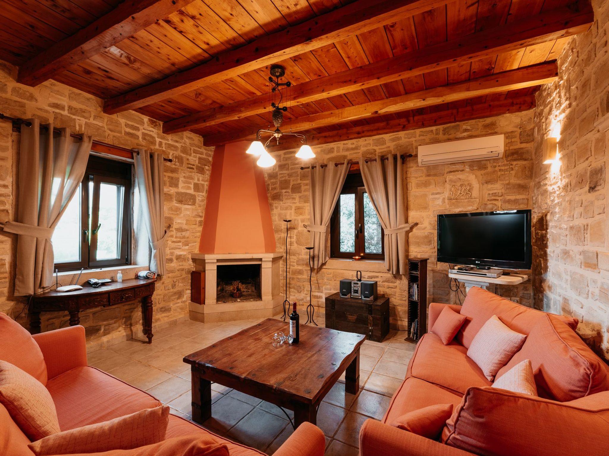 The villa has 3 bedrooms and 2 bathrooms and is tastefully furnished and equipped to a high standard. The unique living atmosphere created by the solid stone construction is enchanting. The villa offers a high level of living comfort and is also a cosy holiday destination in winter thanks to the underfloor heating. The open fireplace invites you to spend cosy evenings in the winter months, where the focus is on comfort, as the air temperatures are still very pleasant even in the winter months. The property has a 40 square metre pool with a children's pool. The terraces are equipped with beautiful garden furniture. There is a small library with books and a stereo system as well as a satellite TV with approx. 50 German channels. INTERNET CONNECTION WIFI is free, but password protected to avoid 'abuse' by children. Over the last few years, Villa Olympia has gained many regular guests who are always happy to return. The house is ideal for families, but is also suitable for small groups who want to spend an active holiday on Crete, such as cyclists, hikers or triathletes. The location is also ideal for those interested in culture, as all areas of the island can be reached within a day trip. Beautiful beaches can be reached in just a few minutes.