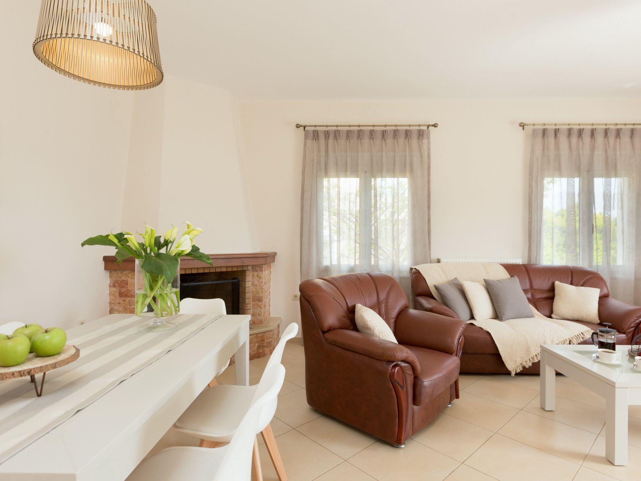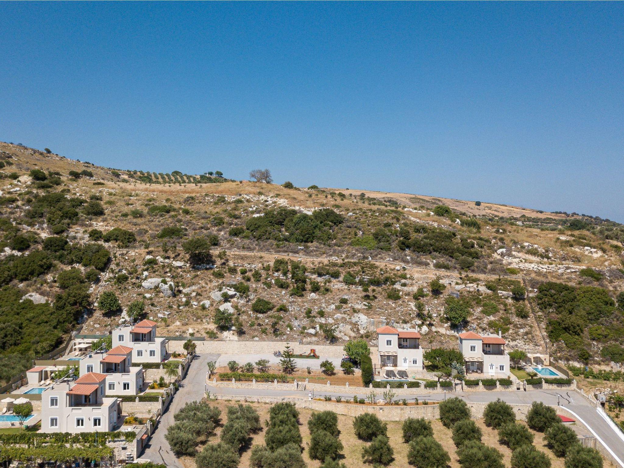 Eros Villa is a convenient three bedroom villa ideal for family vacation, nature activities and calm away from everything, but at the same time, being near to Rethymno town and the beach. Eros Villa is holding the key to unlock a truly hospitality and authentic Cretan experience with your family or friends. Discover the absolute carelessness and relaxation you desire in this spacious clean villa with pool and great views of the olive groves, gazing the stunning countryside and Cretan Sea. Entering Eros Villa you will find an open plan living area that offers direct access to the pool terrace, with a living room and an open fireplace, as well as a practical and fully equipped kitchen with dining table. The ground floor includes a twin bedroom and a bathroom, while a few stairs upwards there are the two remaining bedrooms of the villa with a balcony, and a family bathroom. Cool and shady inside, outside there is a lovely pergola with BBQ and pool terrace opened to amazing views, equipped with sun beds and umbrellas, offering ample opportunity for all day long to sunbathing and relaxing. The kid’s playground and kid’s pool are great to keep the little members of the family entertained, while you can finally unwind sitting with your favorite book, after spending a busy day on the beaches and colorful backstreets of Rethymno’s Old Town.
