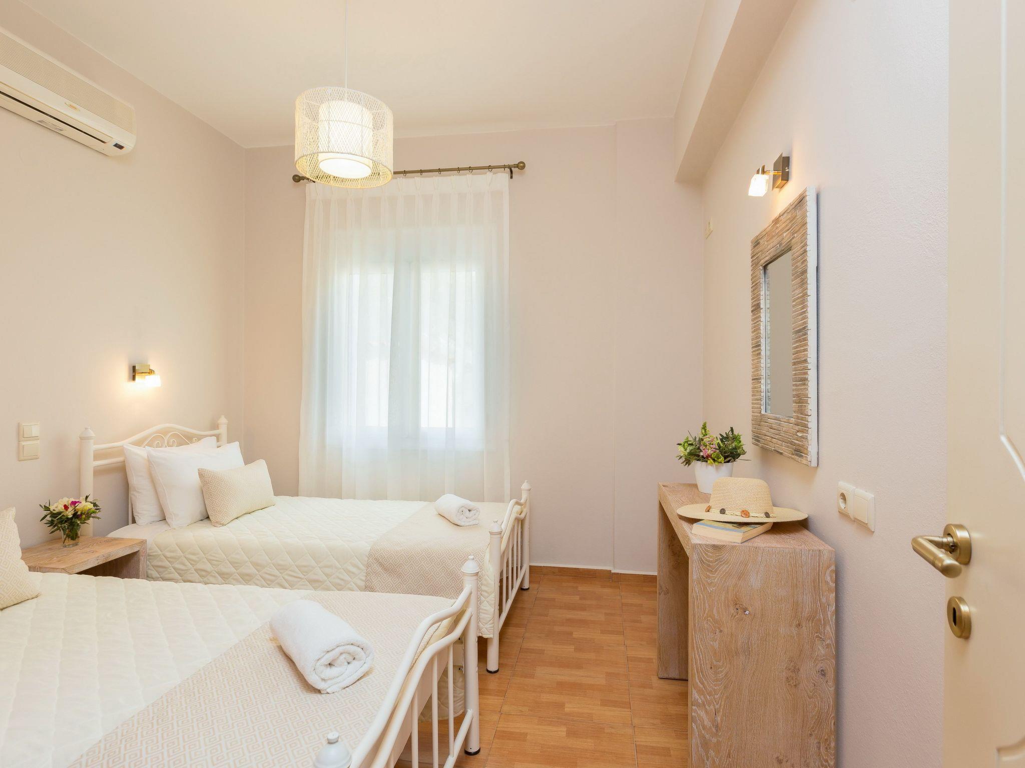 Eros Villa is set at a privileged spot of Agia Triada, a serene village perched on a hillside on North Crete with an unlimited and a panoramic view of the Cretan sea, about 10 km from the old historical town of Rethymno and 3 km from the nearest sandy beach of Adele (Adelianos Kampos). Near the villa you can find grocery shop, coffee shop and bakery. Eros Villa is part of “Agios Antonios Villa Complex”, built in tranquil area full of olive groves, near the historic Arkadi Monastery and the ancient city of Eletherna and Museum. The homonymous Agios Antonios Gorge (or Patsou Gorge) starts just 800 meters away, with its water gathered in the picturestque wetland of Potami, located at the foot of Psiloritis Mountain (Ida). The Venetian Harbour of Rethymno, is the ideal place to enjoy fresh fish; Platia Tavern belongs to the villa owner and stand out for the delicious local recipes, such as the famous ntakos salad and apaki.