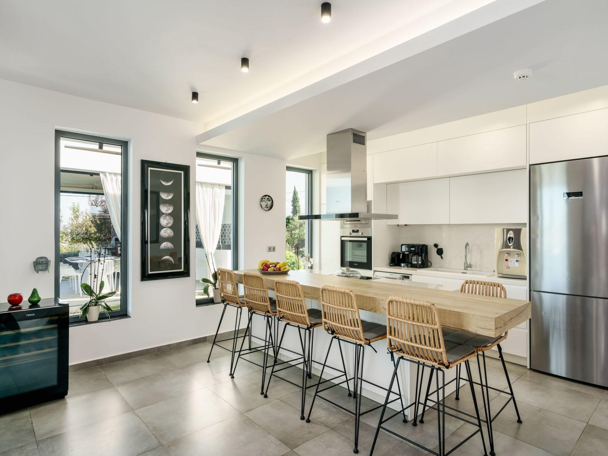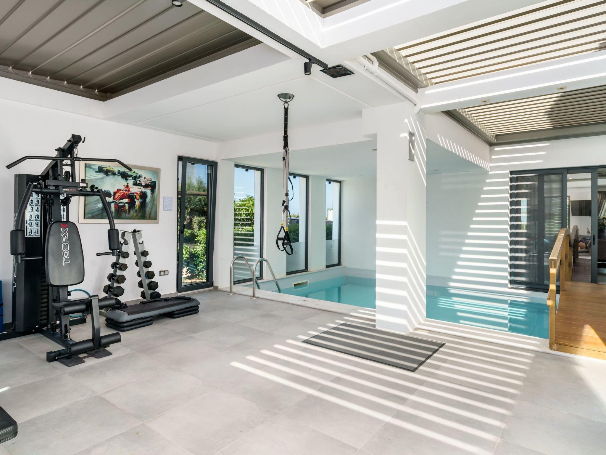 Perfect for families or groups, this modern 4-bedroom villa offers panoramic sea and mountain views, a private infinity pool, an indoor heated pool and luxurious amenities both inside and out.