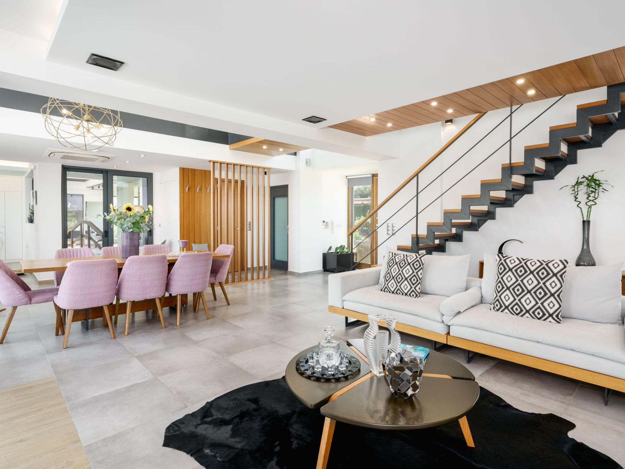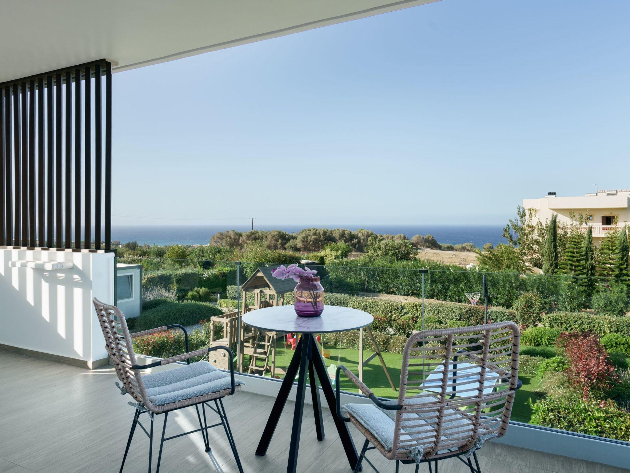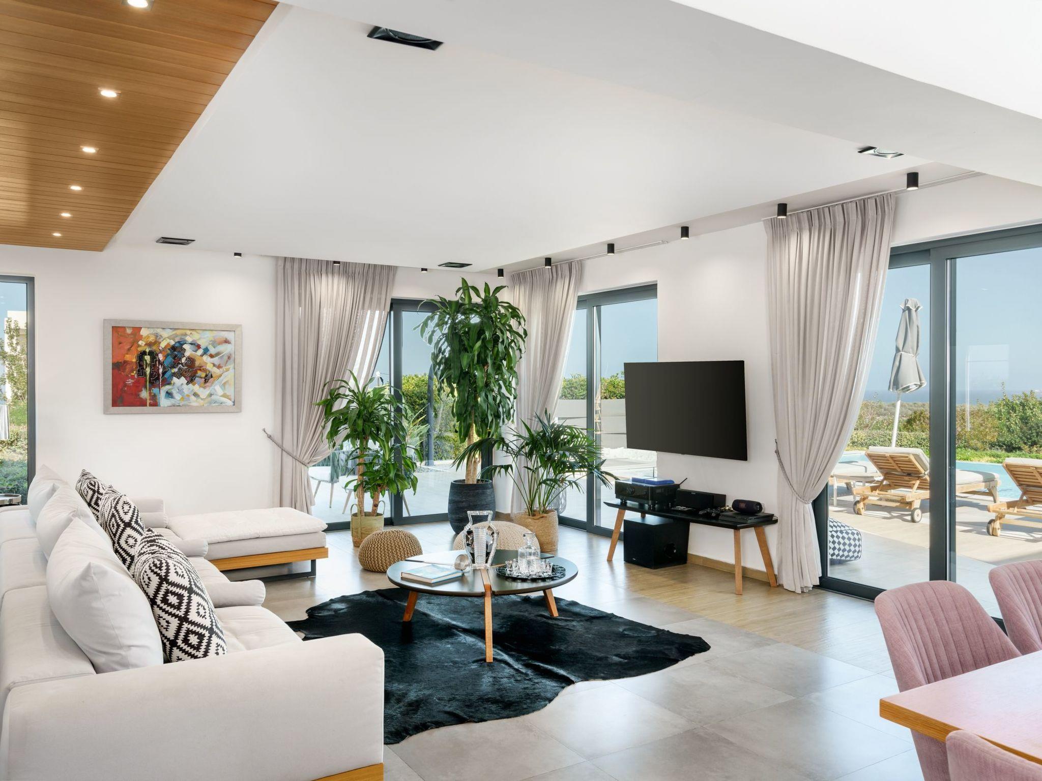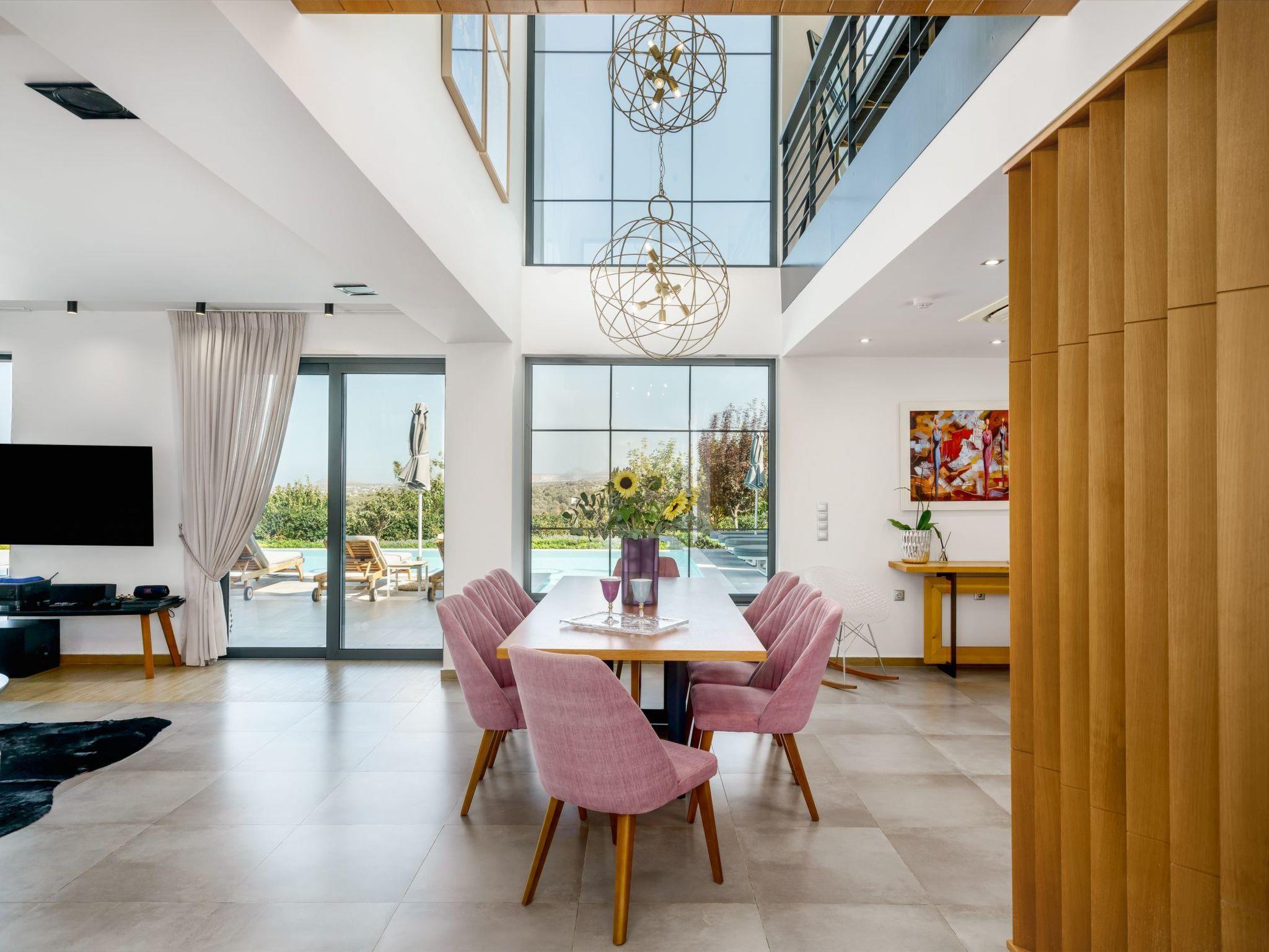 Set on Agios Ioannis Hill, the villa enjoys a quiet, elevated position with breathtaking views of the Cretan Sea and Psiloritis Mountain, yet remains close to local amenities.