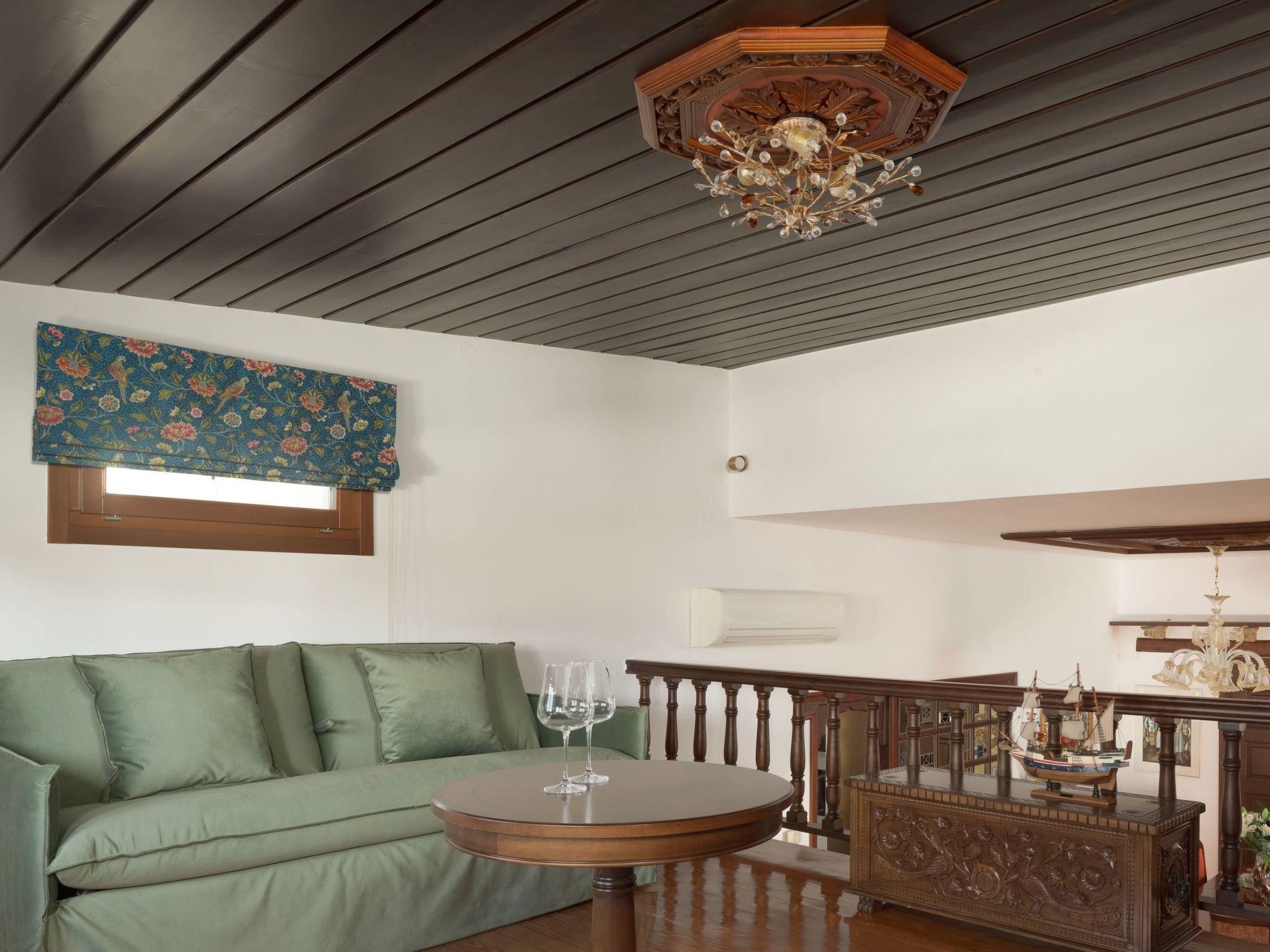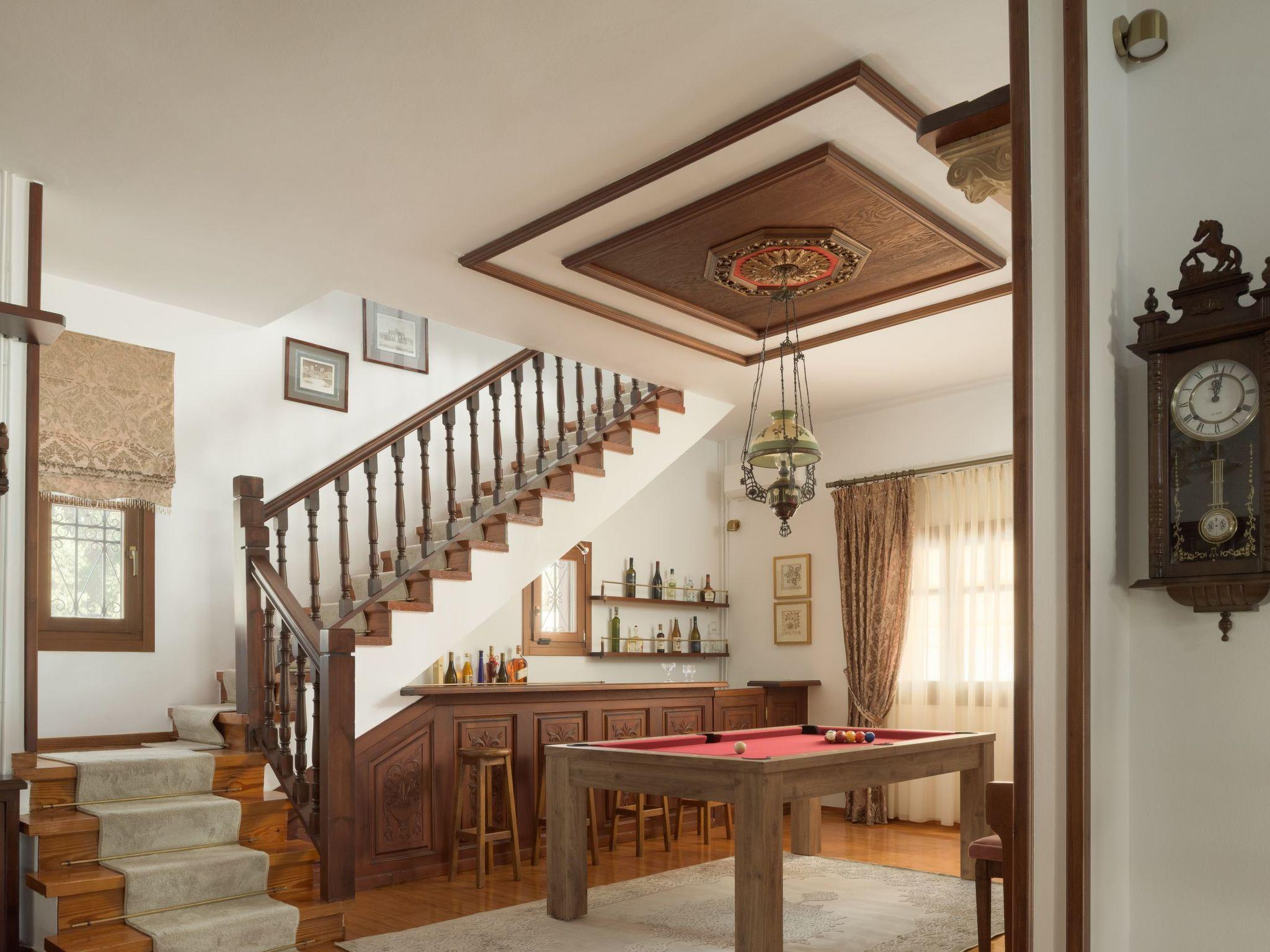 Step into the spacious living area, filled with natural light from large windows. Relax on the comfortable sofa while watching the 55” Smart TV, or gather around the dining table for meals. A billiard table and a bar add extra fun for adults and families alike. From the living area, steps lead up to a mezzanine featuring a sofa bed and a workspace with a desk, perfect for reading, working, or additional sleeping space. The living area flows seamlessly to the outdoor terrace and pool area, creating a perfect indoor-outdoor experience.